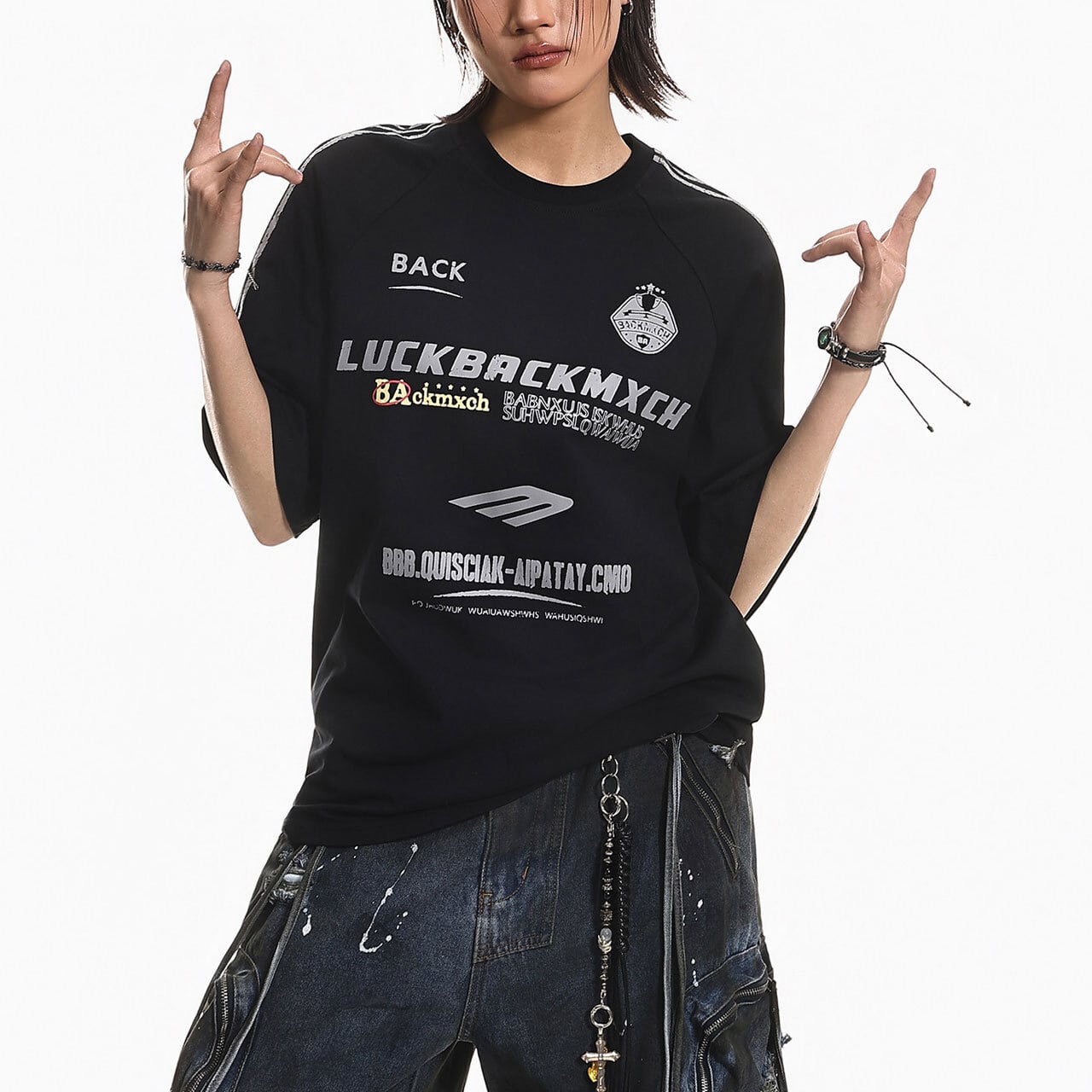 レーシングテイストを感じさせるグラフィックデザインが、都会的なインパクトを放つ1枚。