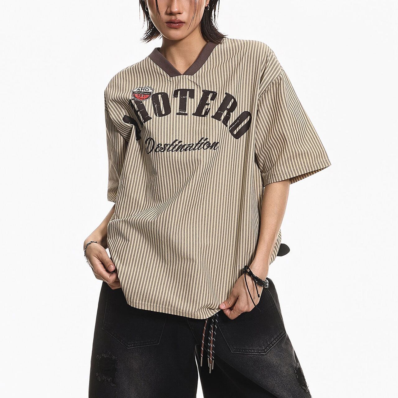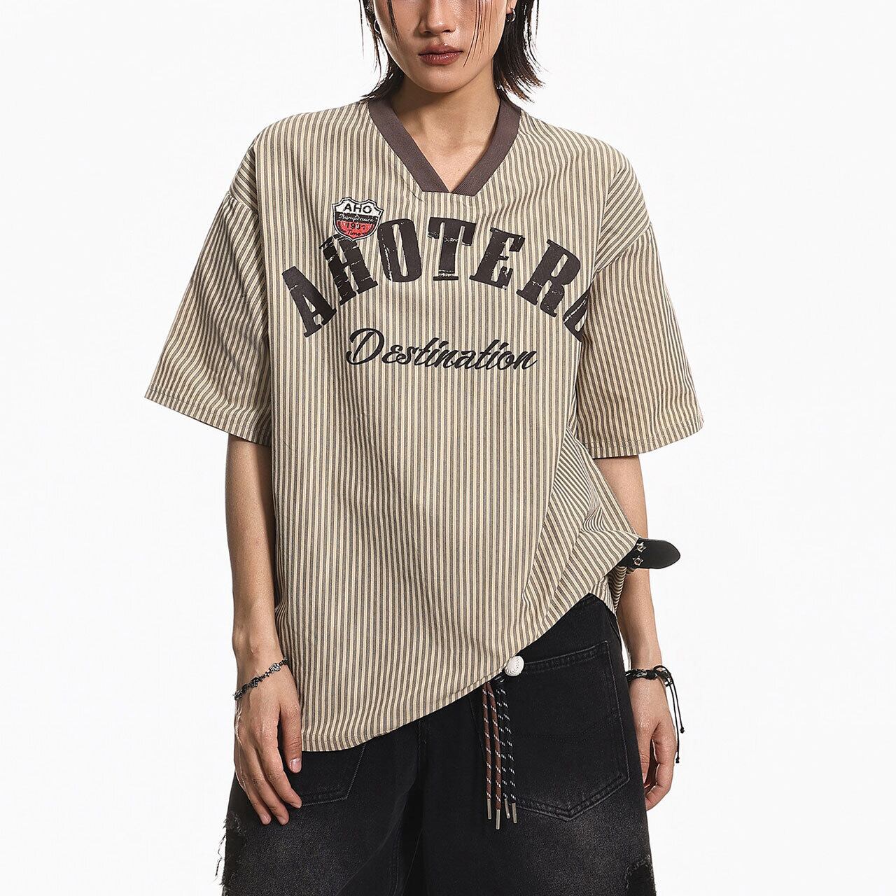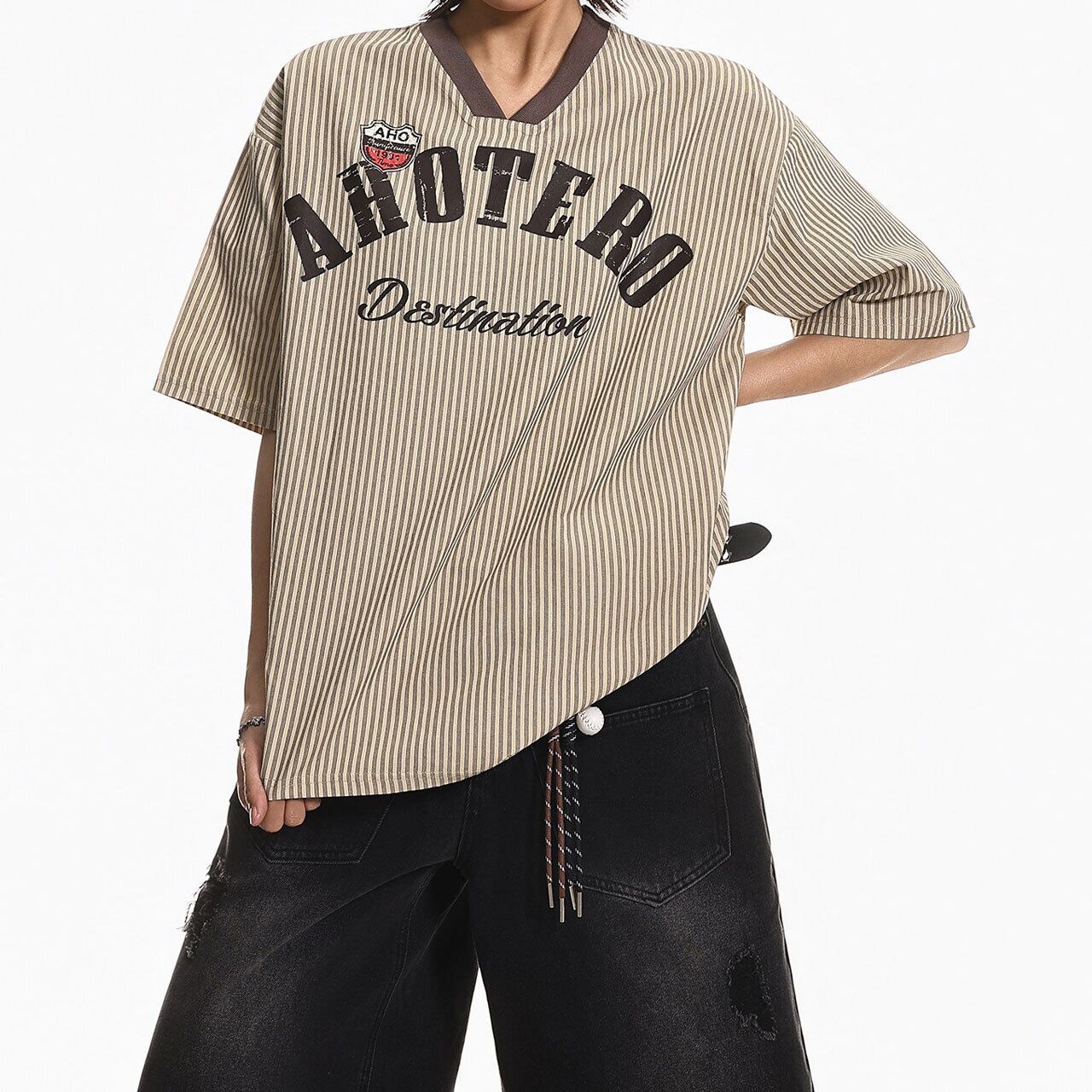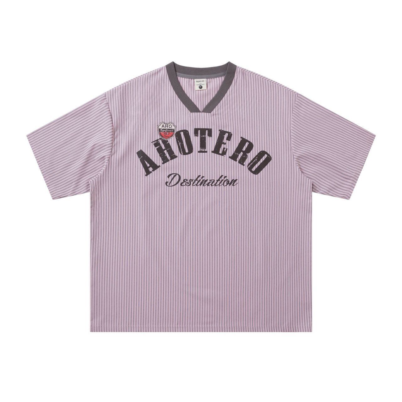 カレッジロゴストライプVネックTシャツ 2col R01981