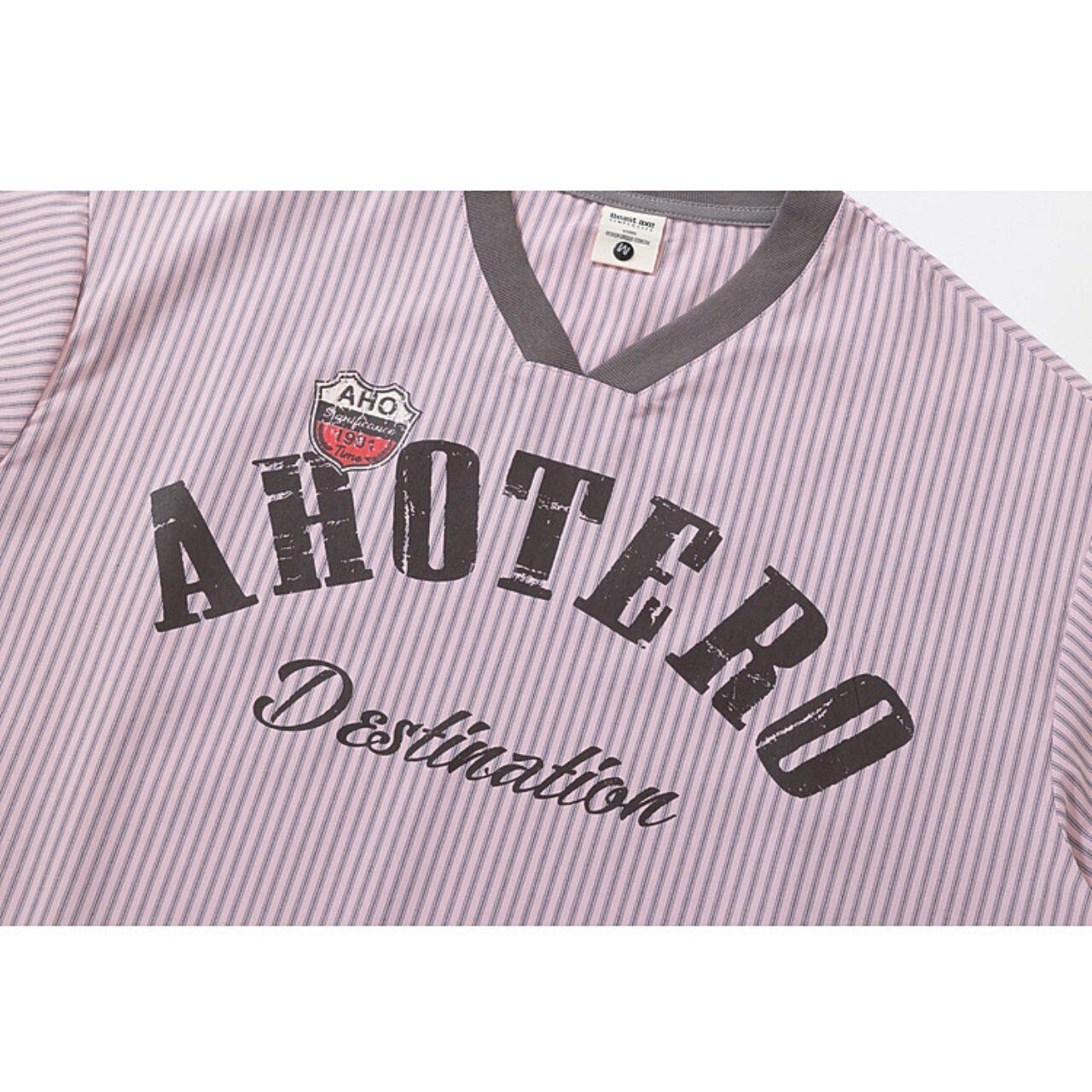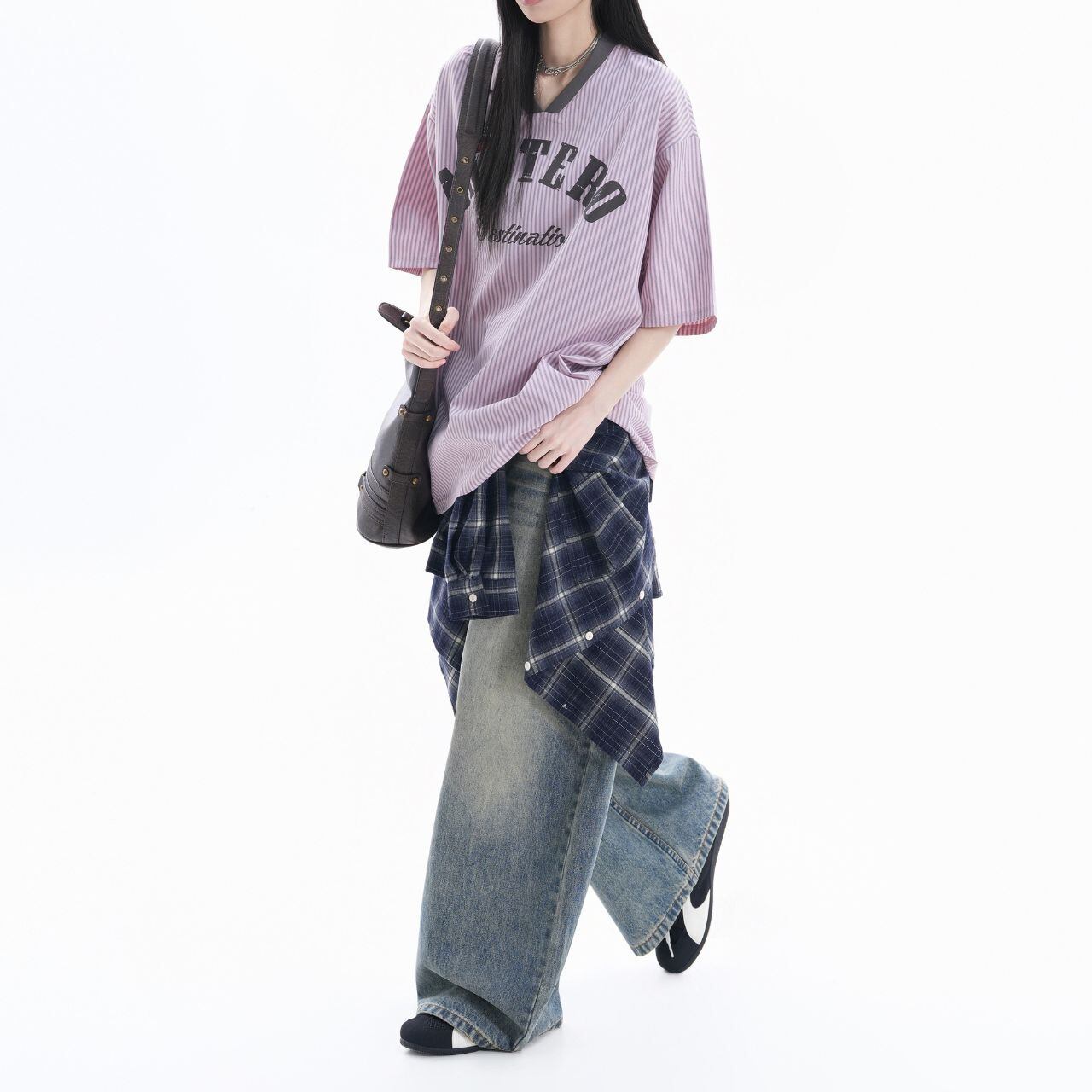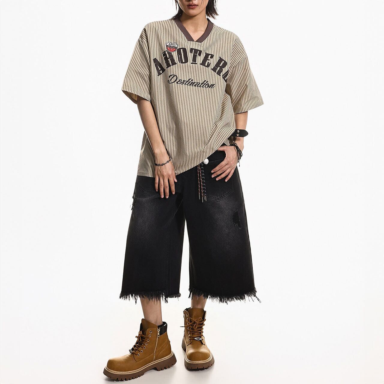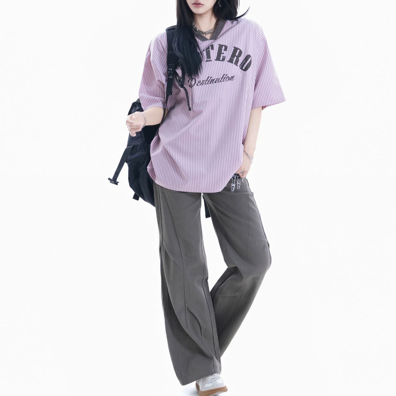 カレッジロゴストライプVネックTシャツ 2col R01981