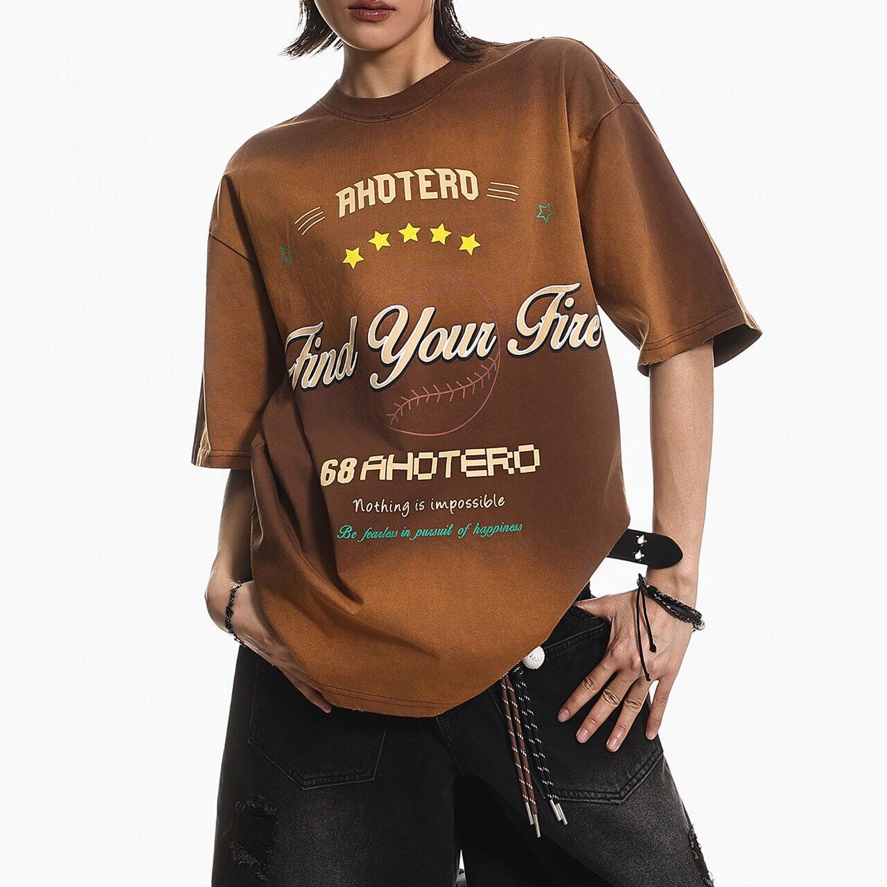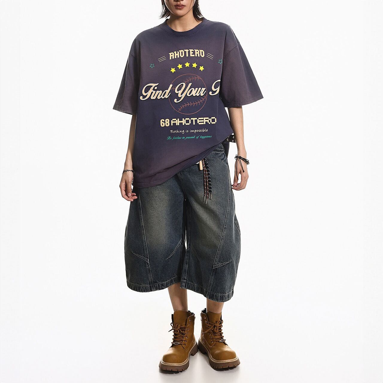絶妙なグラデーションカラーに、遊び心溢れるベースボール風のグラフィックが映えるストリート感満載の1枚。