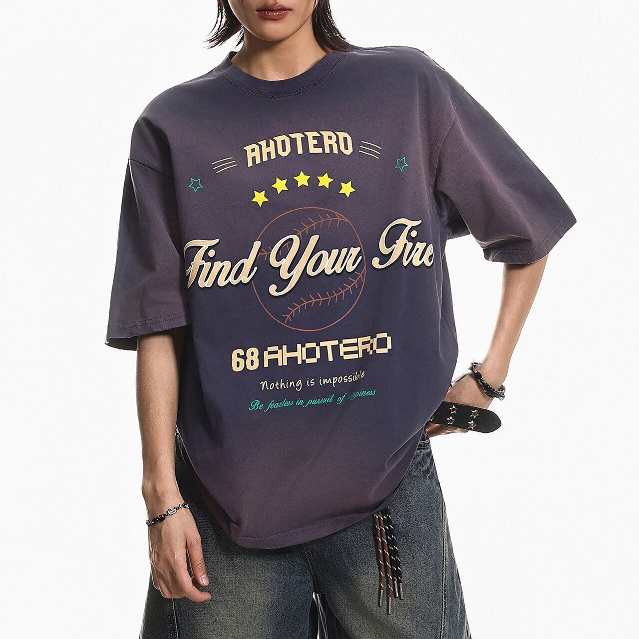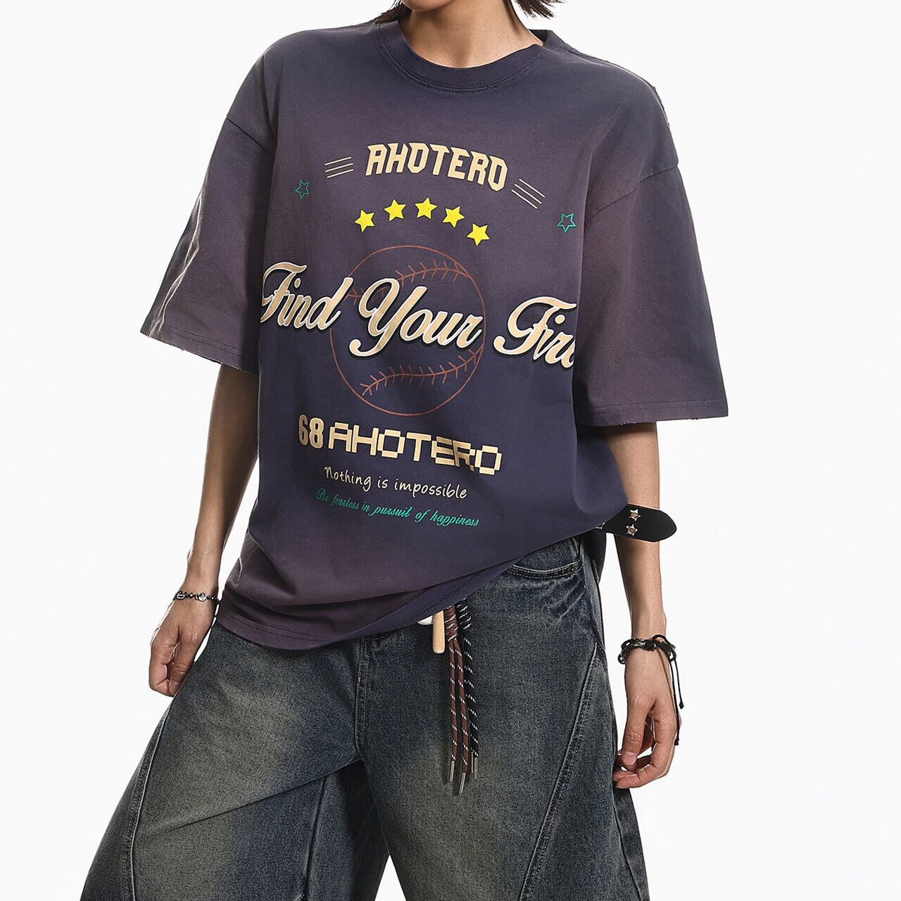 グラデーションベースボールグラフィックTシャツ 2col R01982