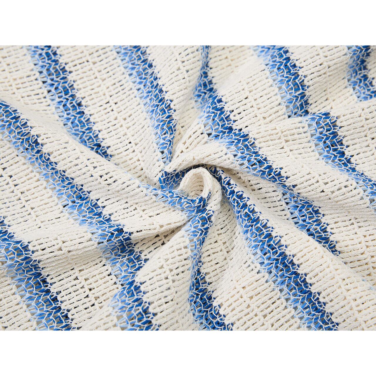 メッシュ編みの表情豊かなテクスチャーに、ヴィンテージライクなストライプ柄を乗せたトップス。
