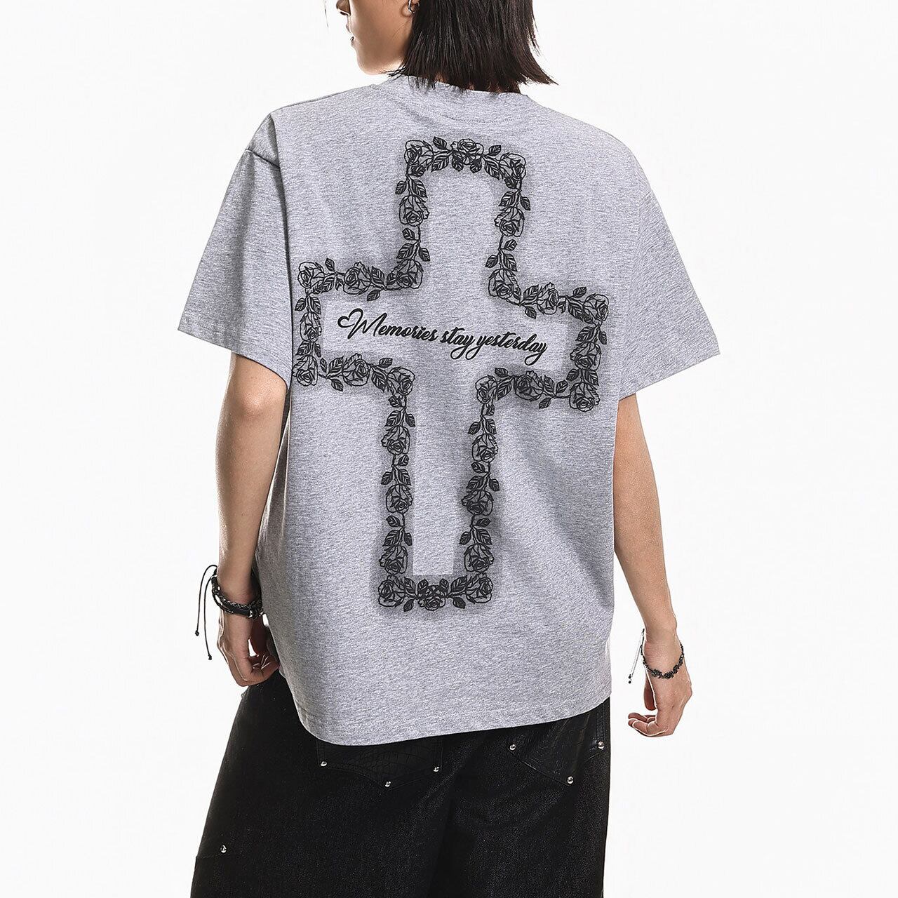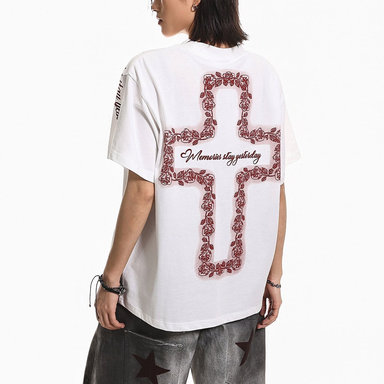 ローズクロスバックグラフィックTシャツ 2col R01994