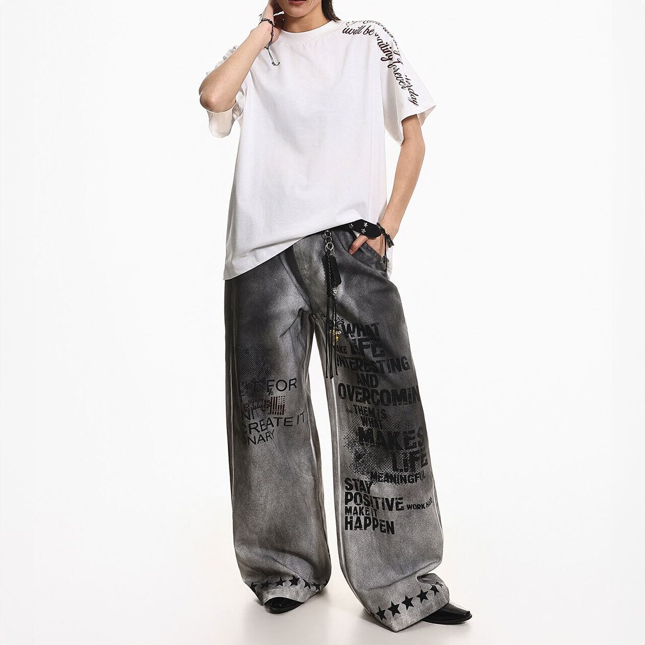 バックに大胆に配されたローズクロスモチーフが、ストリートスタイルに華やかさを添える1枚。