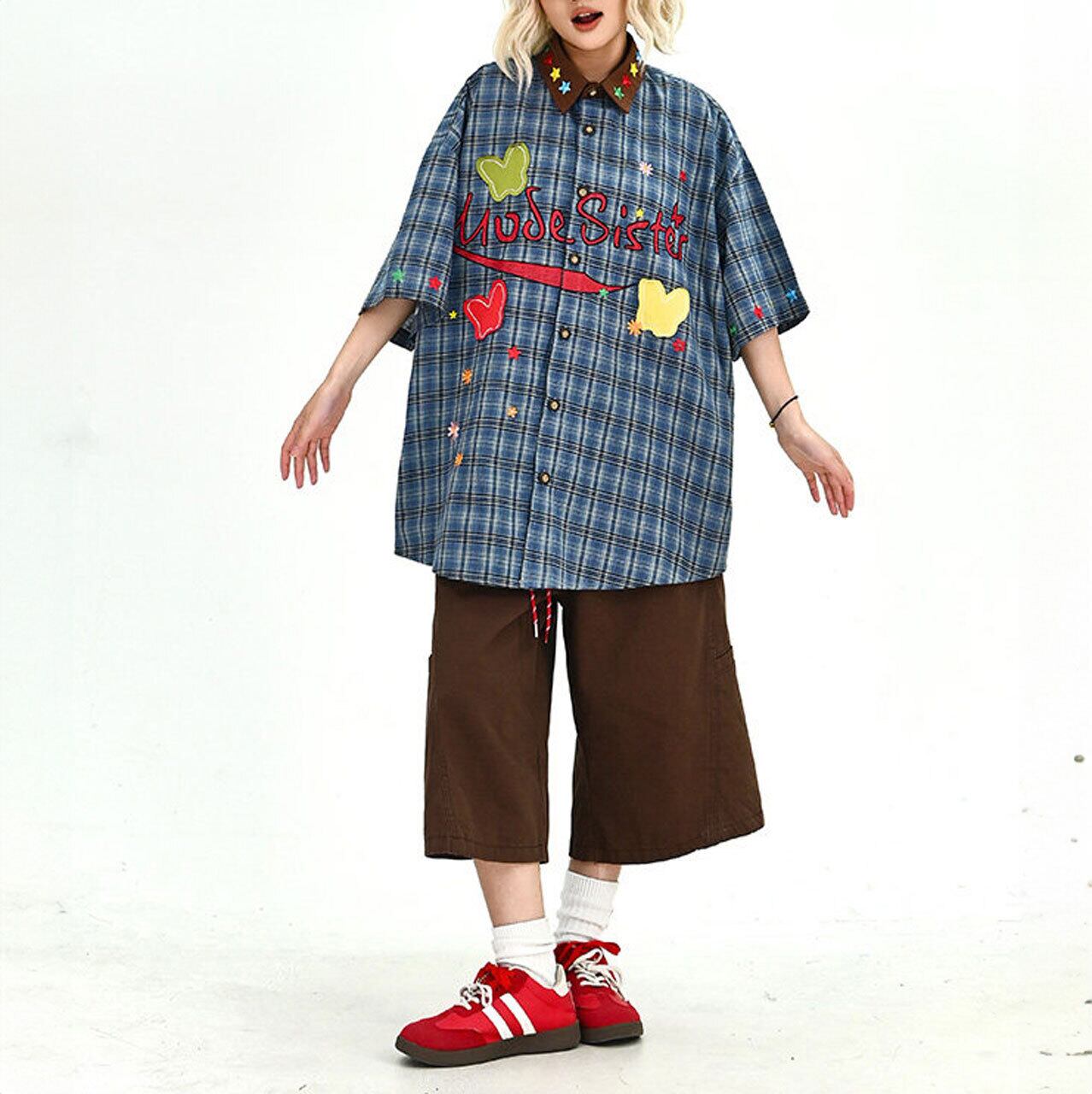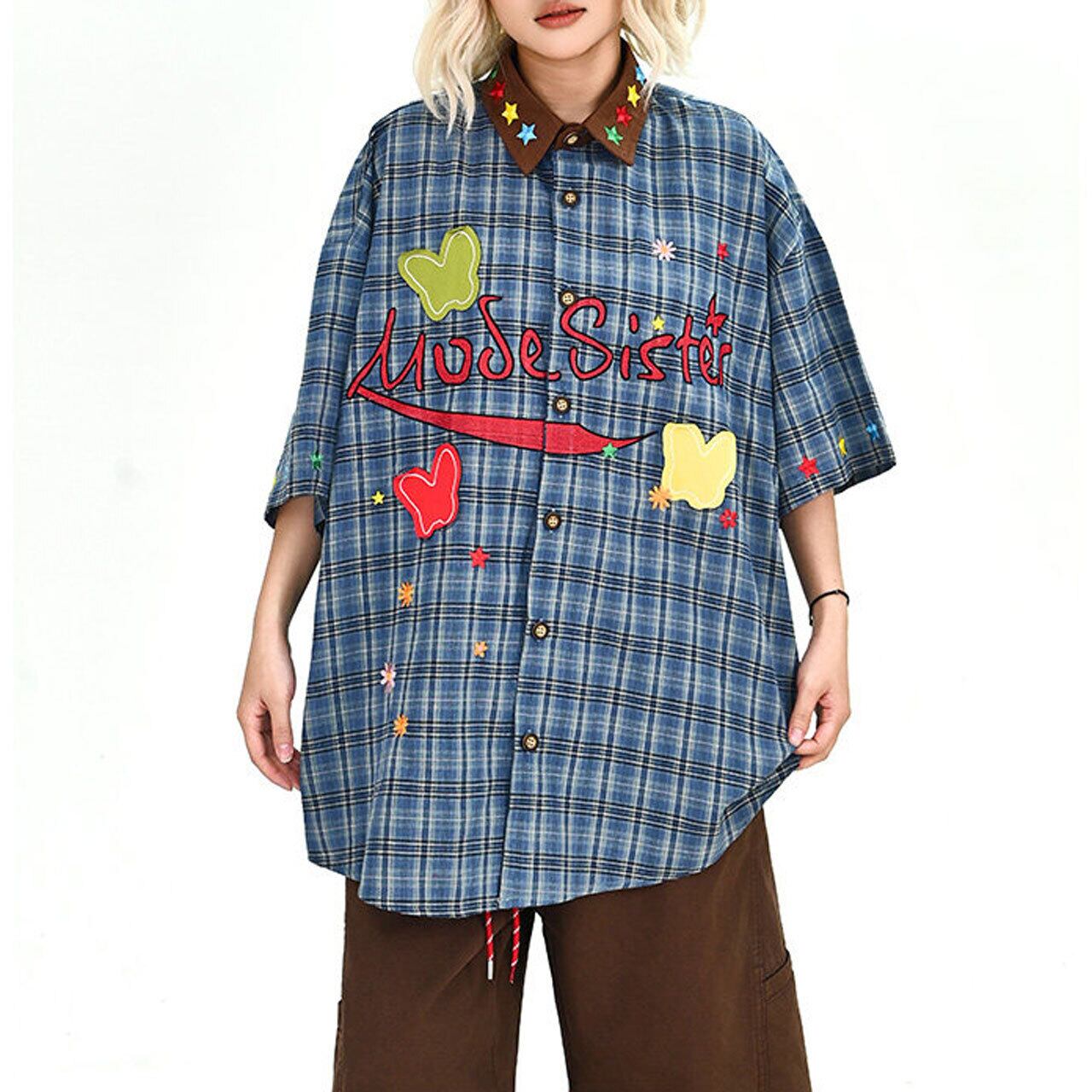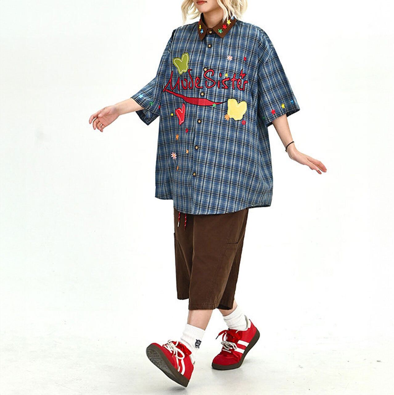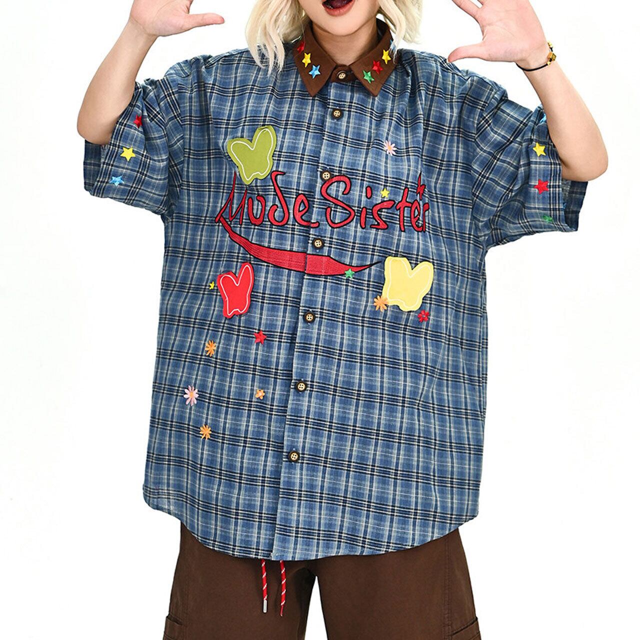 グラフィックパッチデザインチェックシャツ 1col R02002