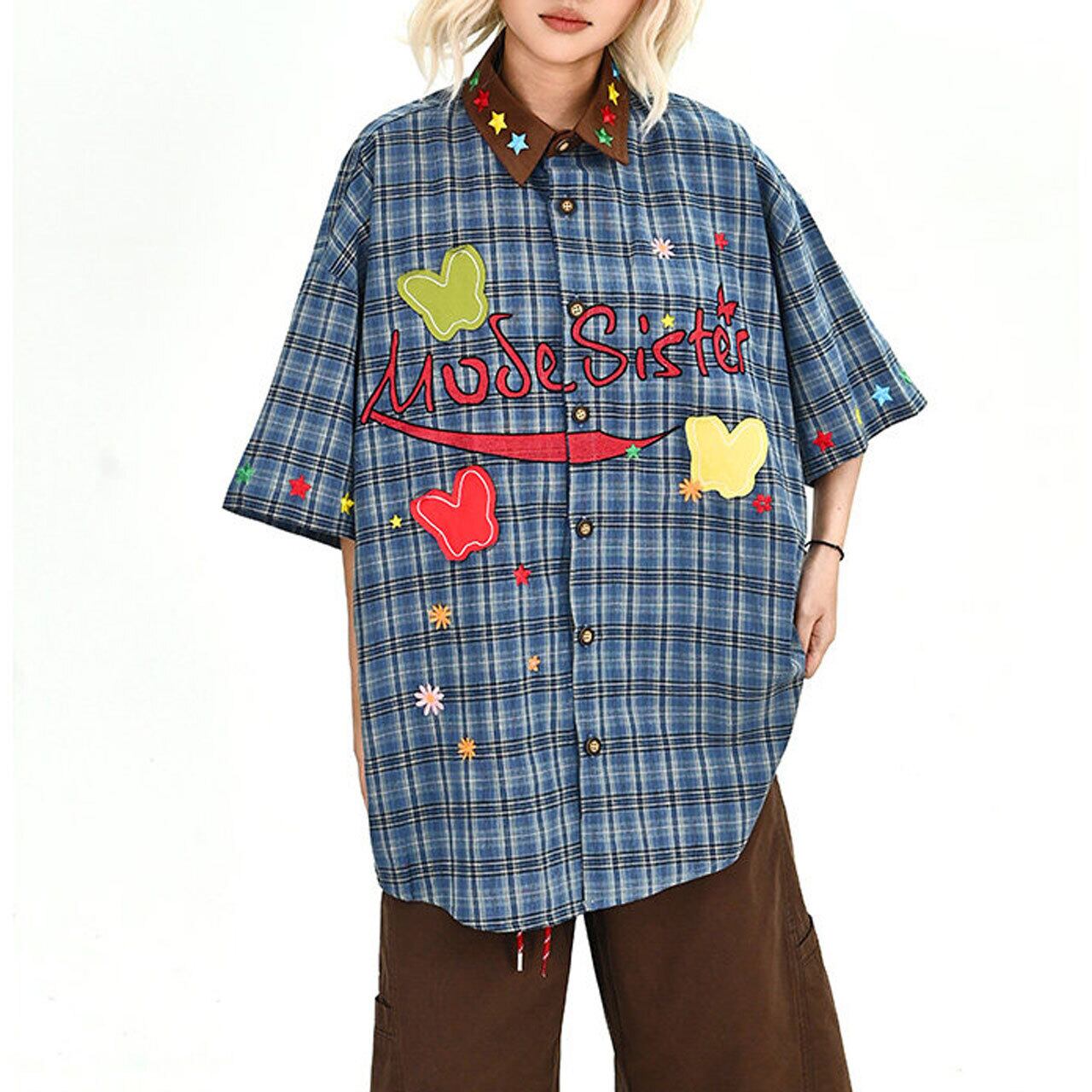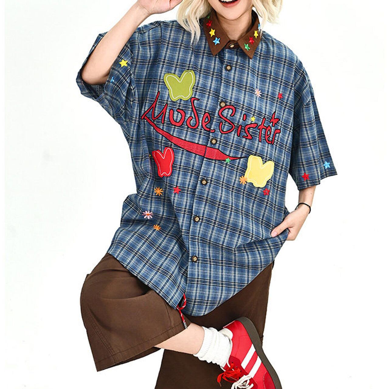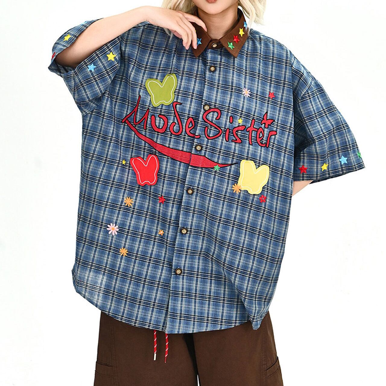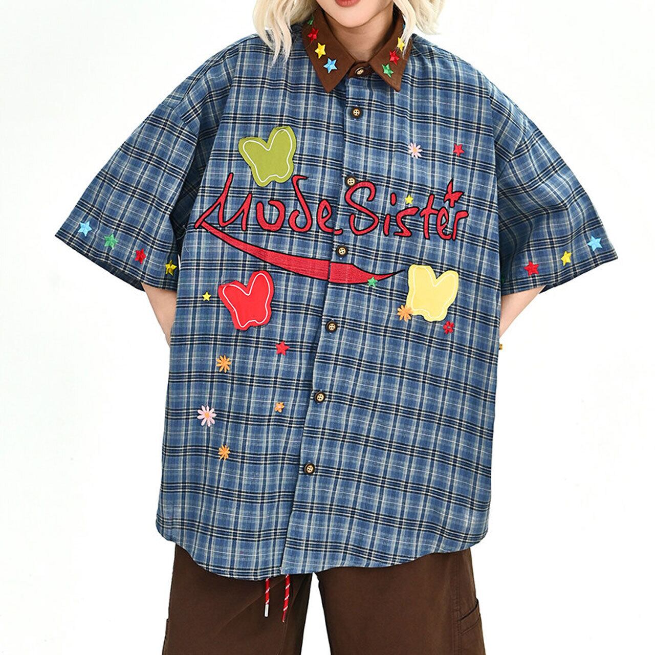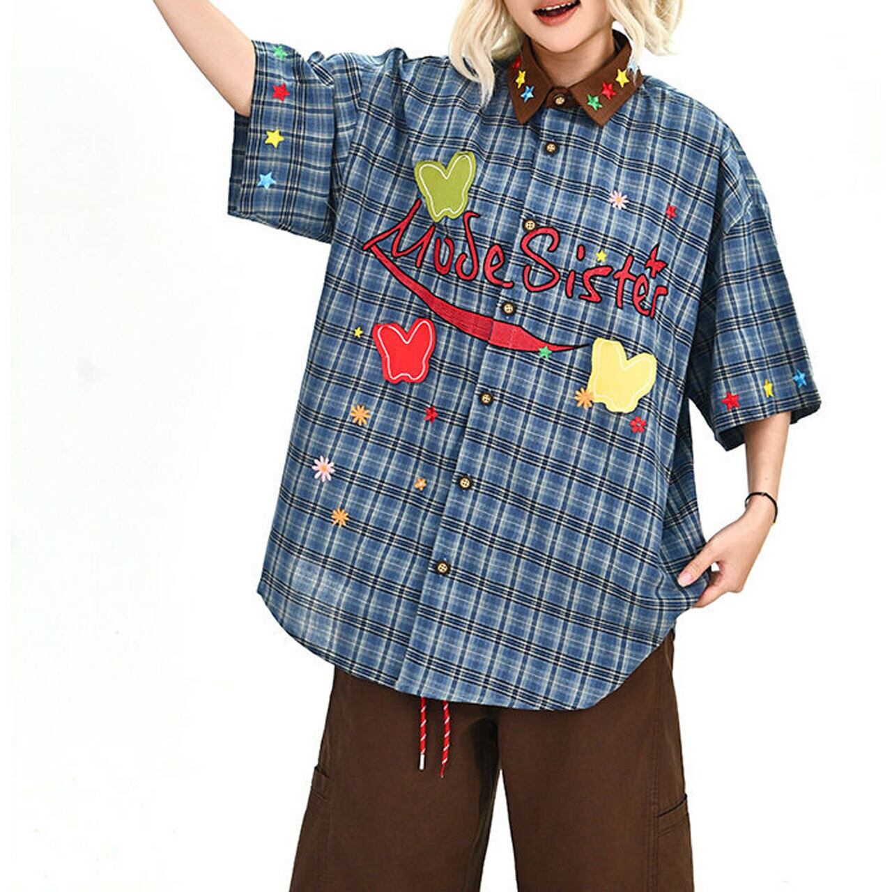 グラフィックパッチデザインチェックシャツ 1col R02002