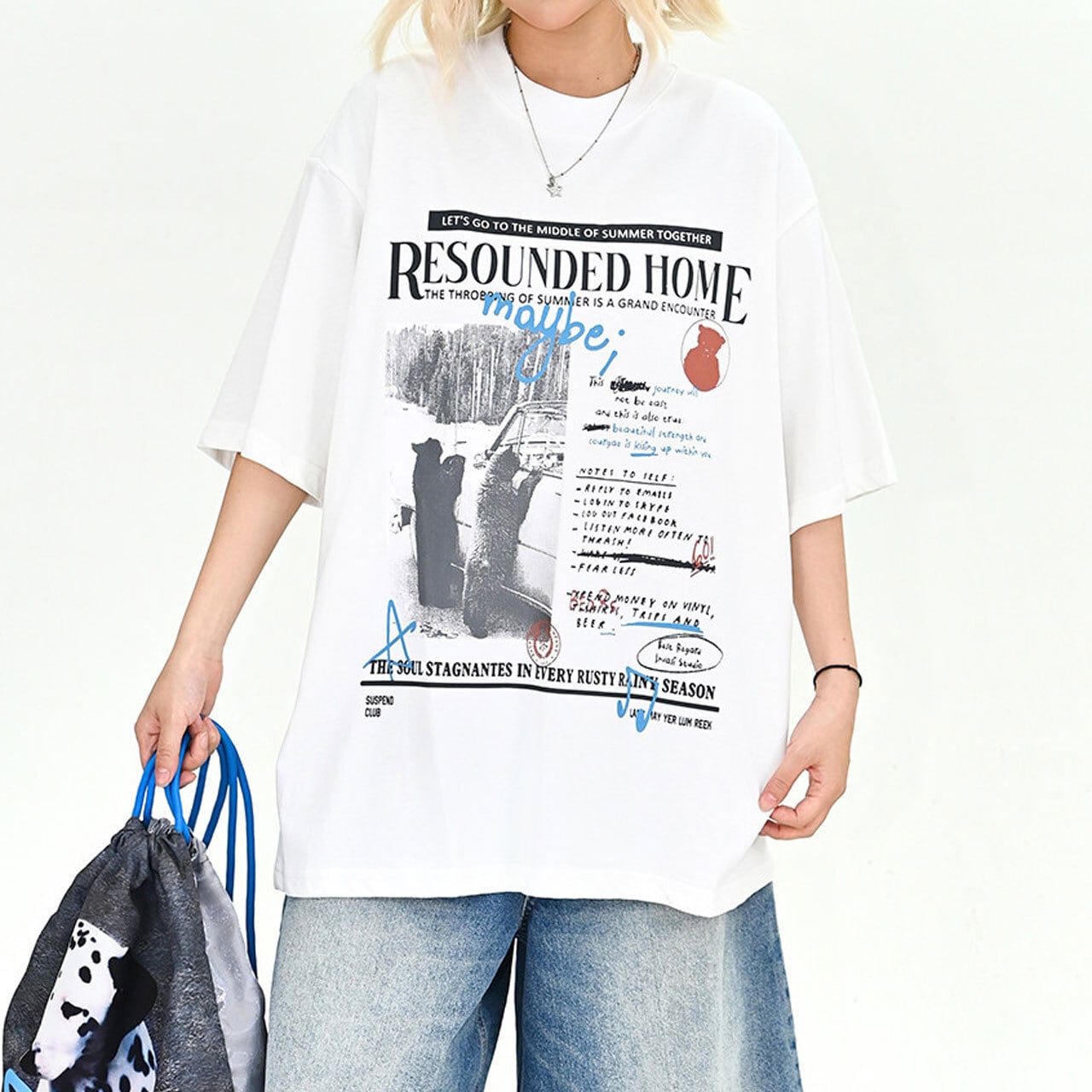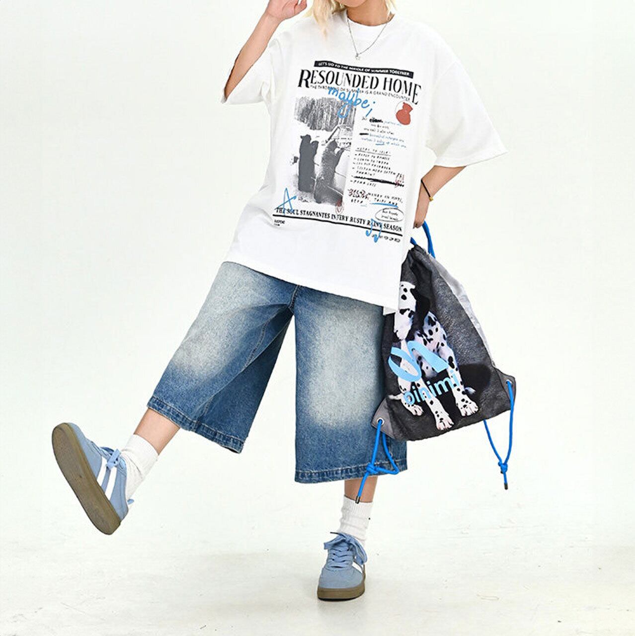 シンプルなボトムスと合わせて、Tシャツのデザインを際立たせるのがポイントです。