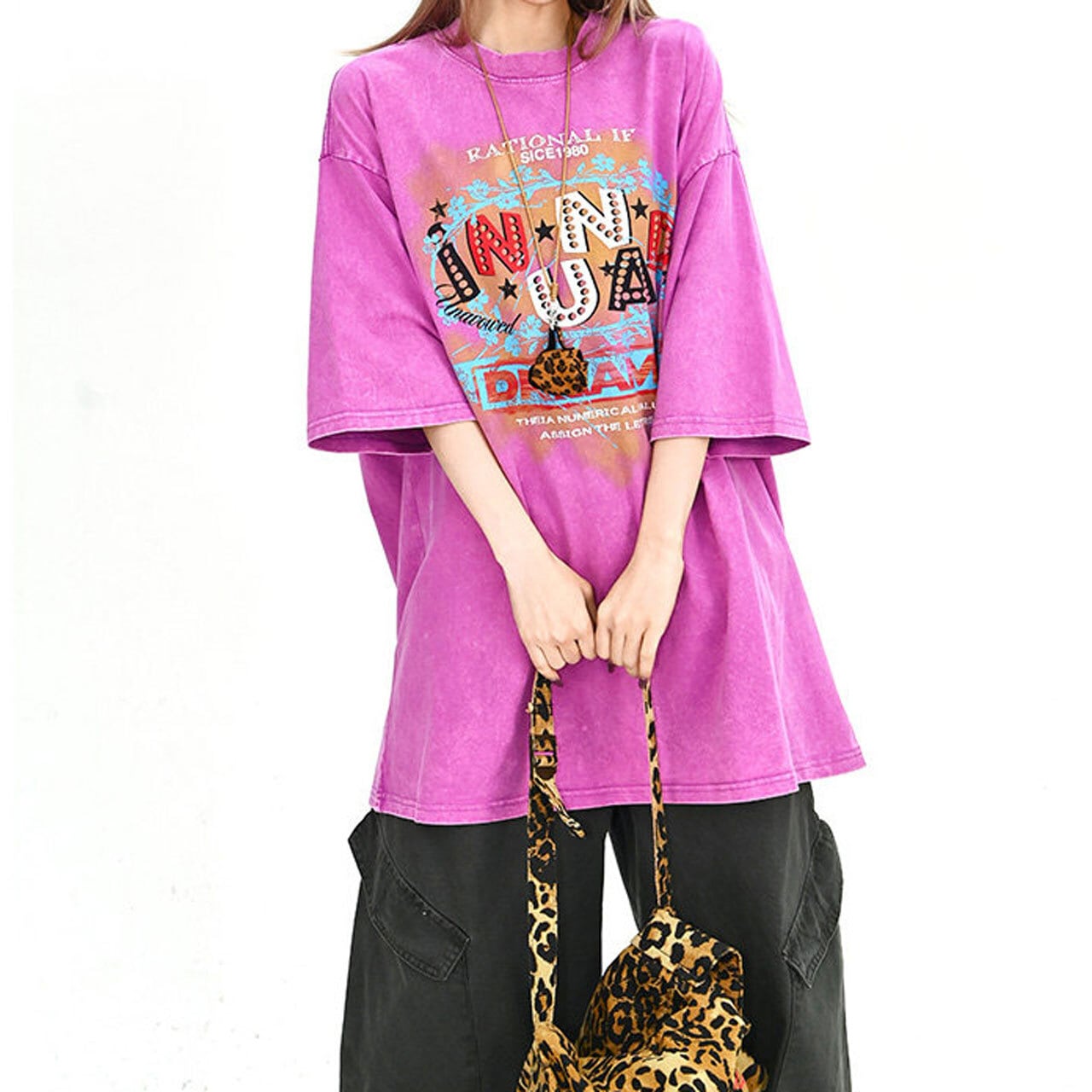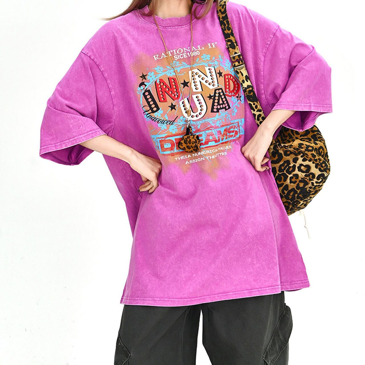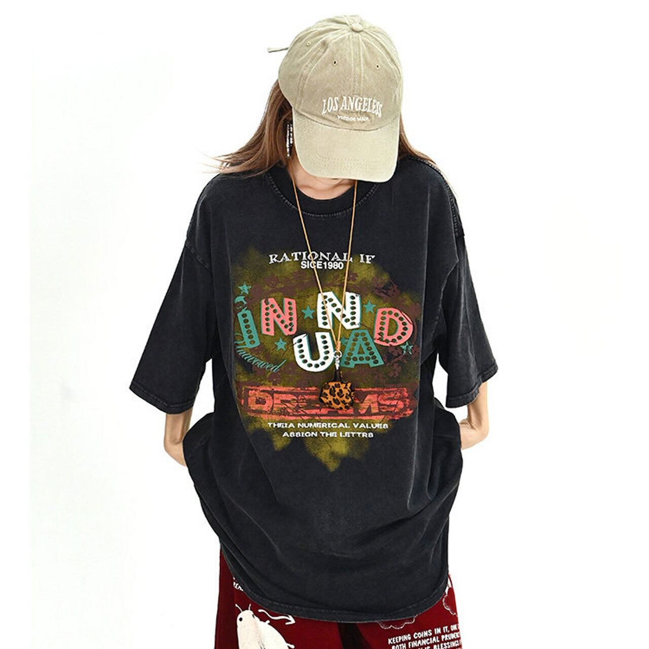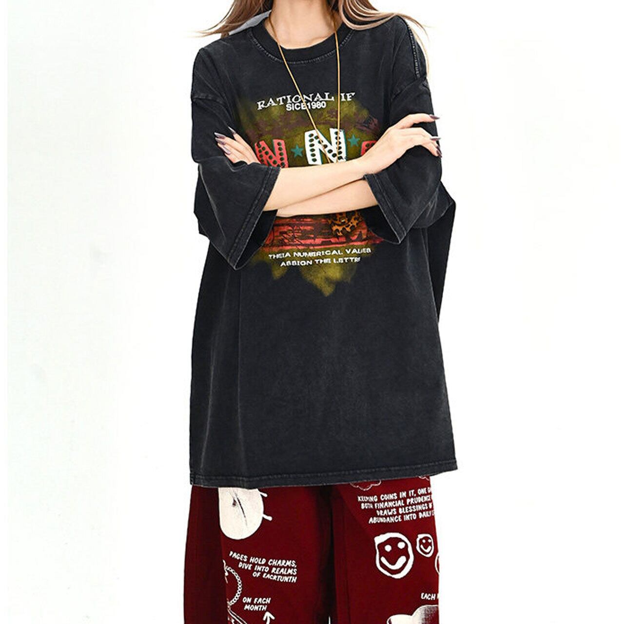 レトロポップウォッシュドグラフィックロゴプリントTシャツ 2col R02020