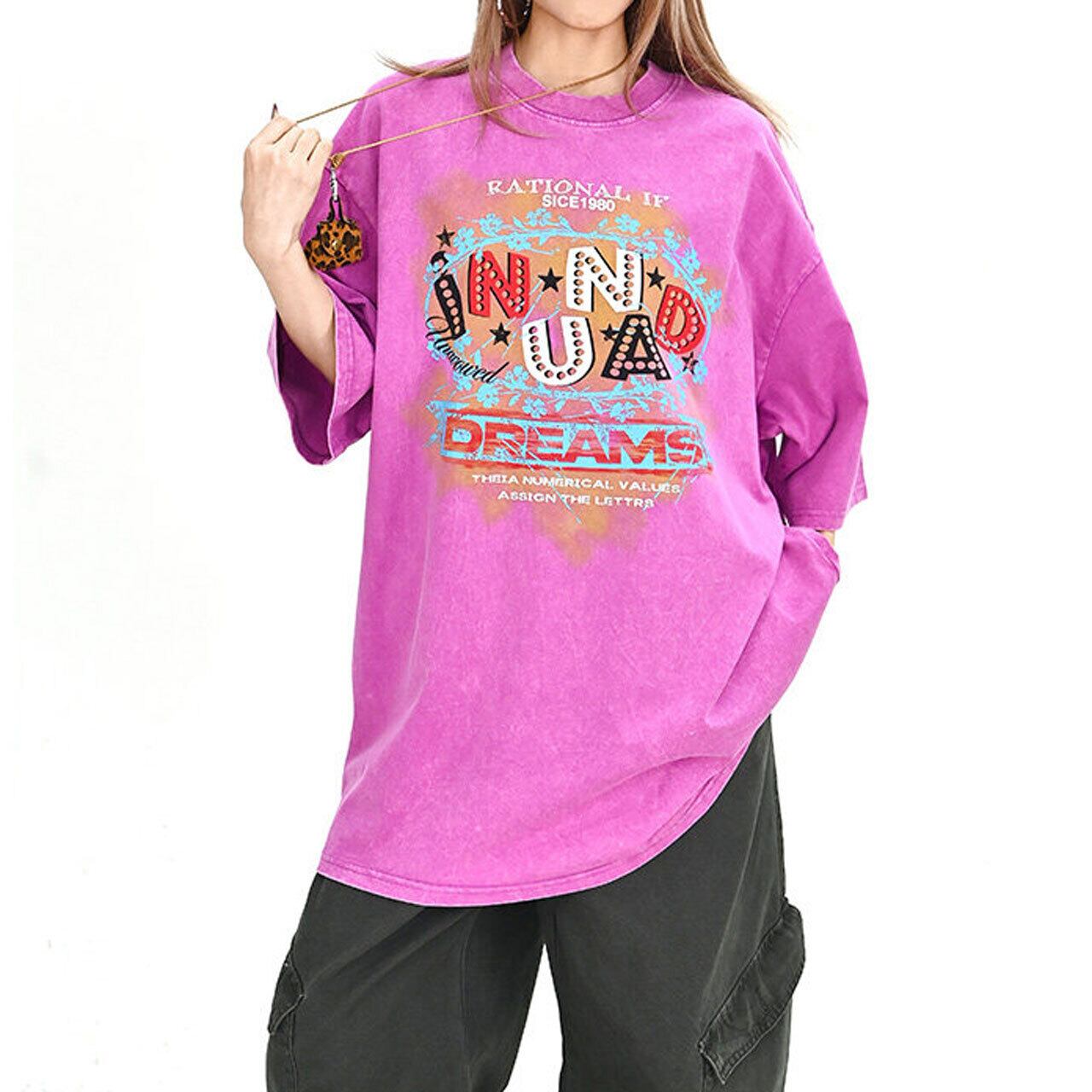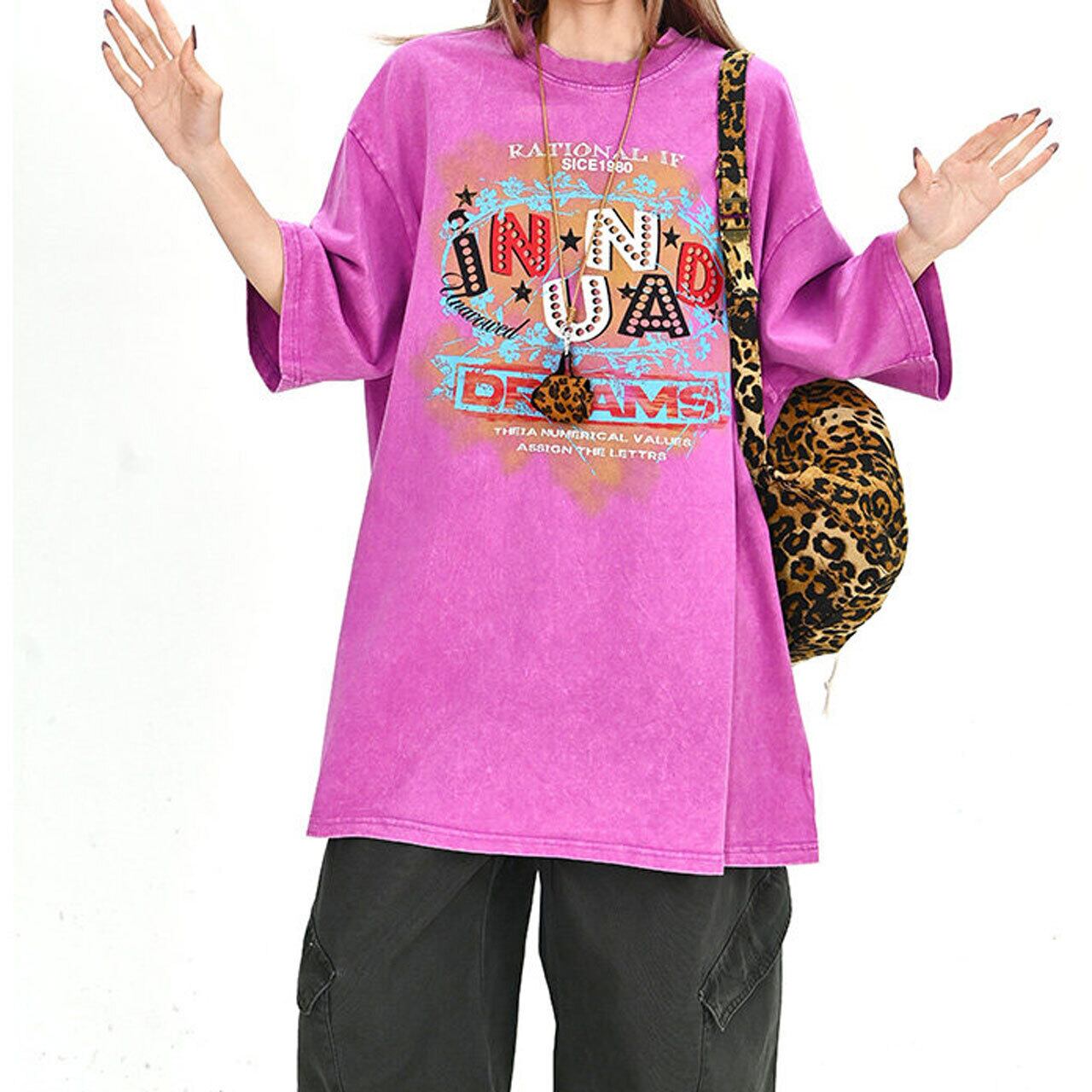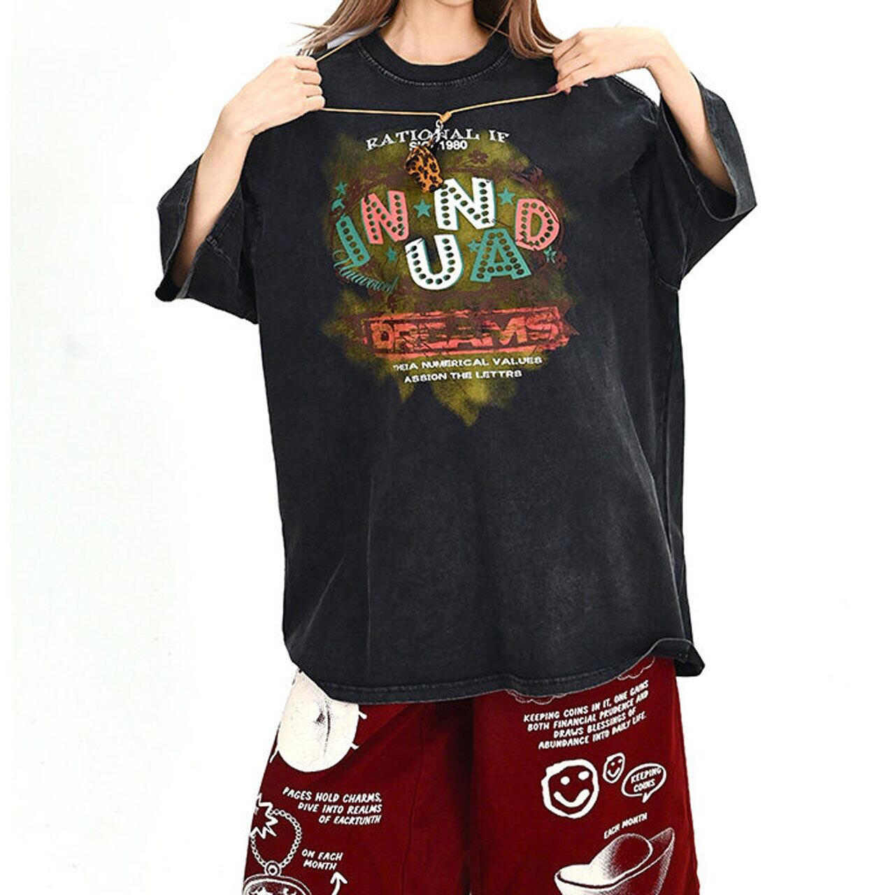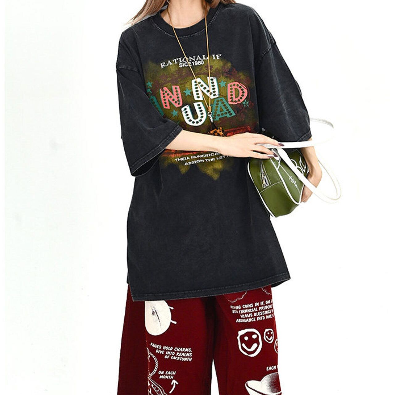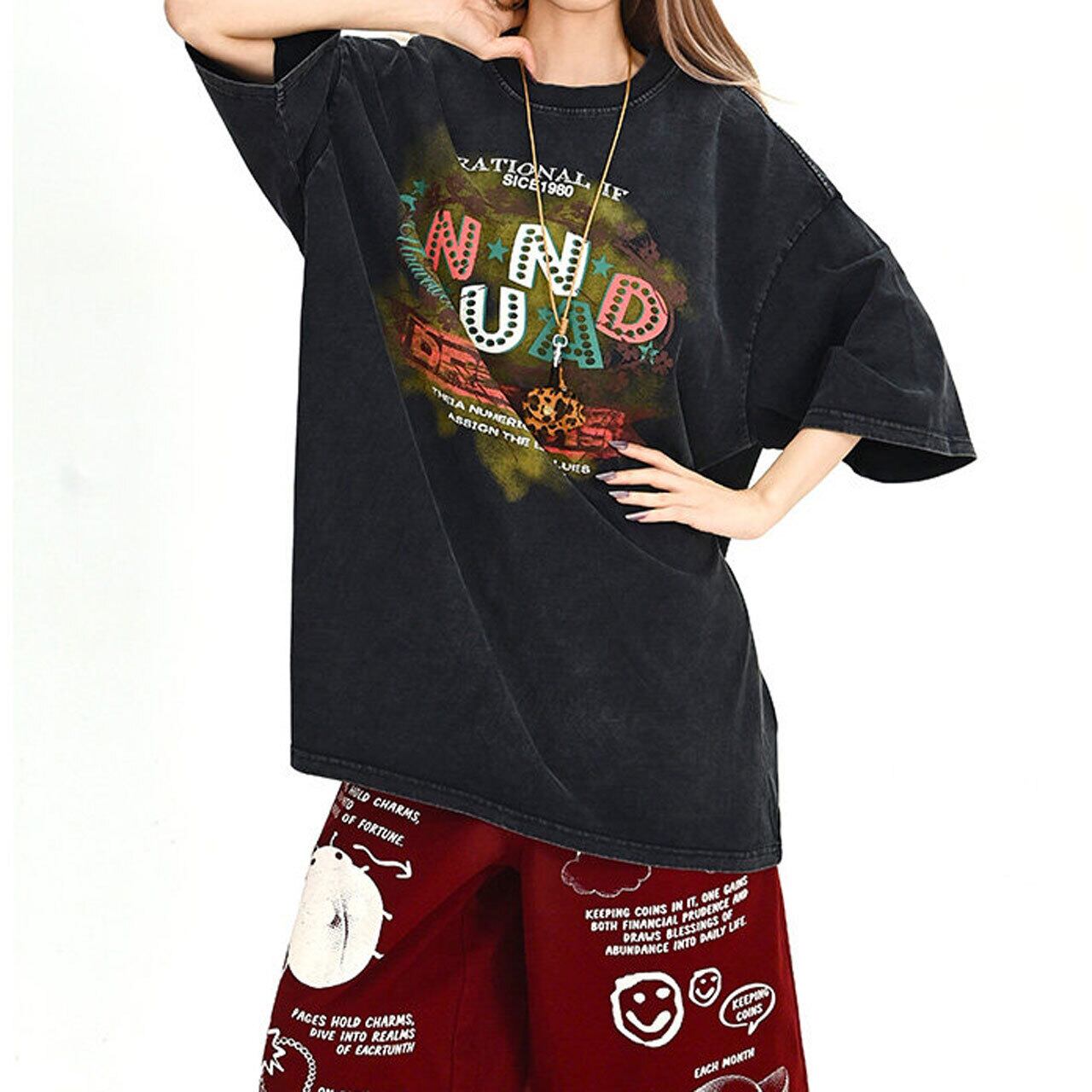レトロポップウォッシュドグラフィックロゴプリントTシャツ 2col R02020