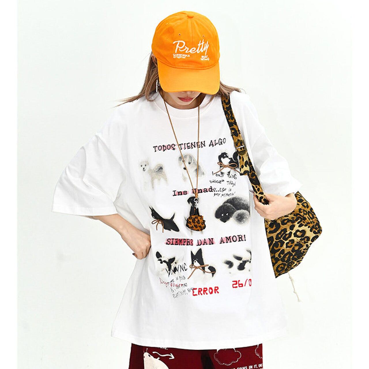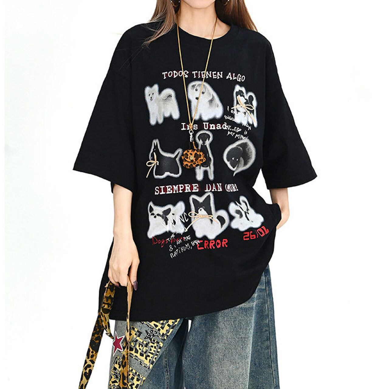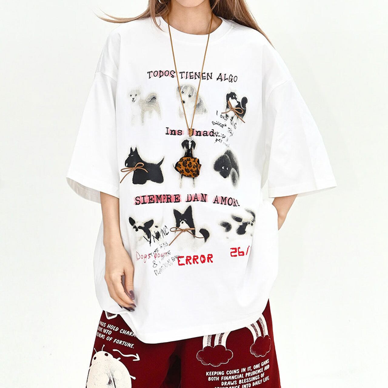 ドッグモチーフグラフィックアートプリントTシャツ 2col R02021