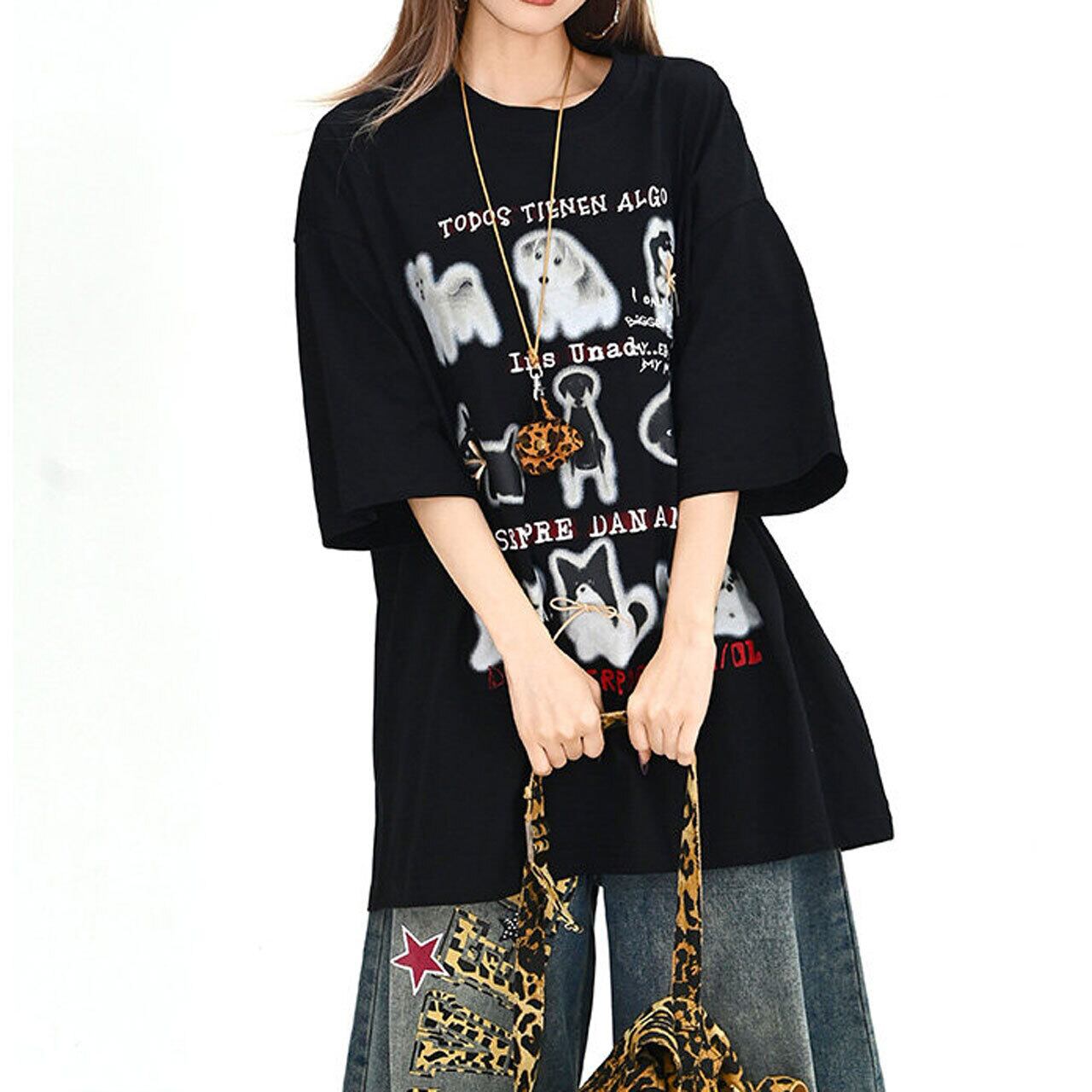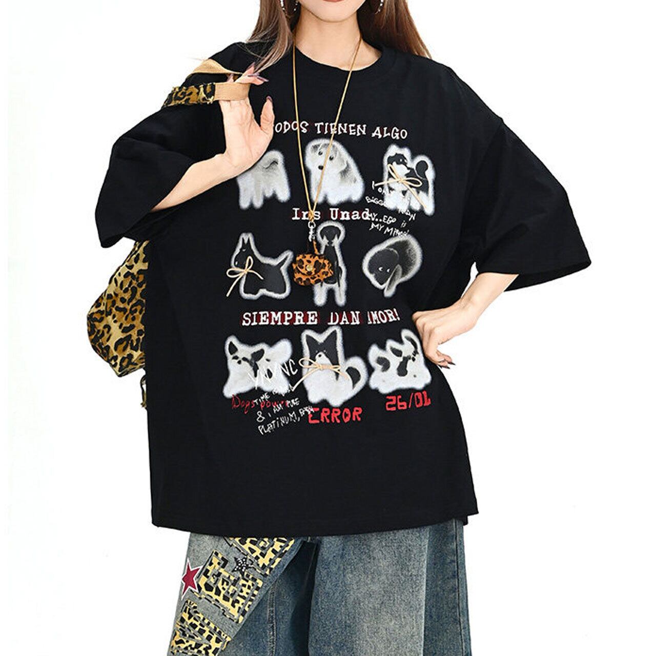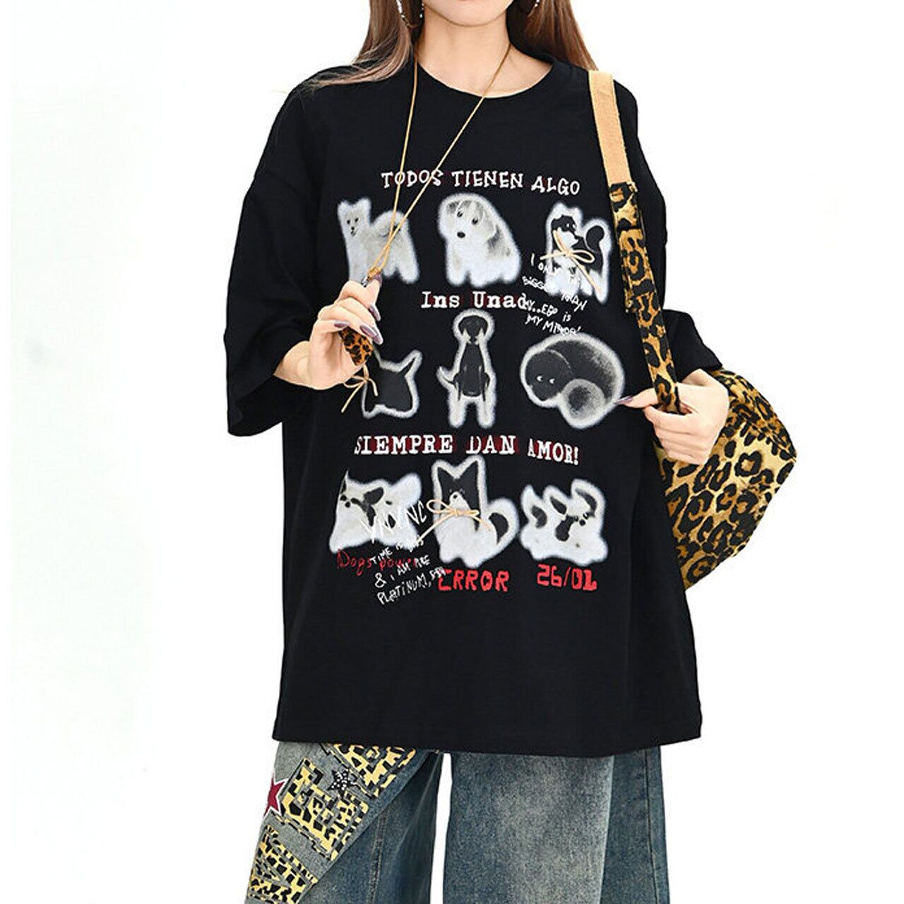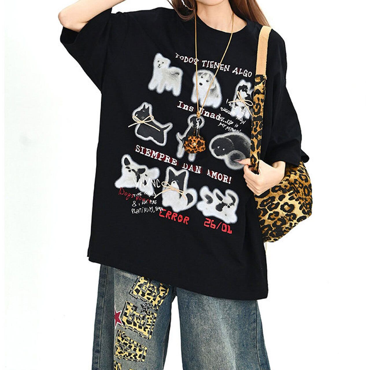 ドッグモチーフグラフィックアートプリントTシャツ 2col R02021