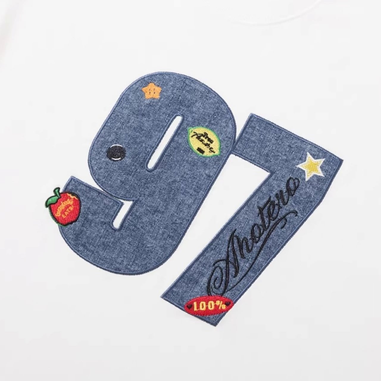 デニムワッペンナンバリングルーズフォルムTシャツ 2col R02075