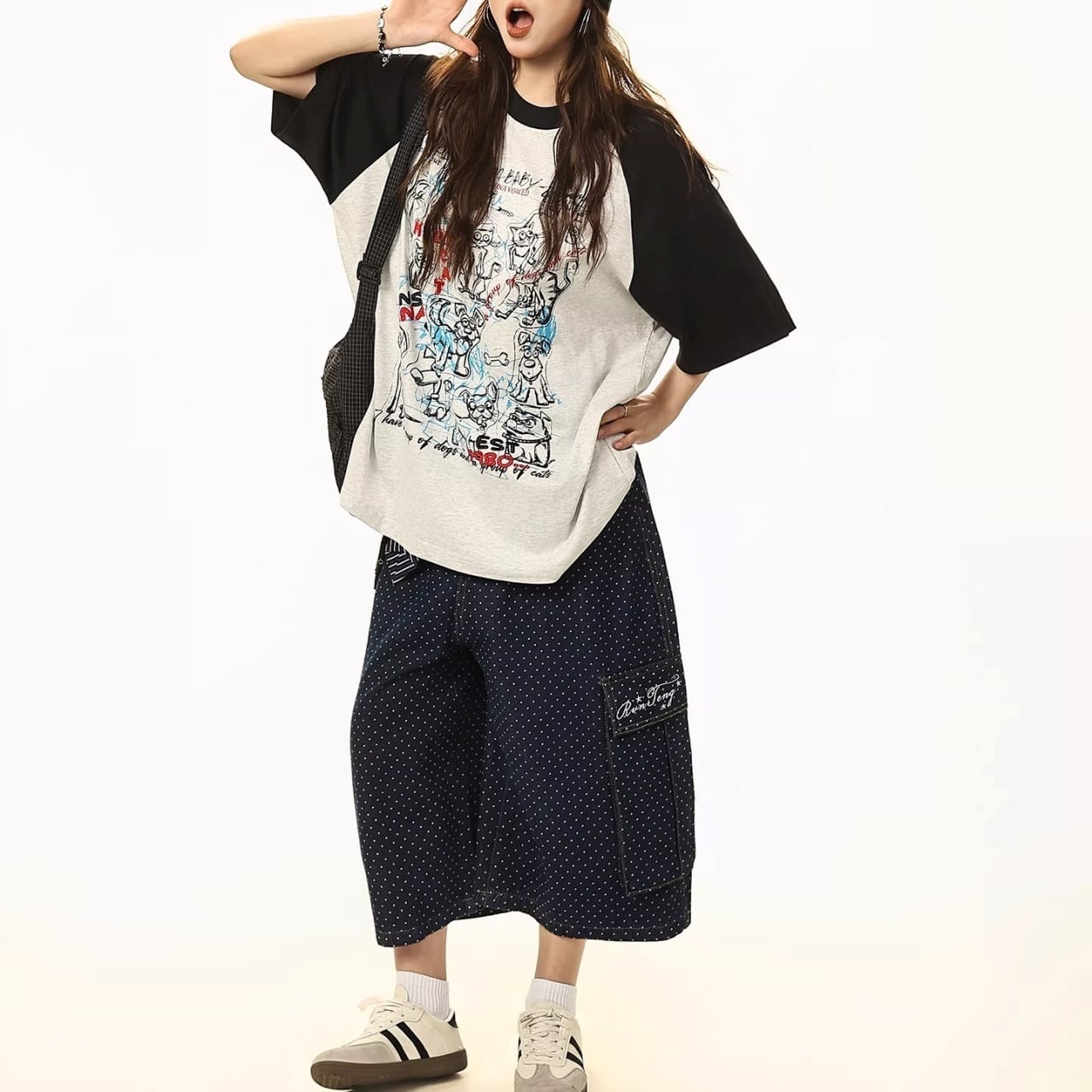 ストリート感漂う配色の切り替えとルーズなシルエットで、こなれたカジュアルスタイルを演出します。