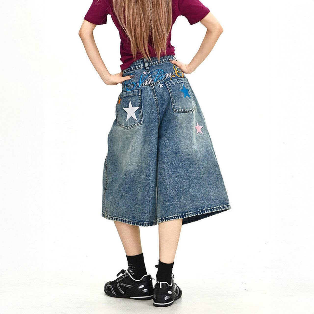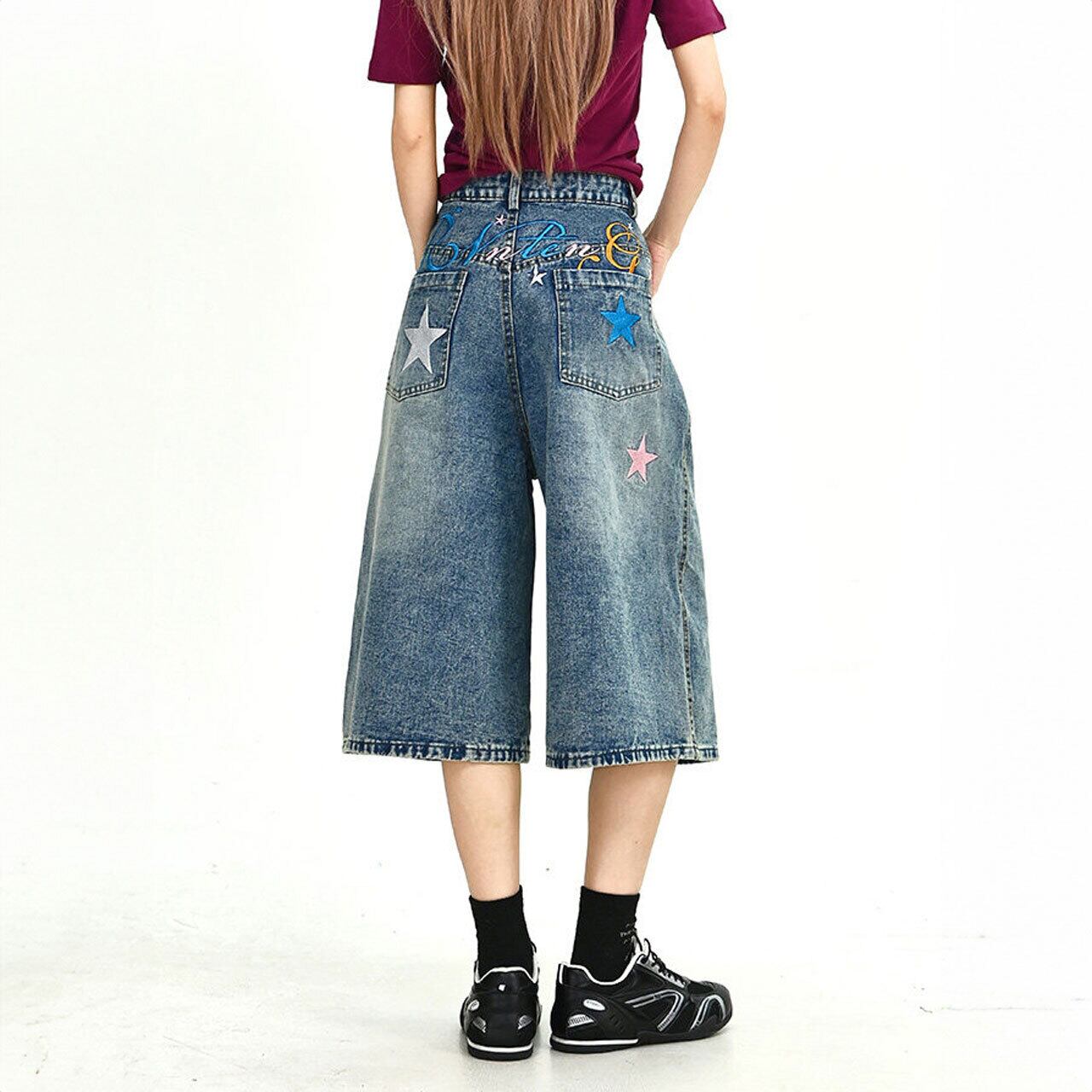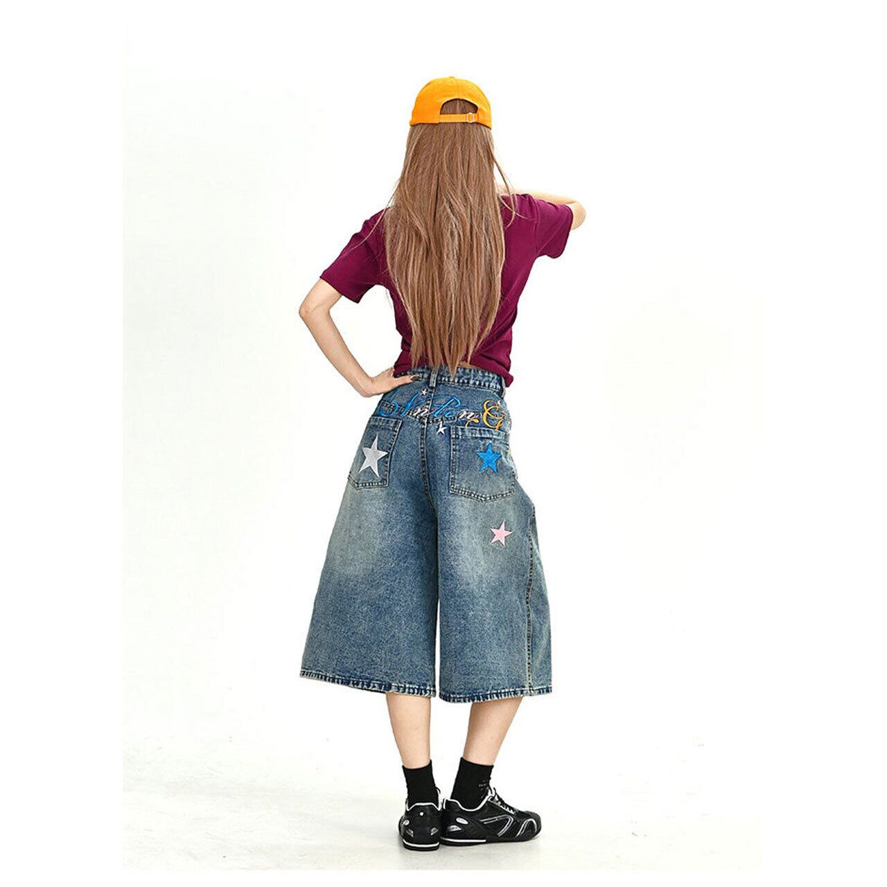 スターモチーフワイドラインクロップドデニムパンツ 1col R02027