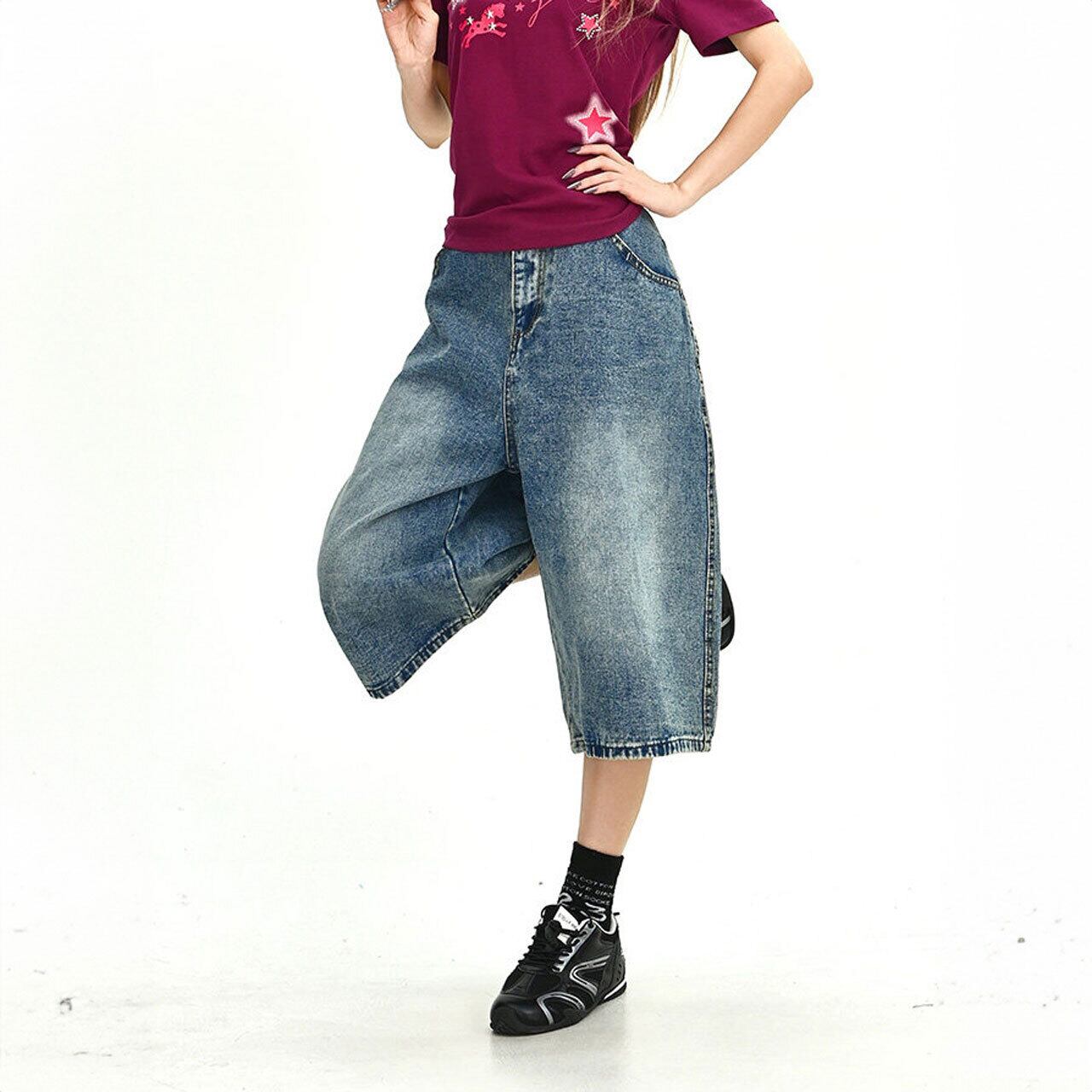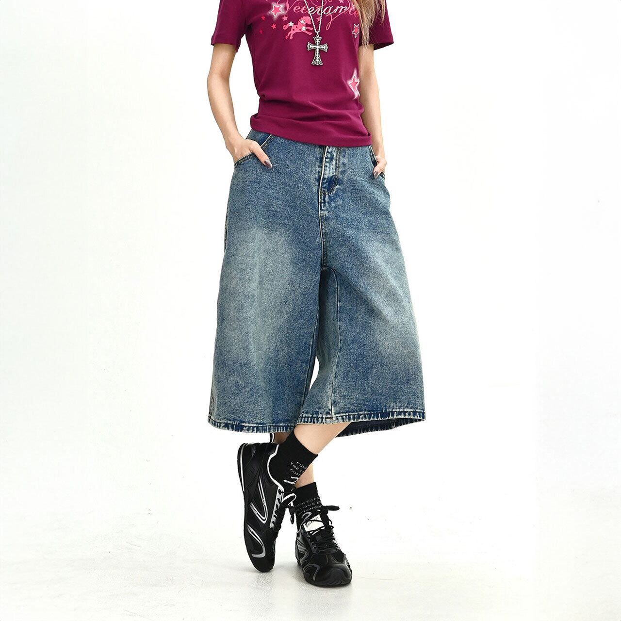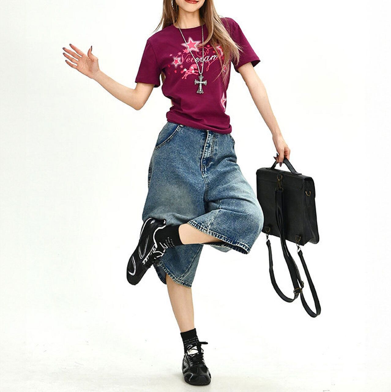 スターモチーフワイドラインクロップドデニムパンツ 1col R02027