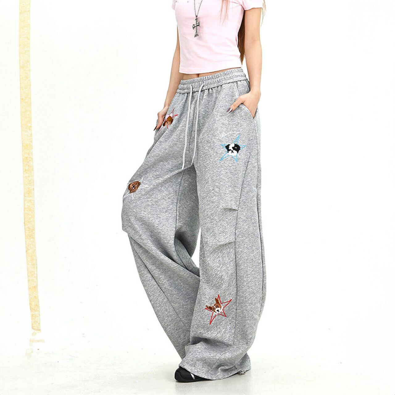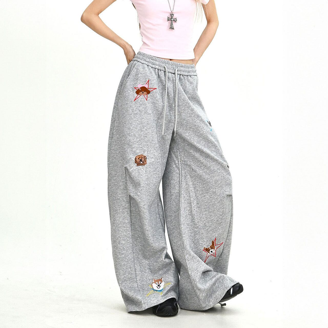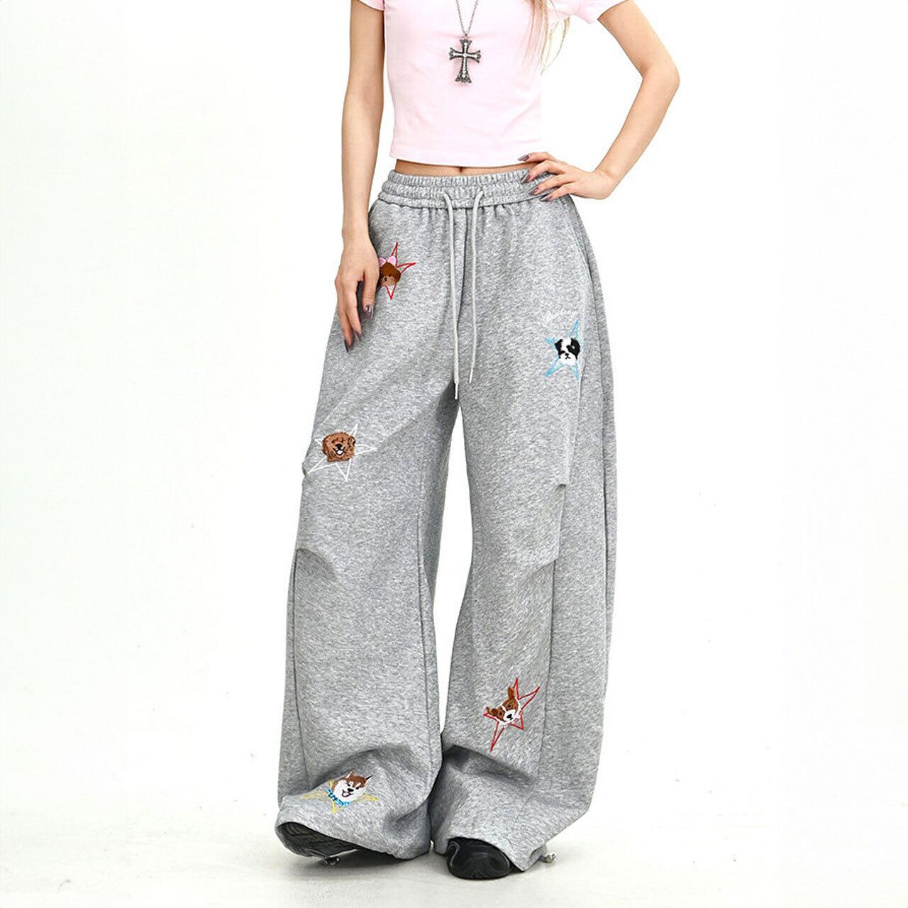 ドッグモチーフルーズフォルムスウェットパンツ 2col R02028