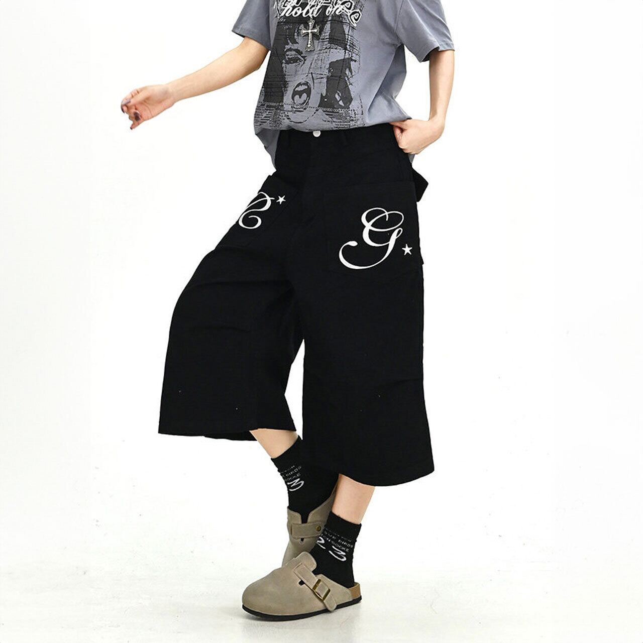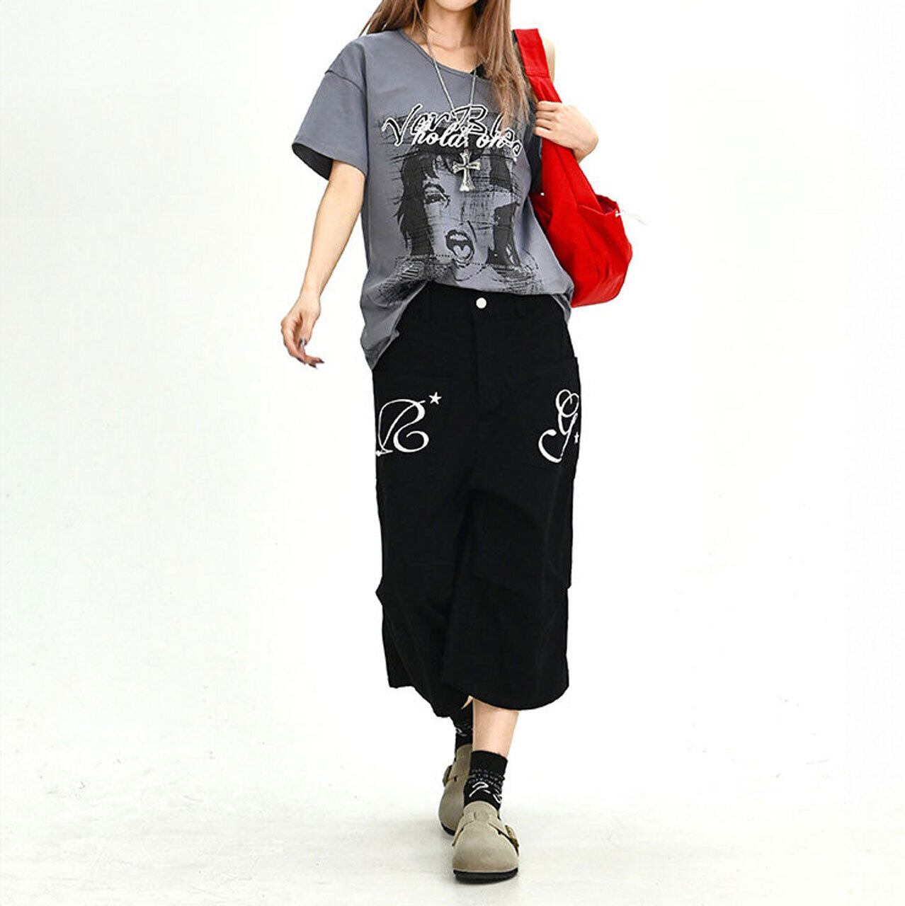 グラフィックポケットクロップドルーズシルエットパンツ 2col R02030