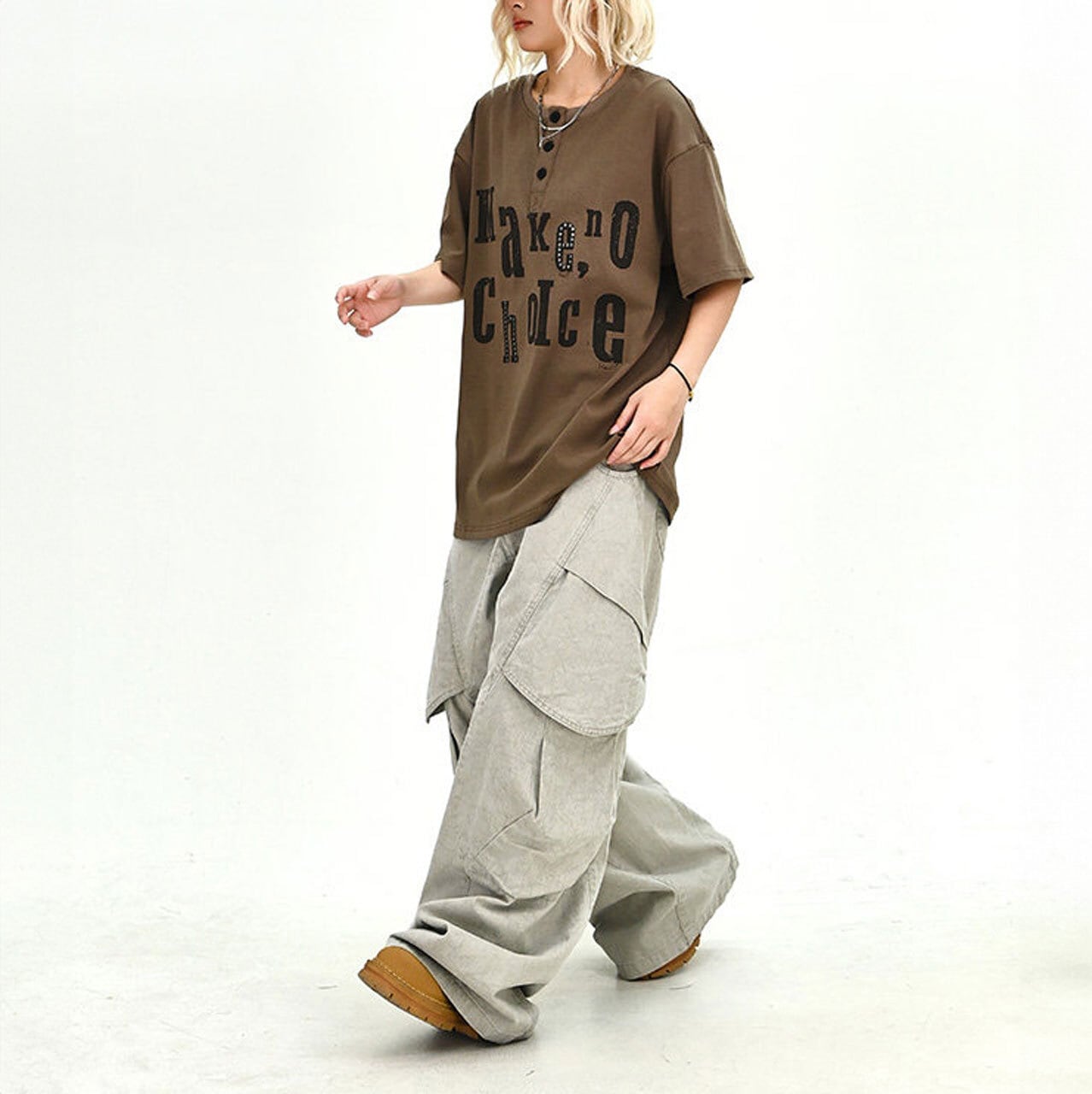 ゆるめのワイドボトムと合わせた、自由で個性的なストリートスタイルがおすすめです。
