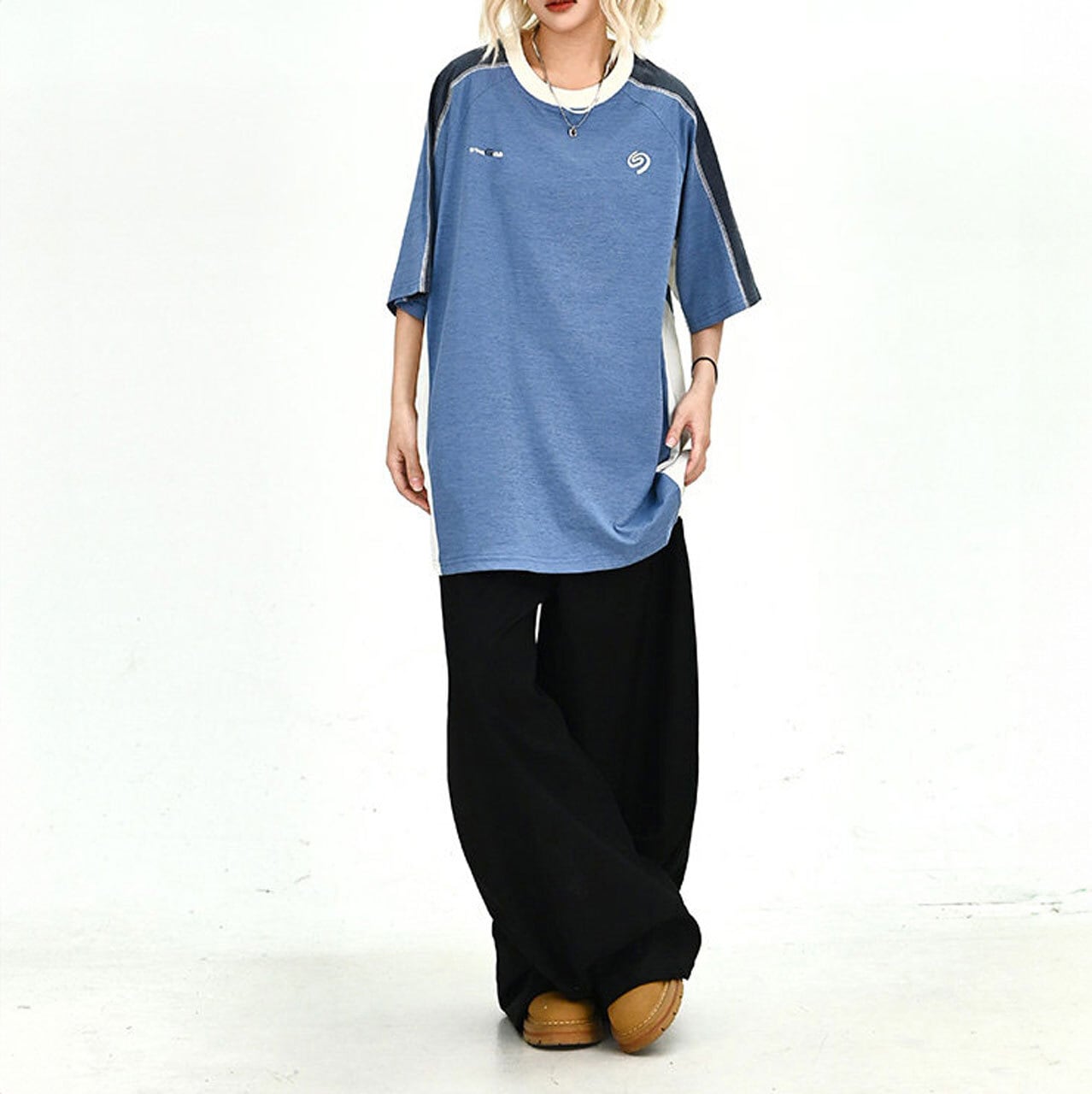パネルデザインラグランルーズラインTシャツ 2col R02034