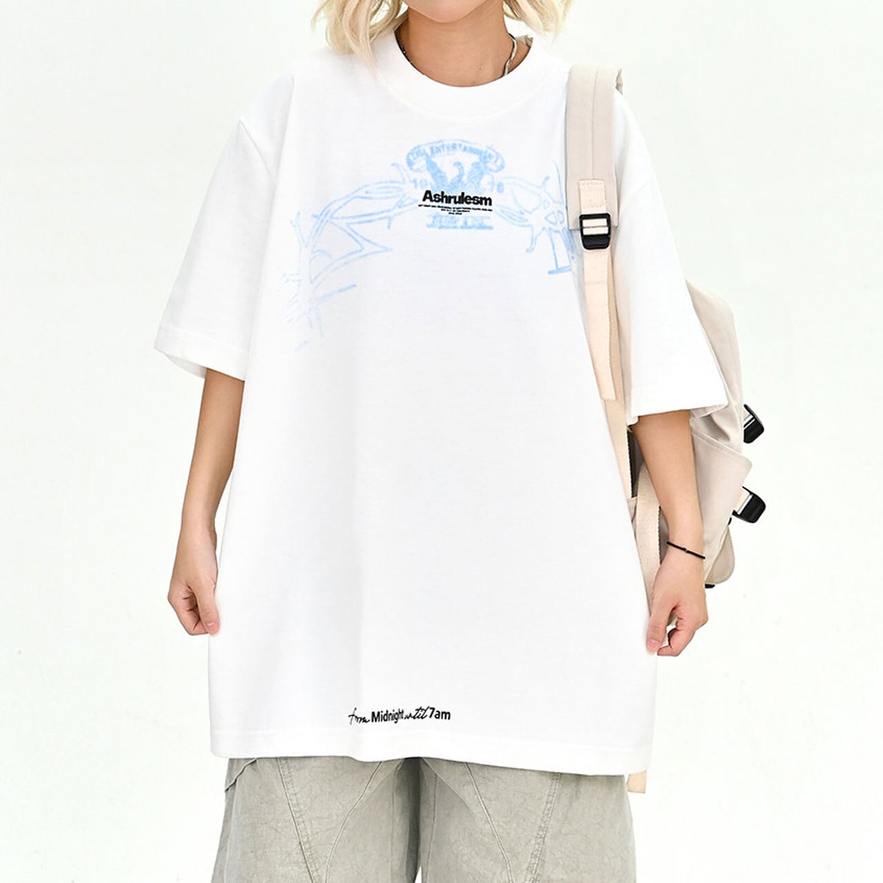 グラフィックアートプリントルーズシルエットTシャツ 2col R02041