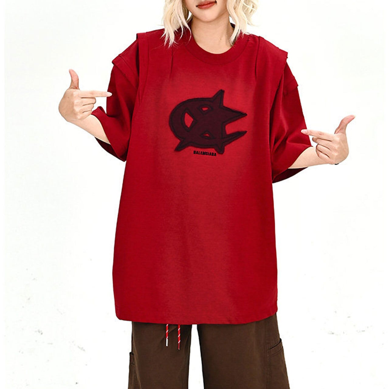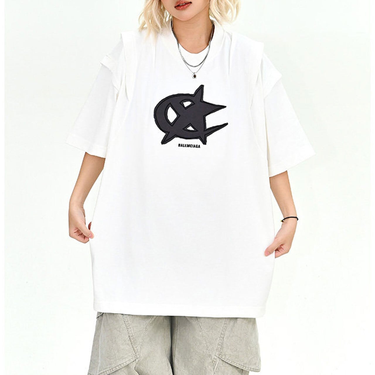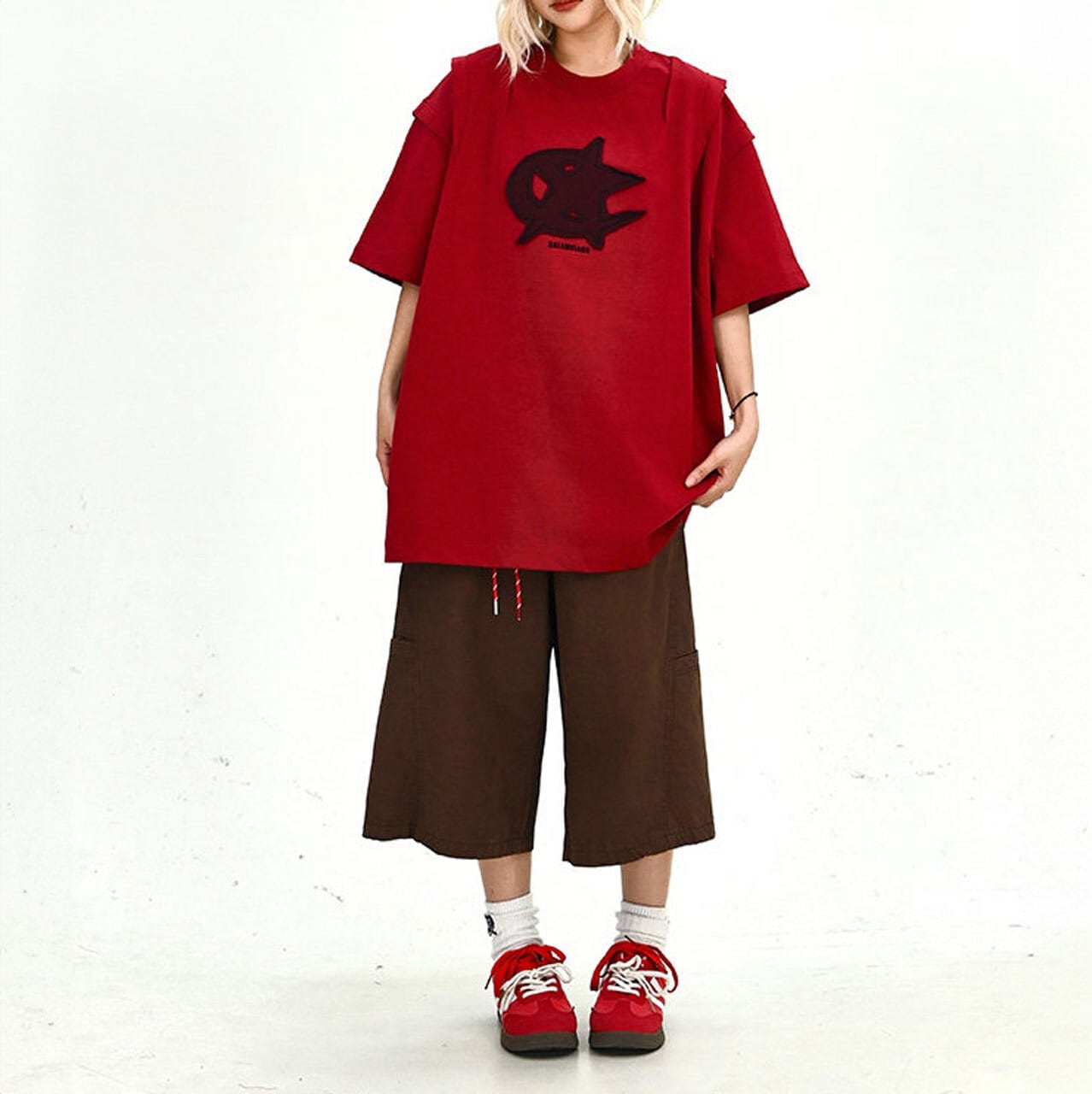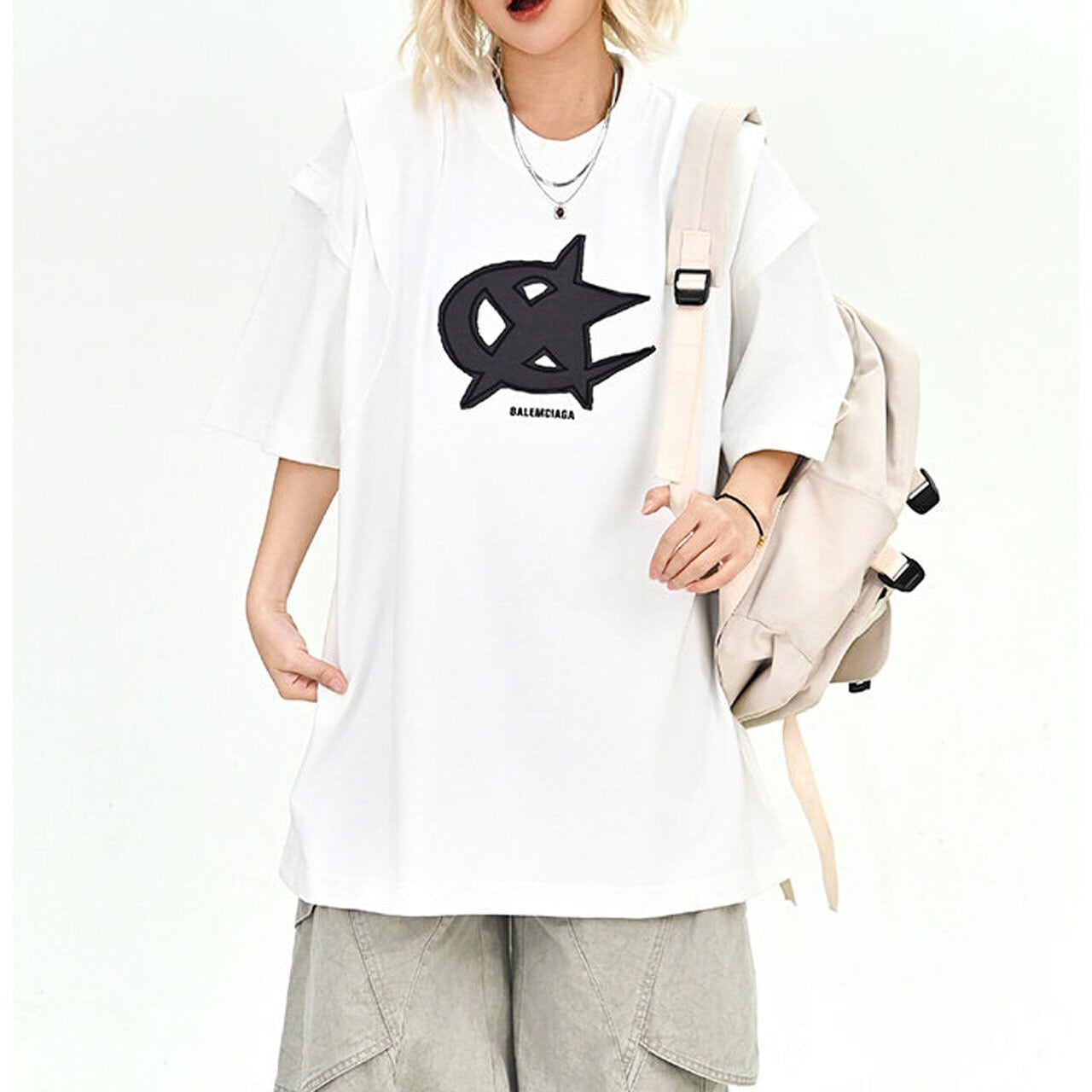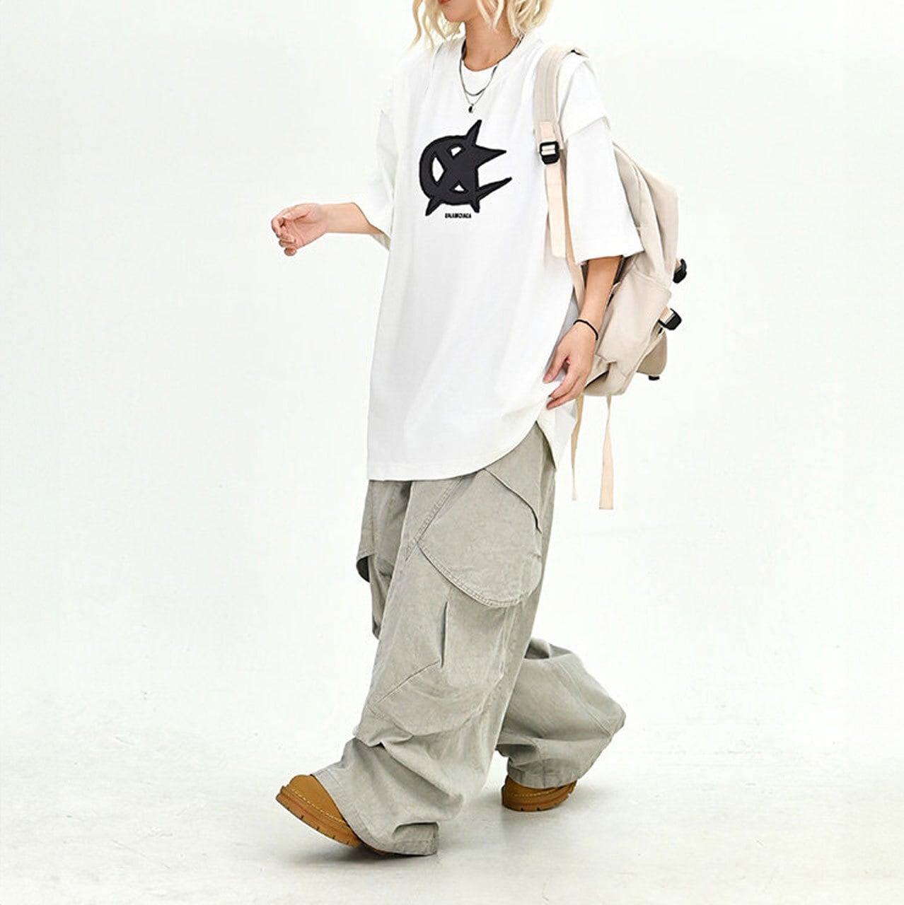 フロントに配したダイナミックなモチーフが目を引く、ストリート感溢れる1着。