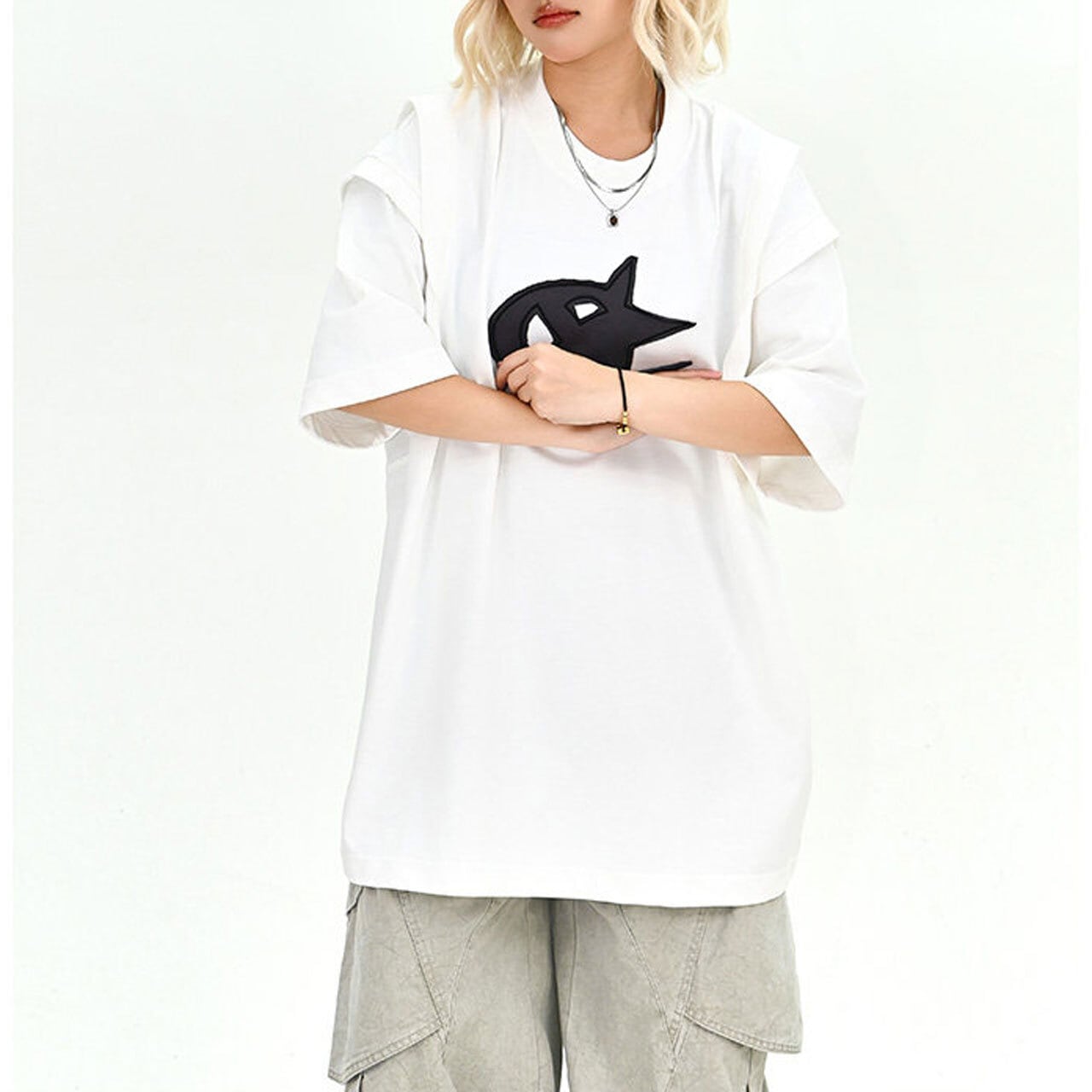 グラフィックモチーフウィングショルダーTシャツ 2col R02043