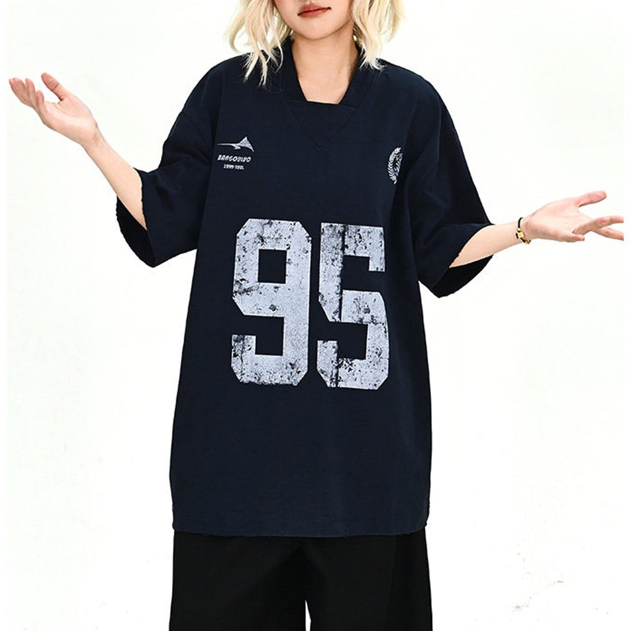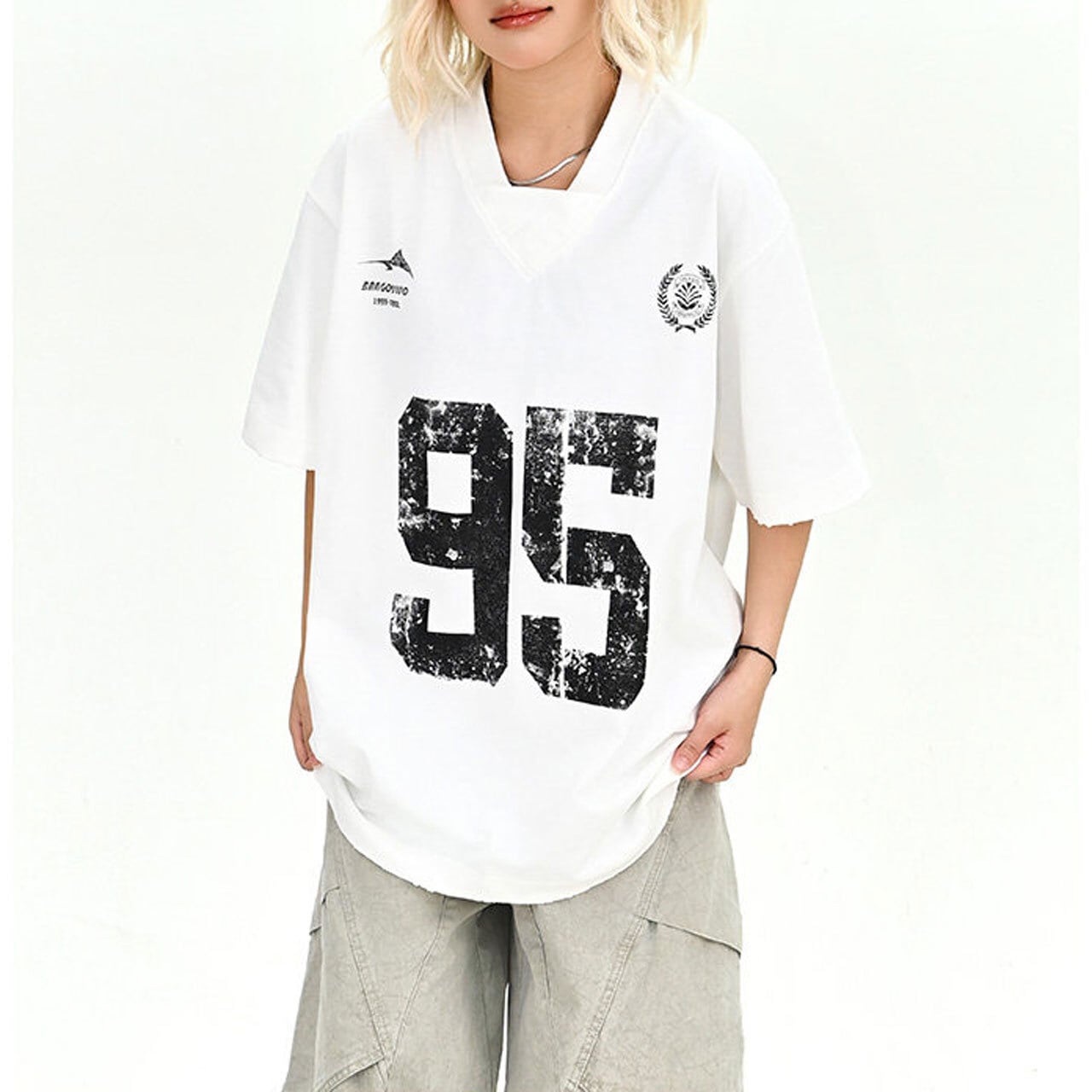 ナンバリングVネックドロップショルダーTシャツ 2col R02048