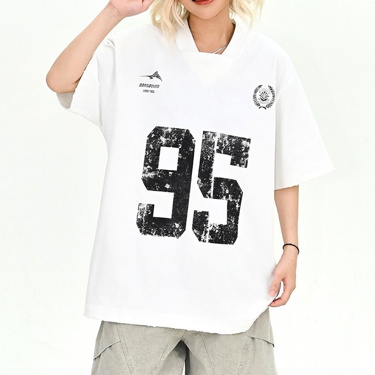 大胆なナンバリングが目を惹くオーバーサイズTシャツ。