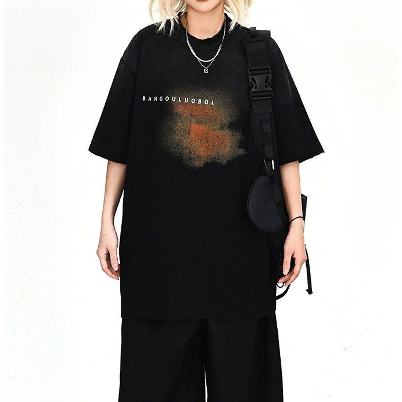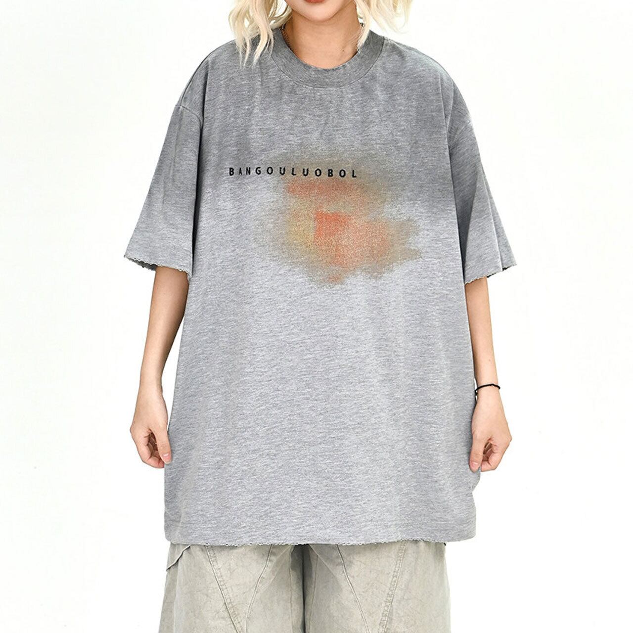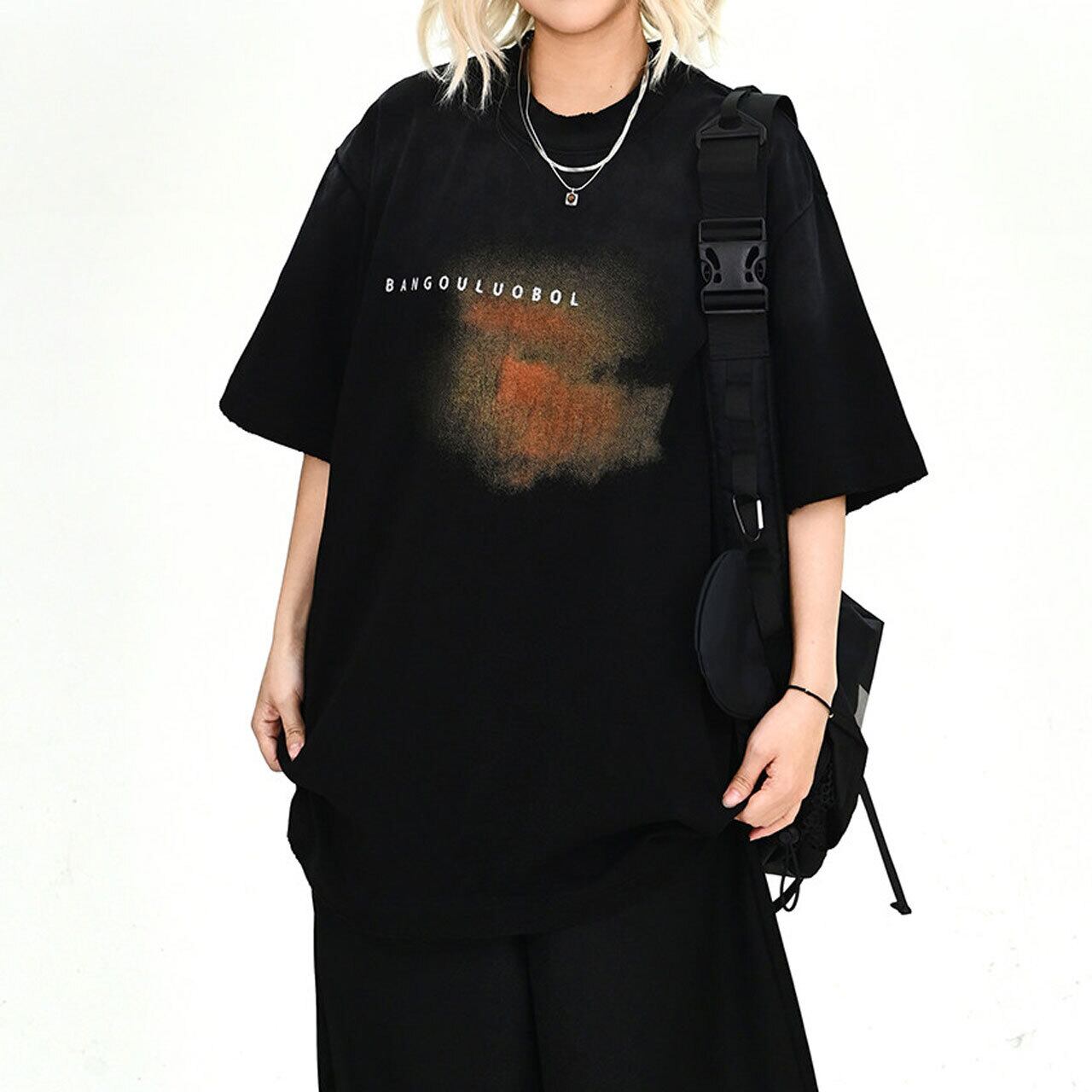 アーティスティックなグラフィックとタイポグラフィが目を惹くオーバーサイズTシャツ。