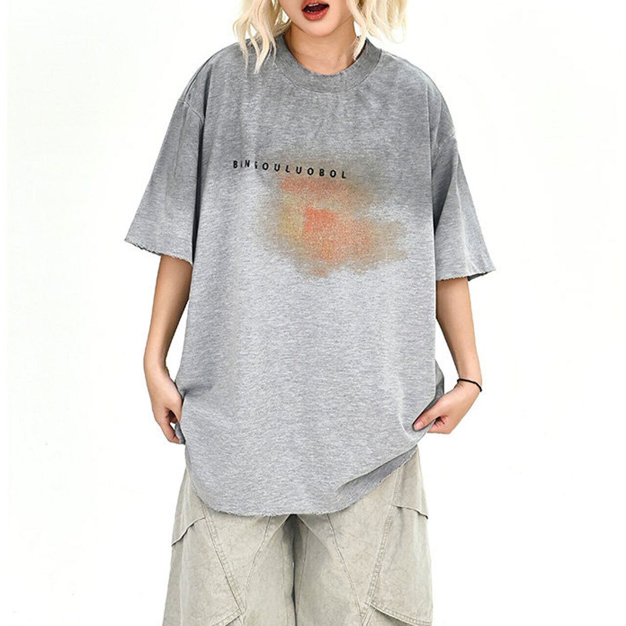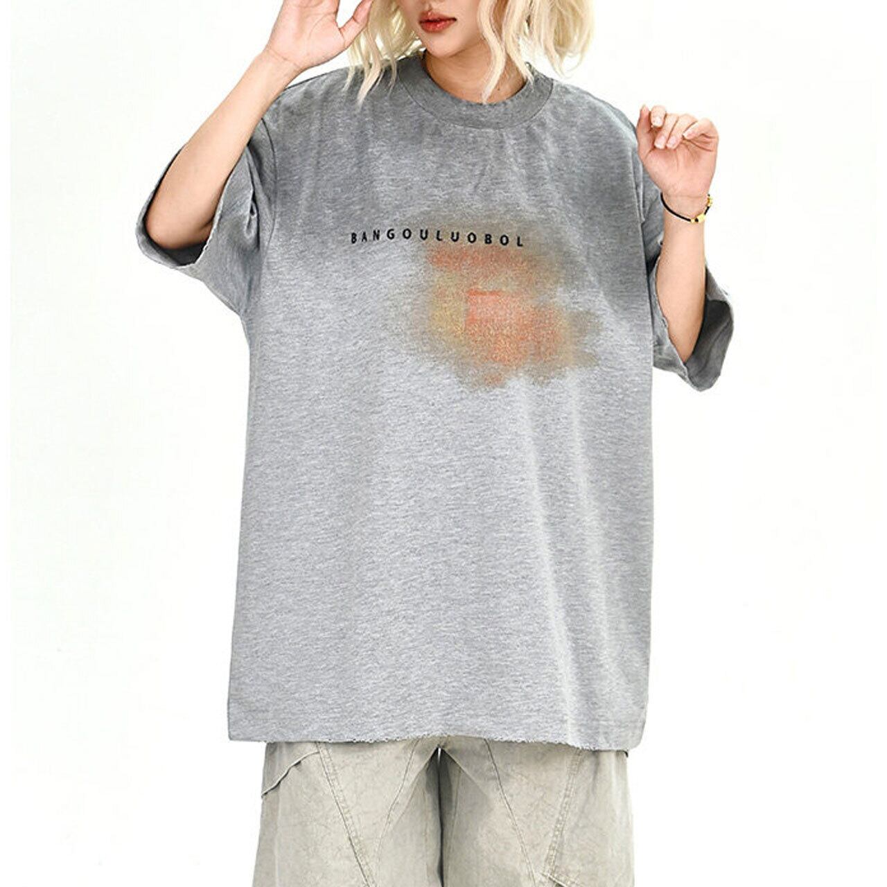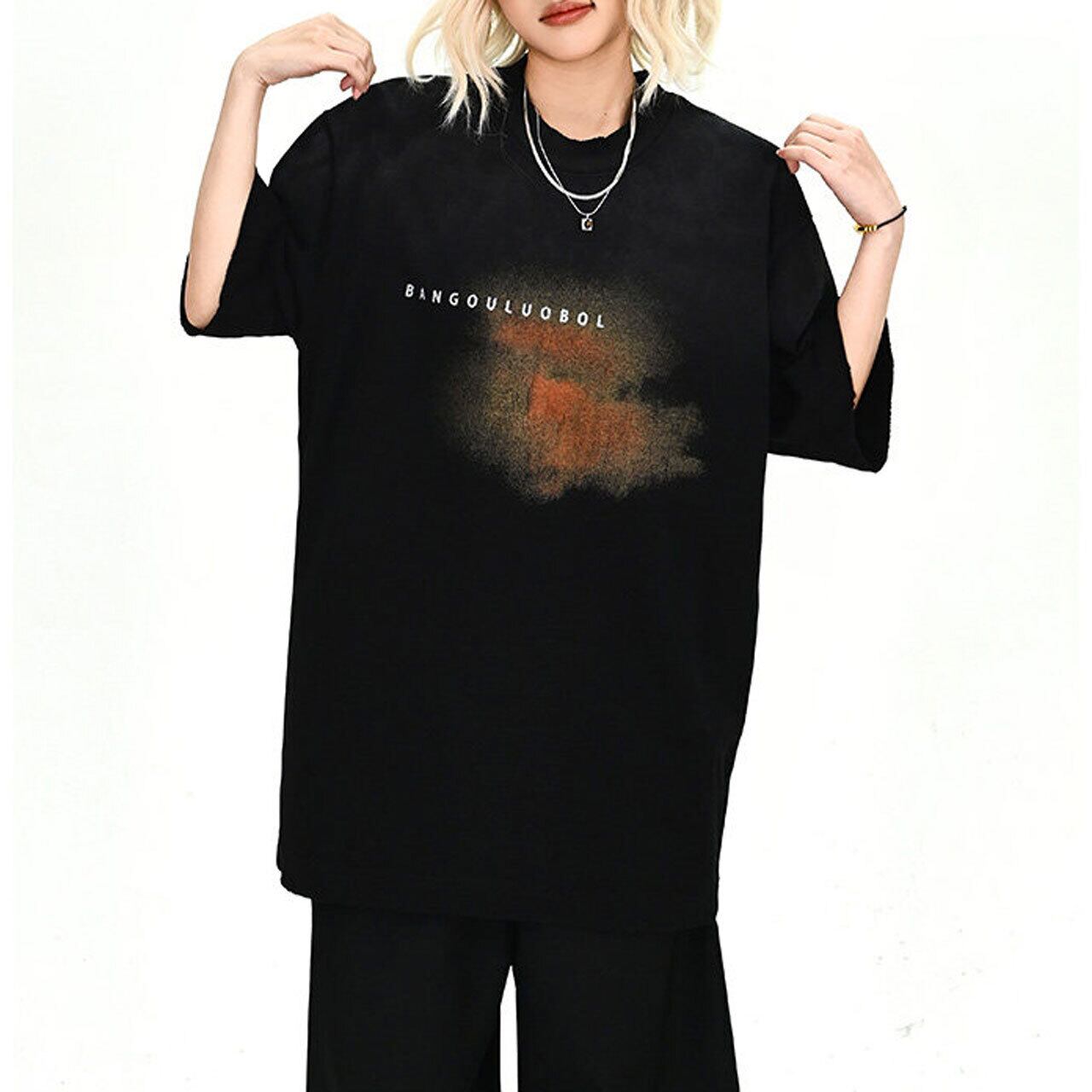 アーティスティックなグラフィックとタイポグラフィが目を惹くオーバーサイズTシャツ。