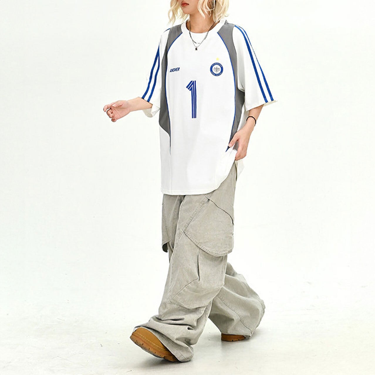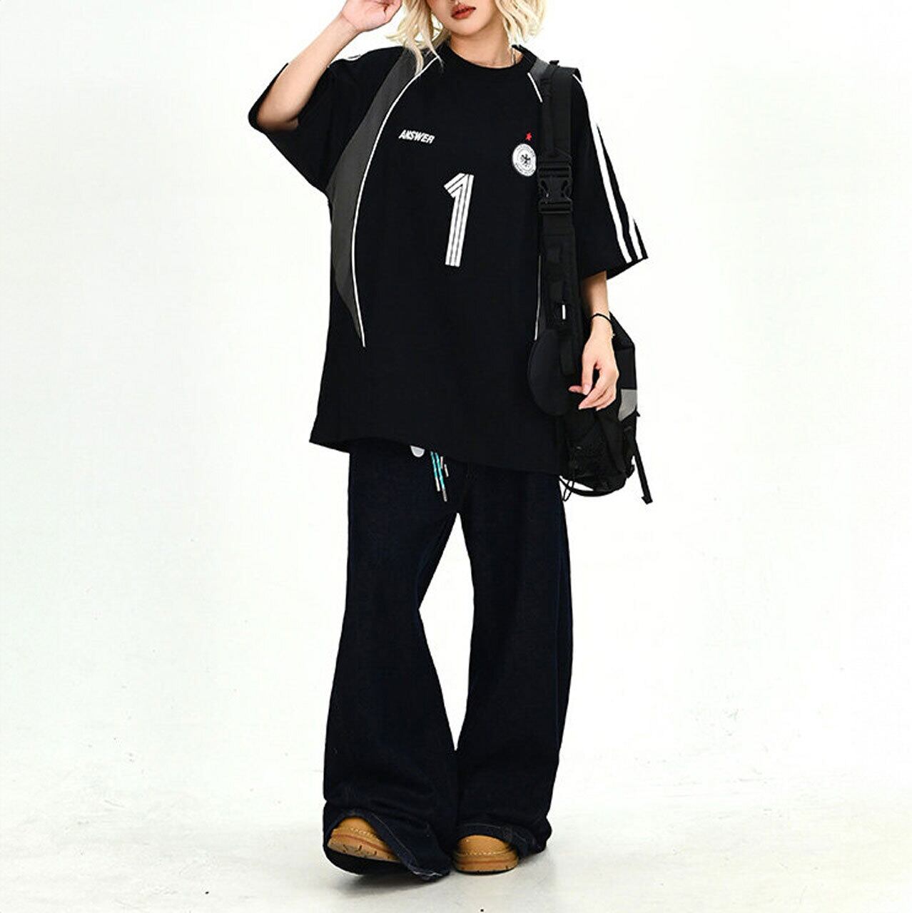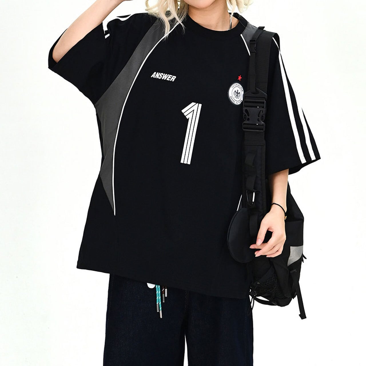 ルーズなシルエットとフロントの大きなナンバリングが目を引くTシャツ。
