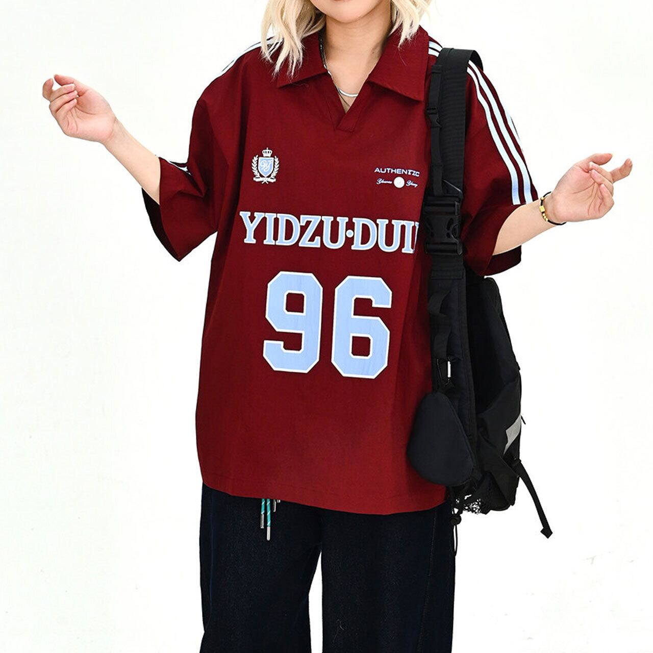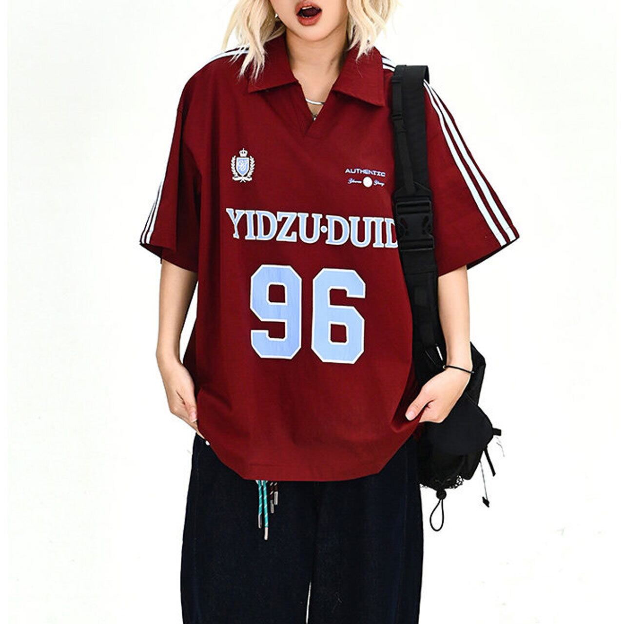 カレッジライクナンバリングポロカラーTシャツ 2col R02054
