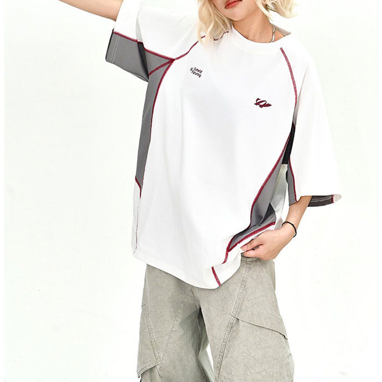 パネルスイッチングラインクルーネックTシャツ 2col R02056