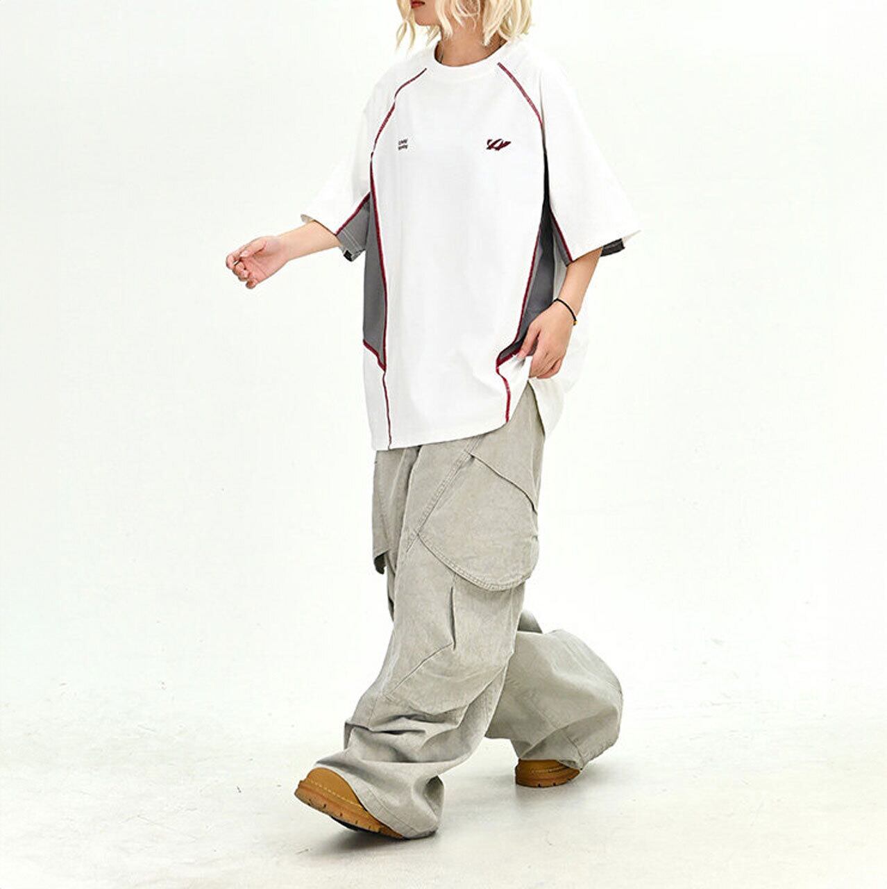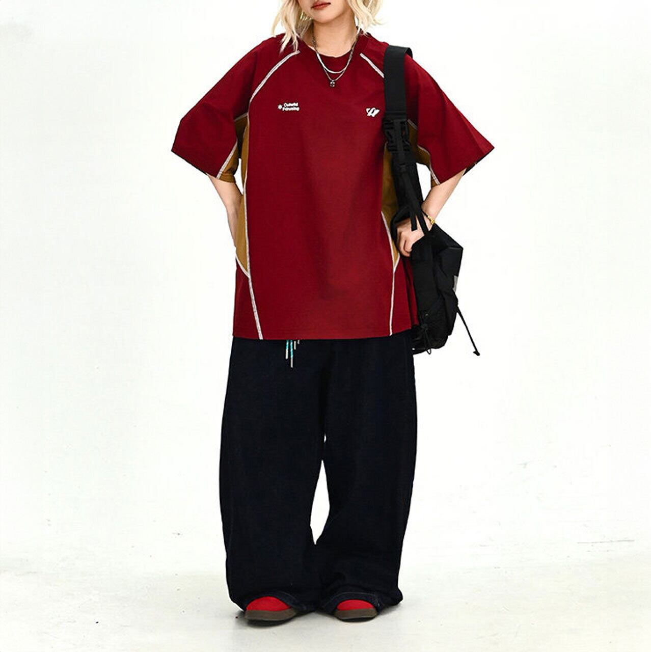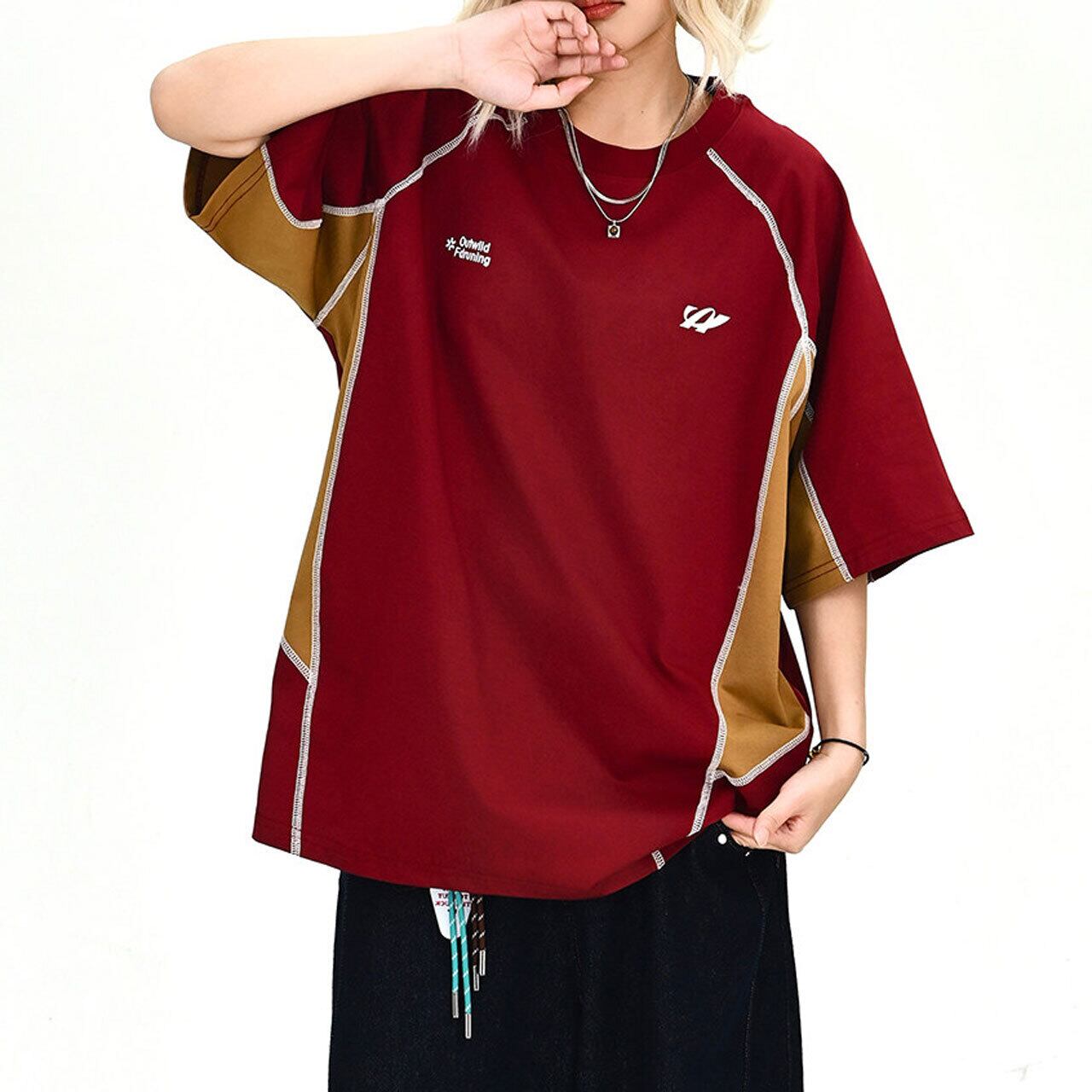 目を引く配色切り替えが、コーディネートのアクセントになるTシャツ。
