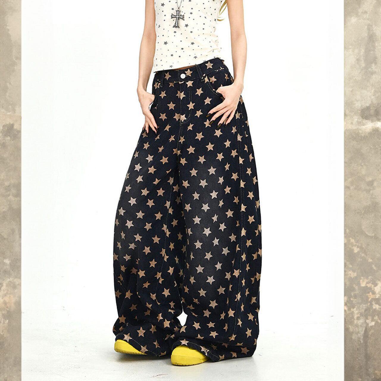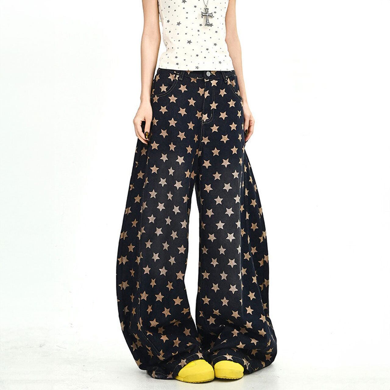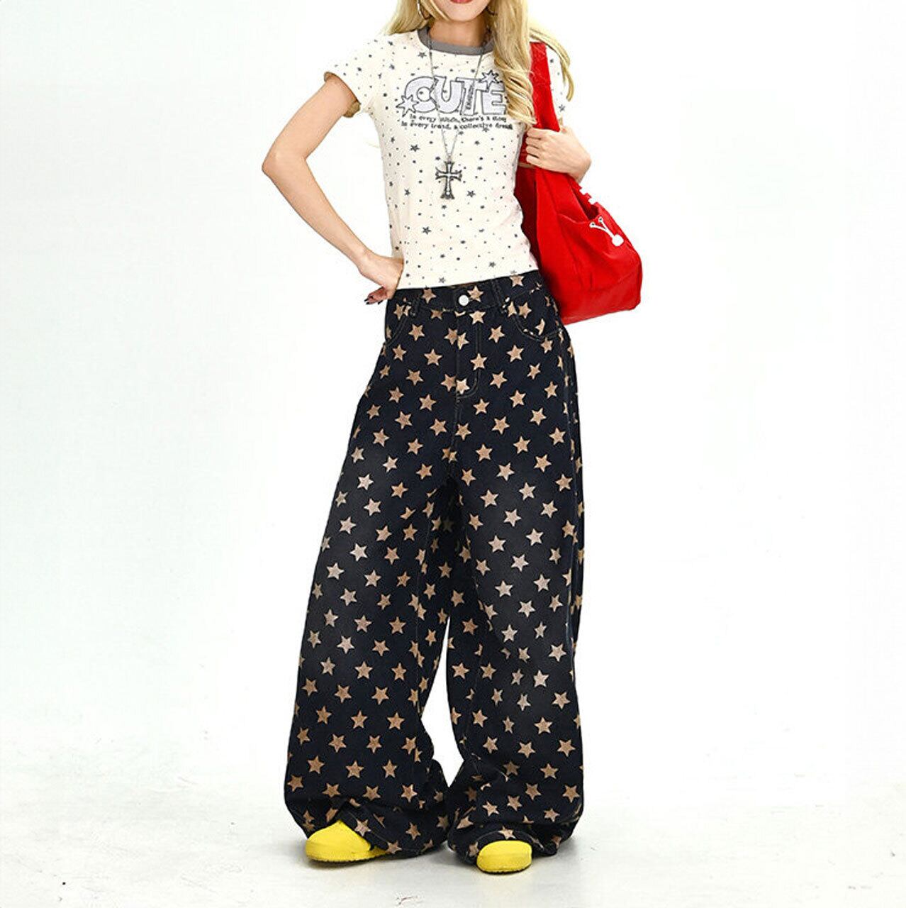 キャッチーな星のディテールが、ポップなストリートスタイルを叶えるワイドパンツ。