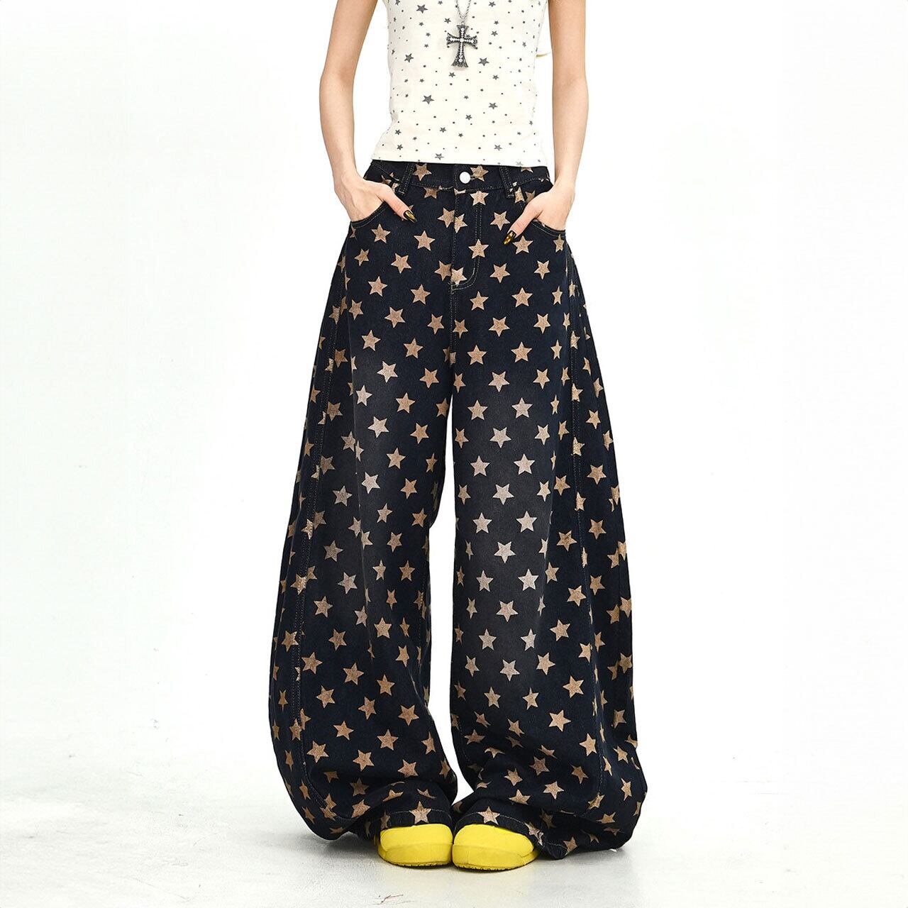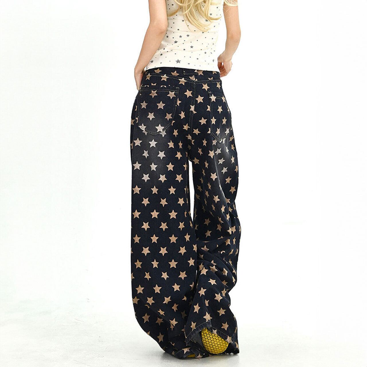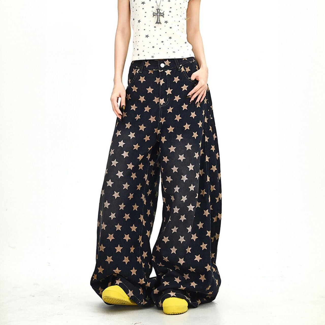 キャッチーな星のディテールが、ポップなストリートスタイルを叶えるワイドパンツ。