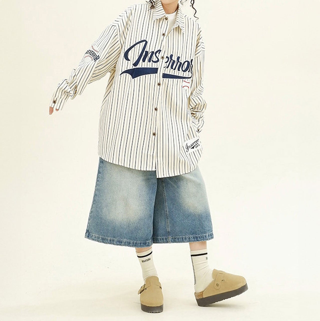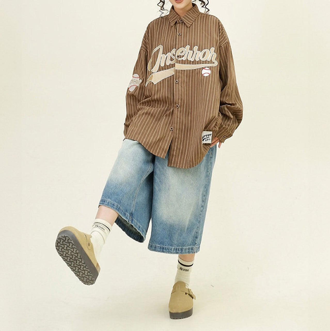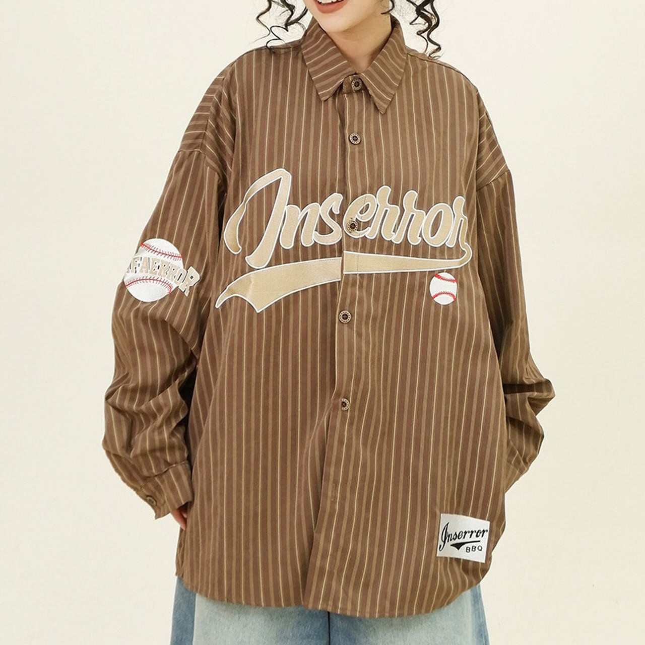ベースボールグラフィックストライプルーズフォルムシャツ 2col R02065