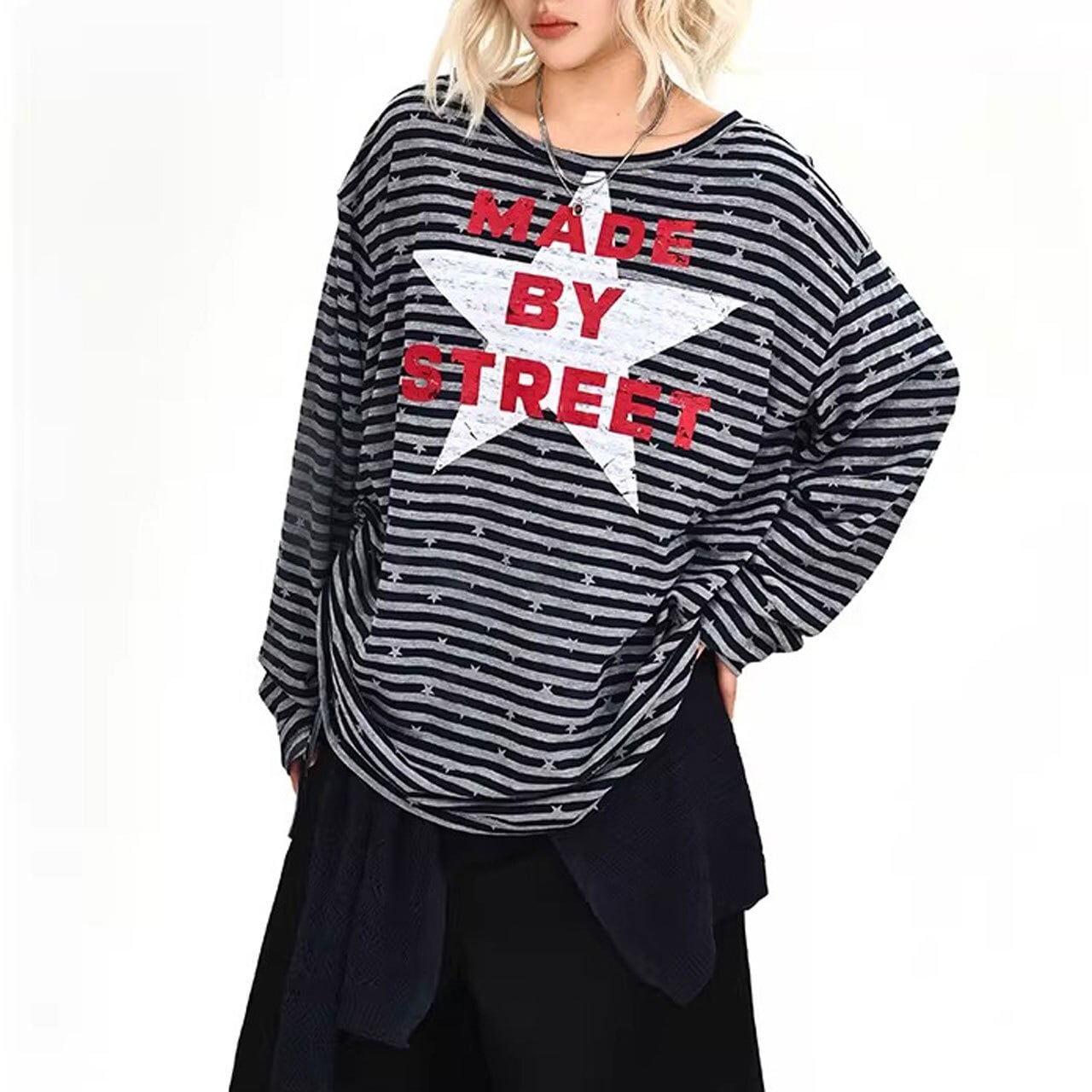 レタリングプリントボーダールーズフォルムトップス 1col R02128