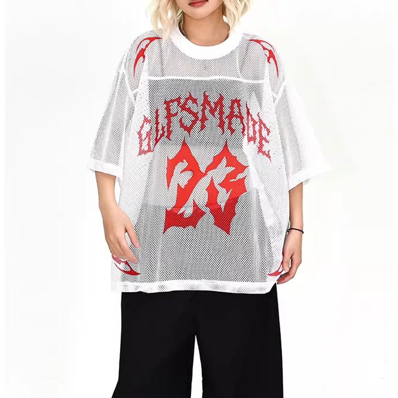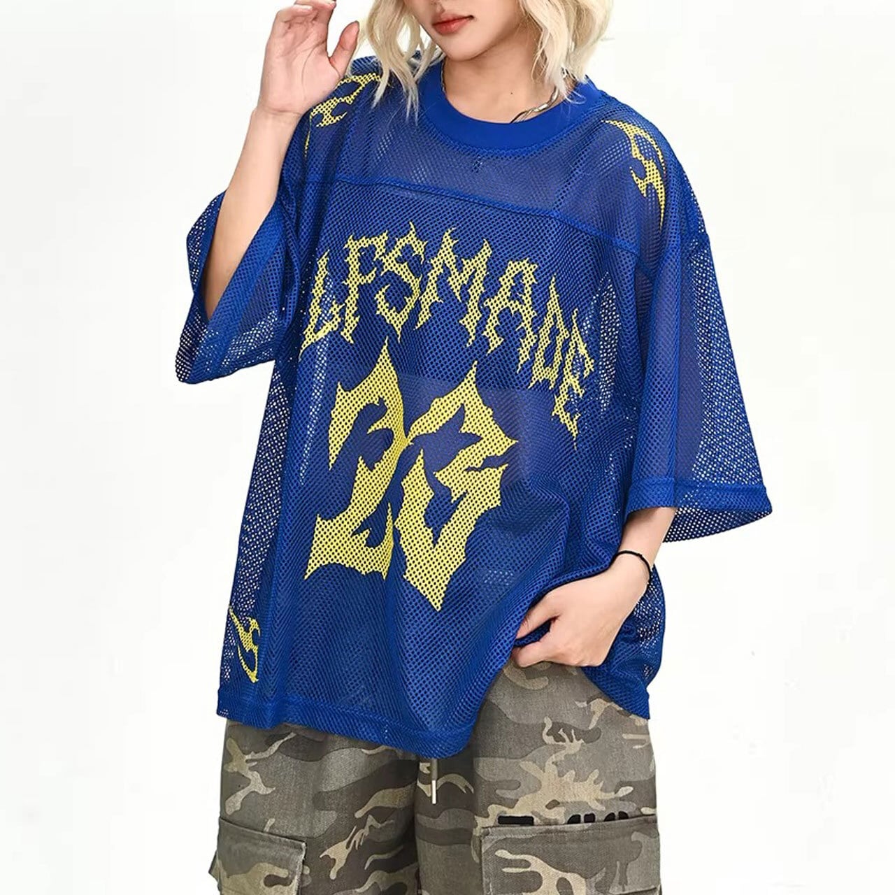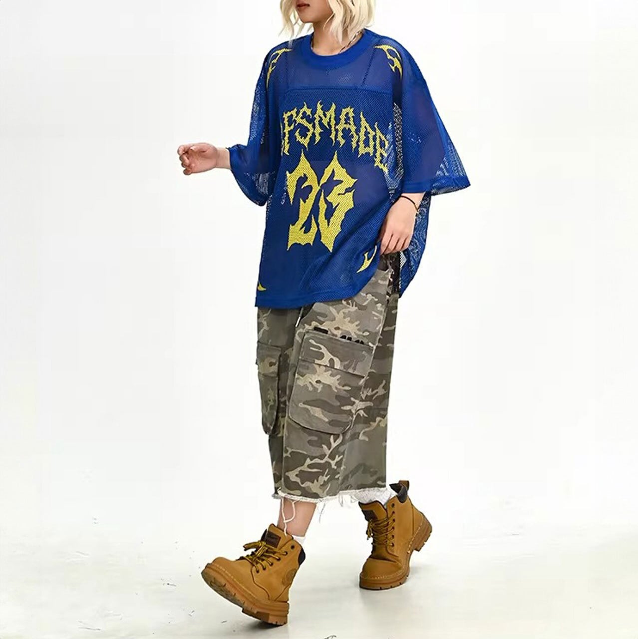 スポーツミックスゴシックレタリングナンバリングルーズフォルムTシャツ 2col R02131