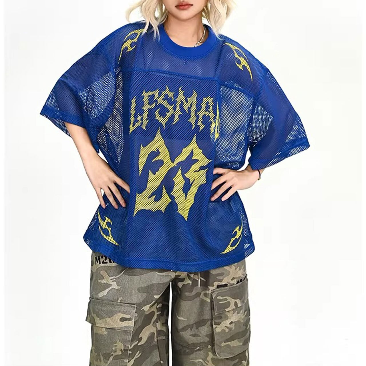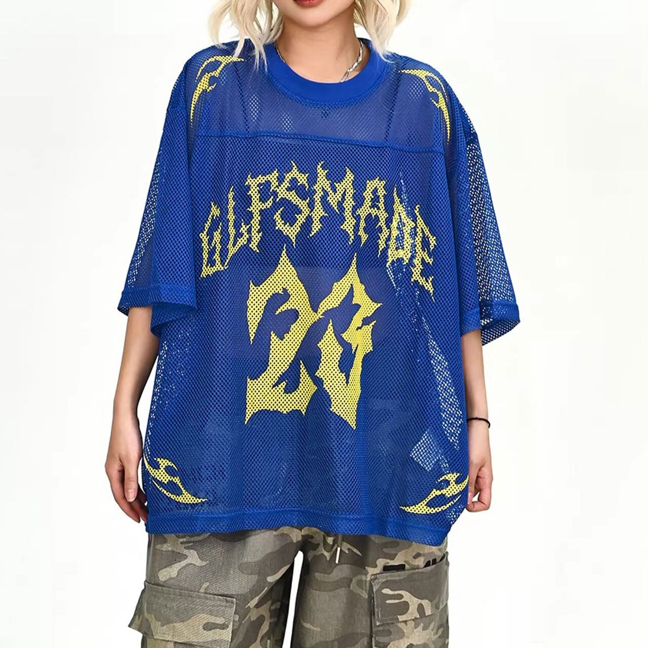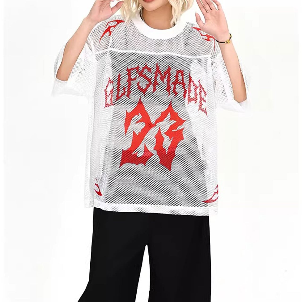 スポーツミックスゴシックレタリングナンバリングルーズフォルムTシャツ 2col R02131