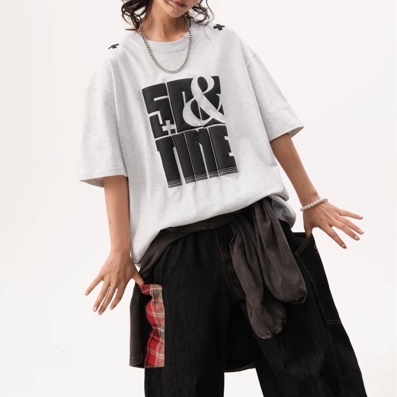 ラフなサイズ感は、ワイドデニムやカーゴパンツと合わせた王道のストリートスタイルにぴったりな1枚です。