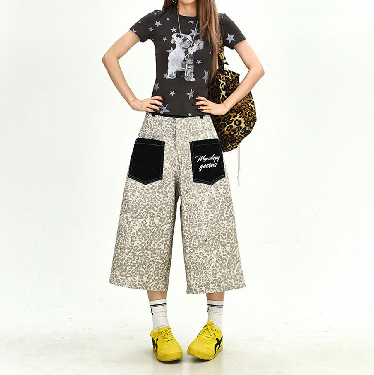 レオパードパターンパッチポケットクロップドパンツ 2col R02171
