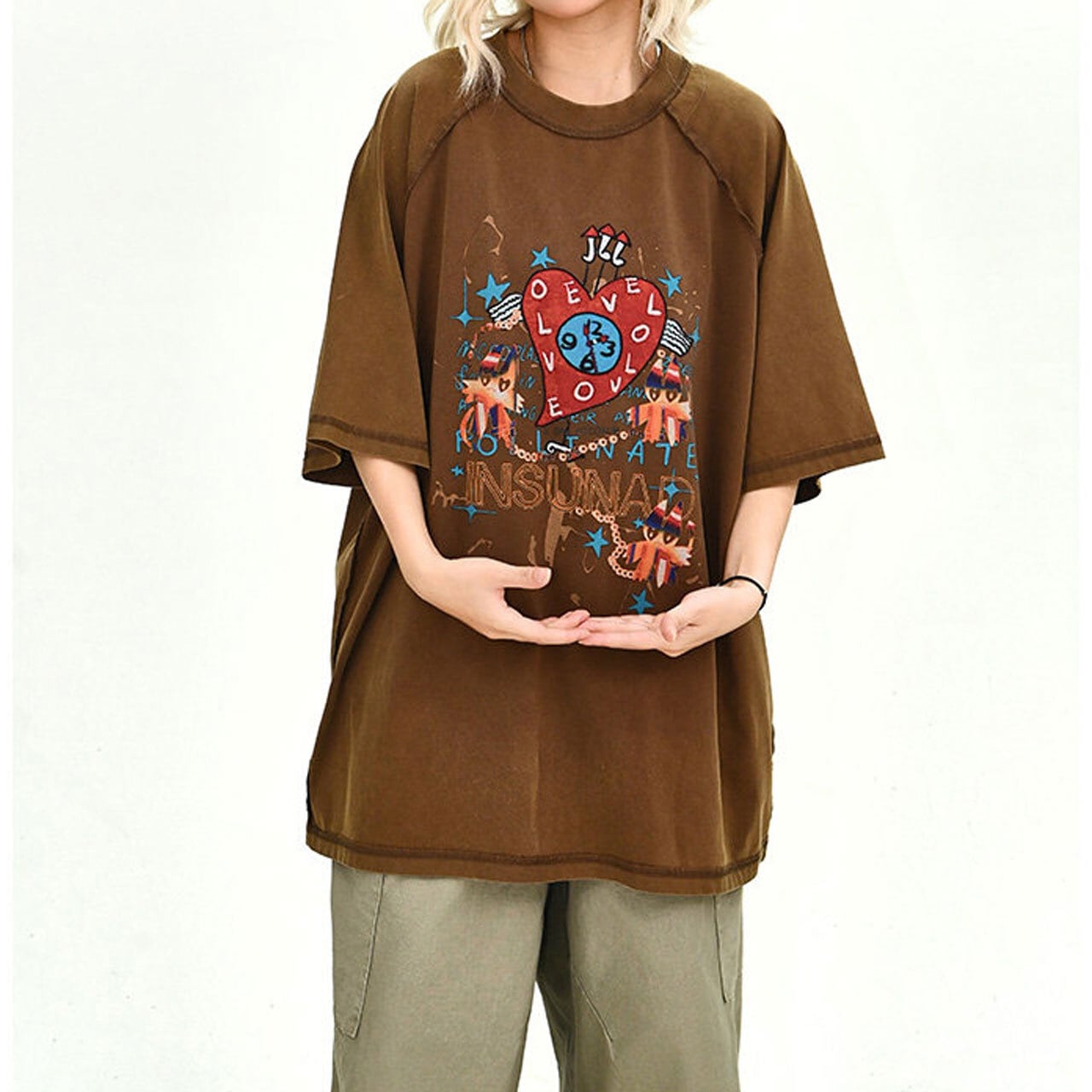 グラフィックハートラグランルーズフォルムTシャツ 2col R02173