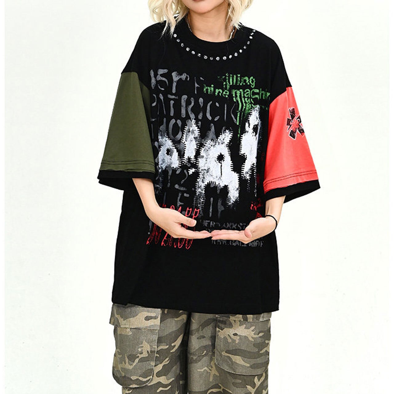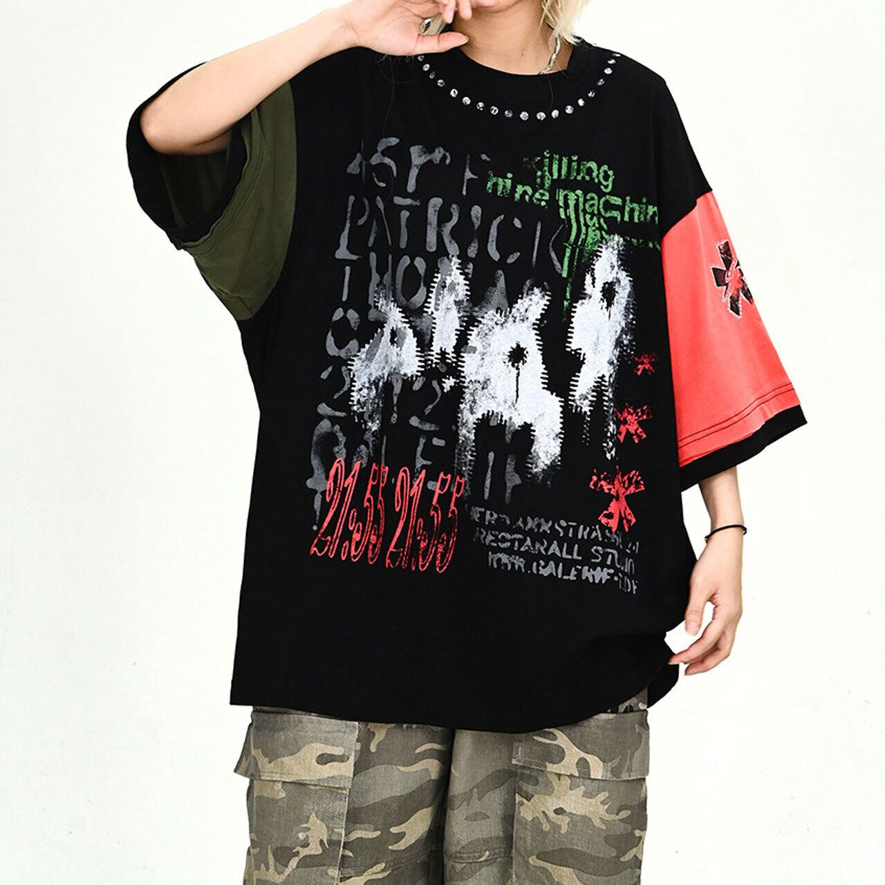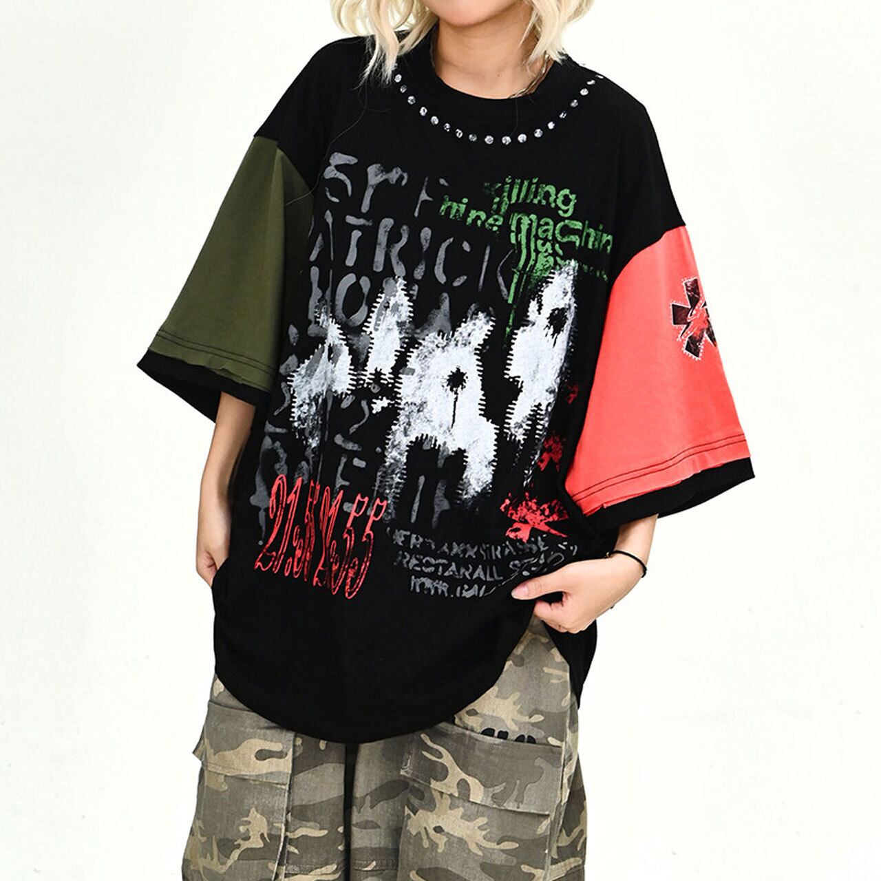 アシンメトリーカラーペイントライクTシャツ 1col R02175