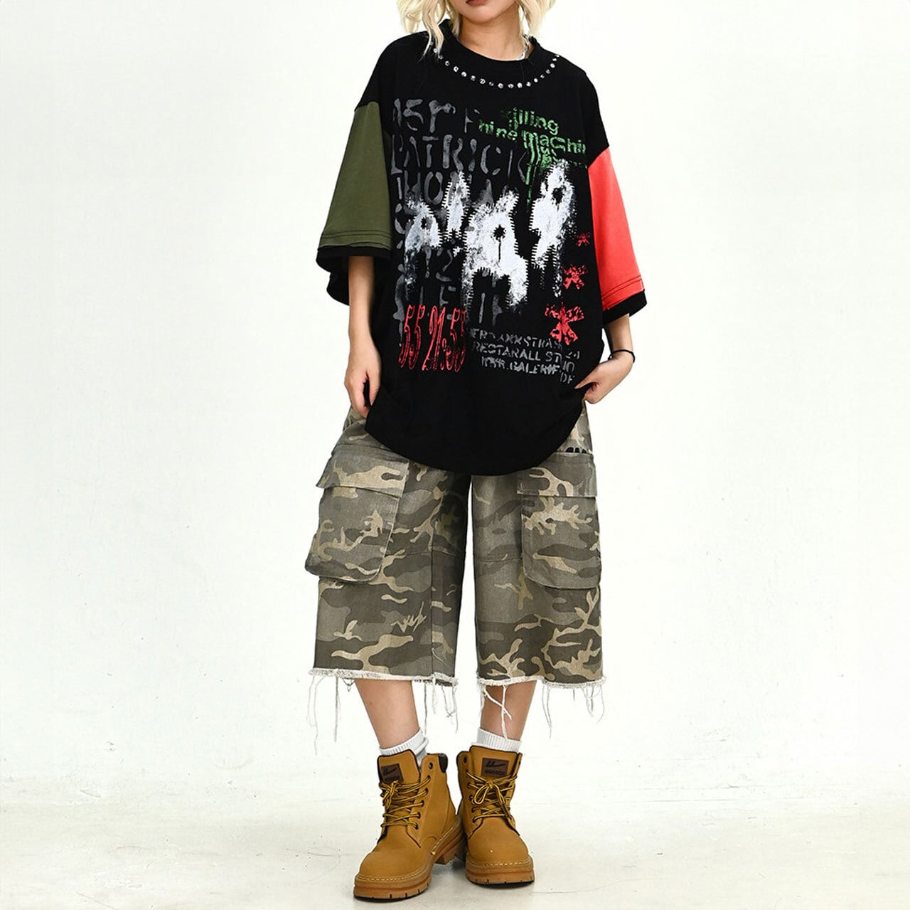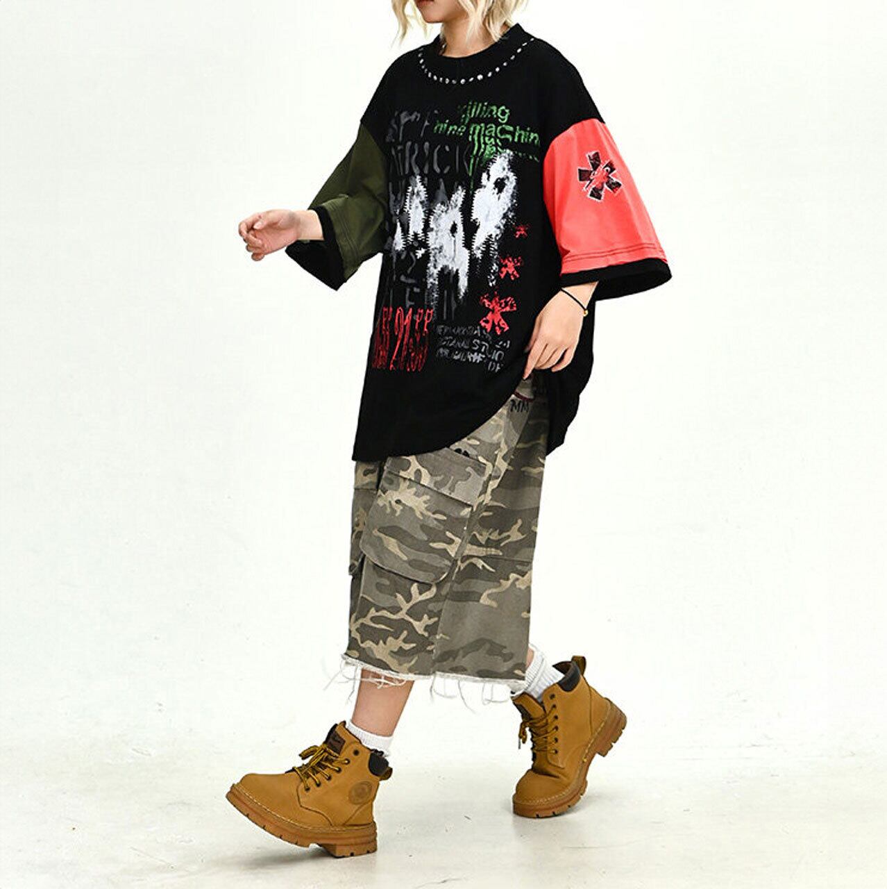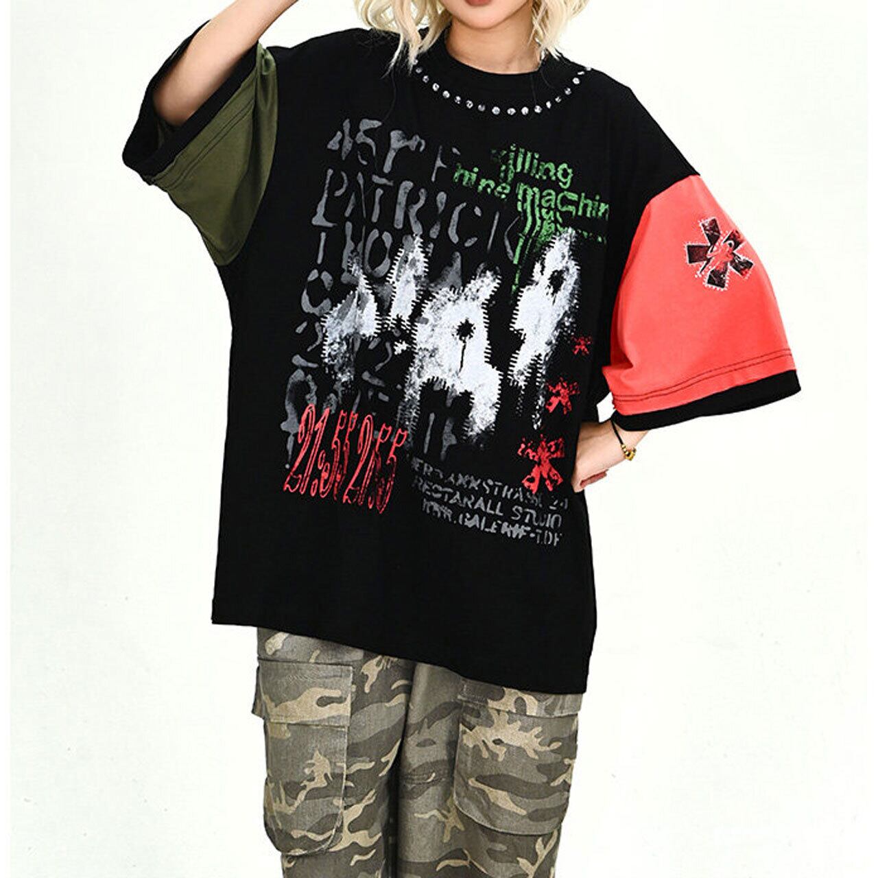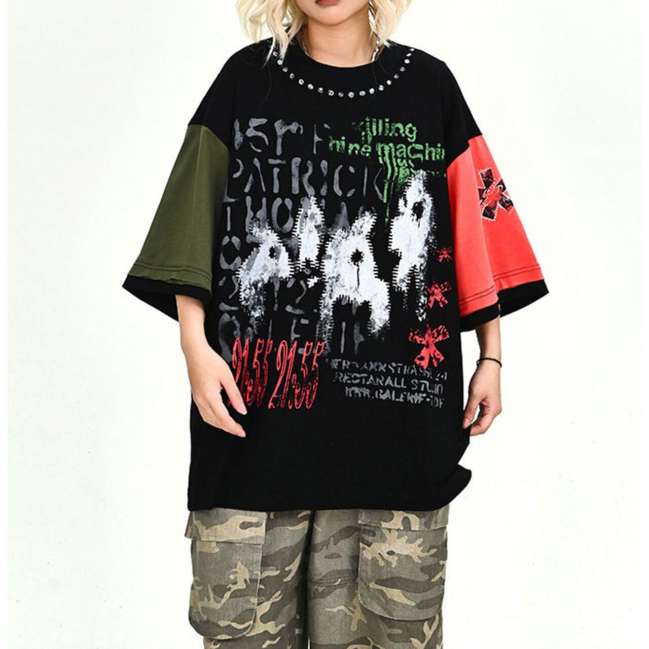 アシンメトリーカラーペイントライクTシャツ 1col R02175