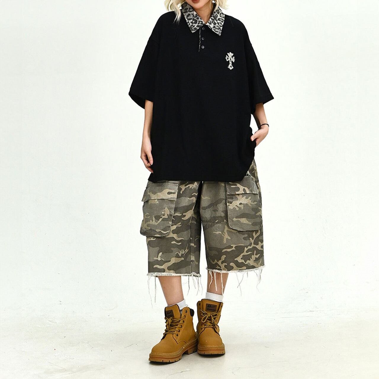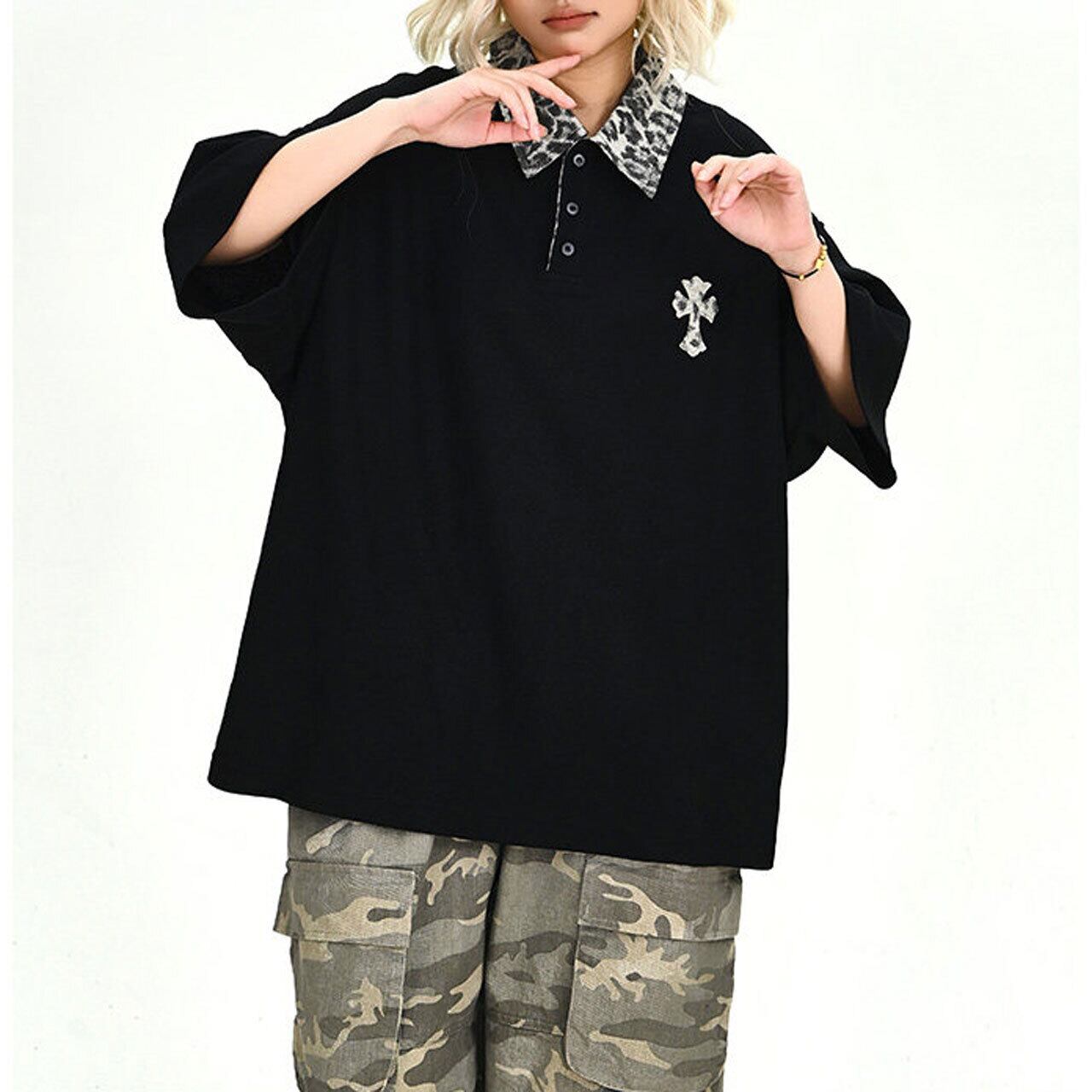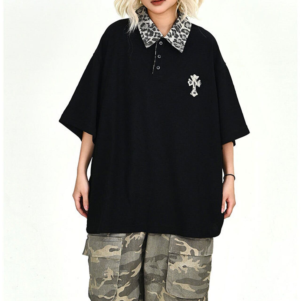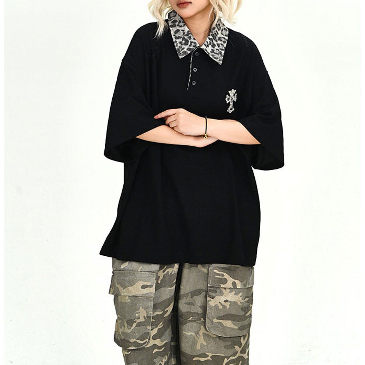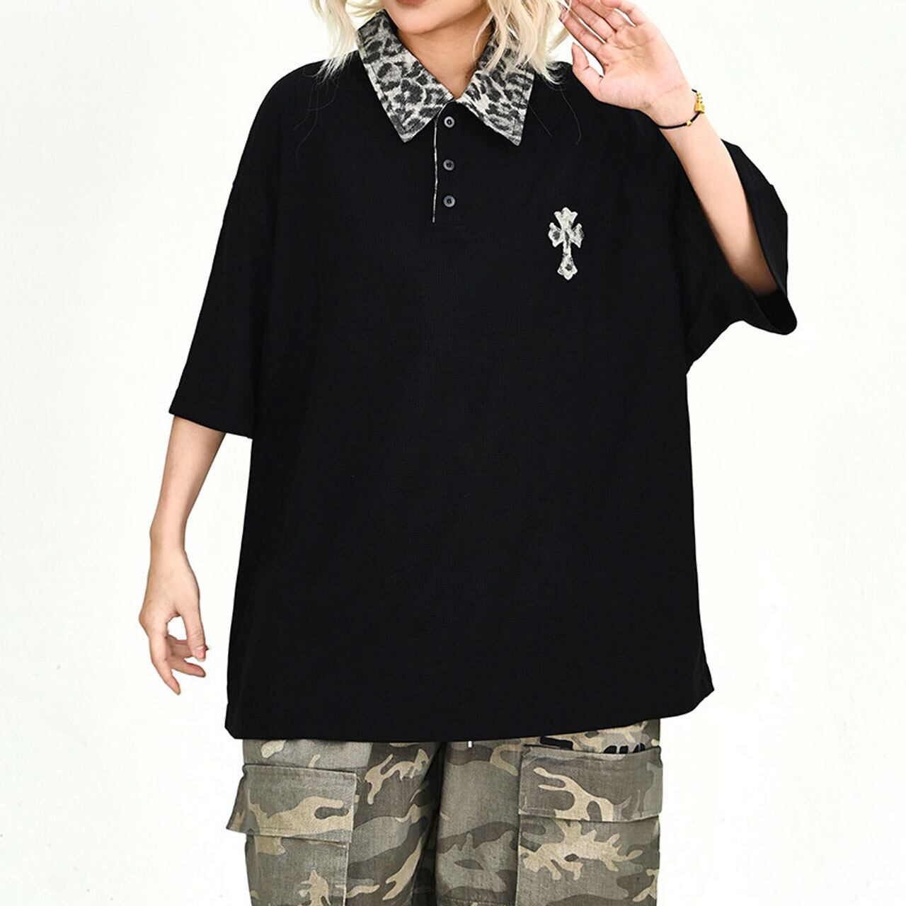 レオパードコンビクロスモチーフアクセントポロシャツ 1col R02180