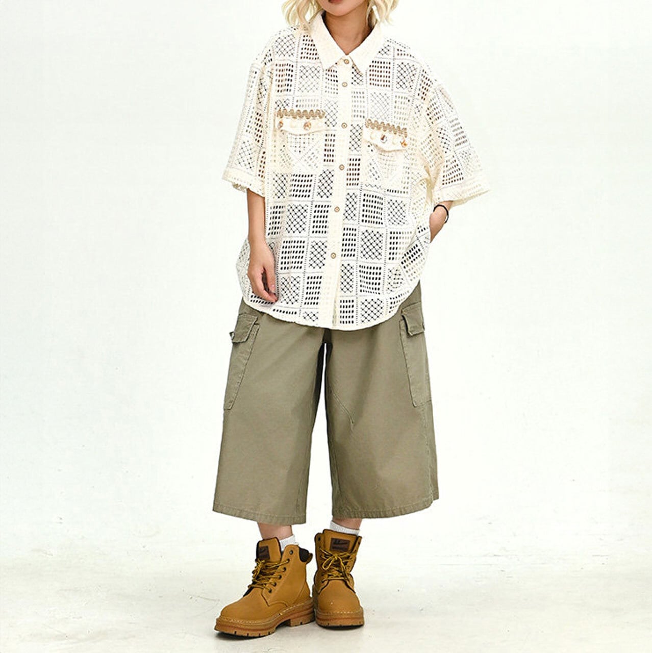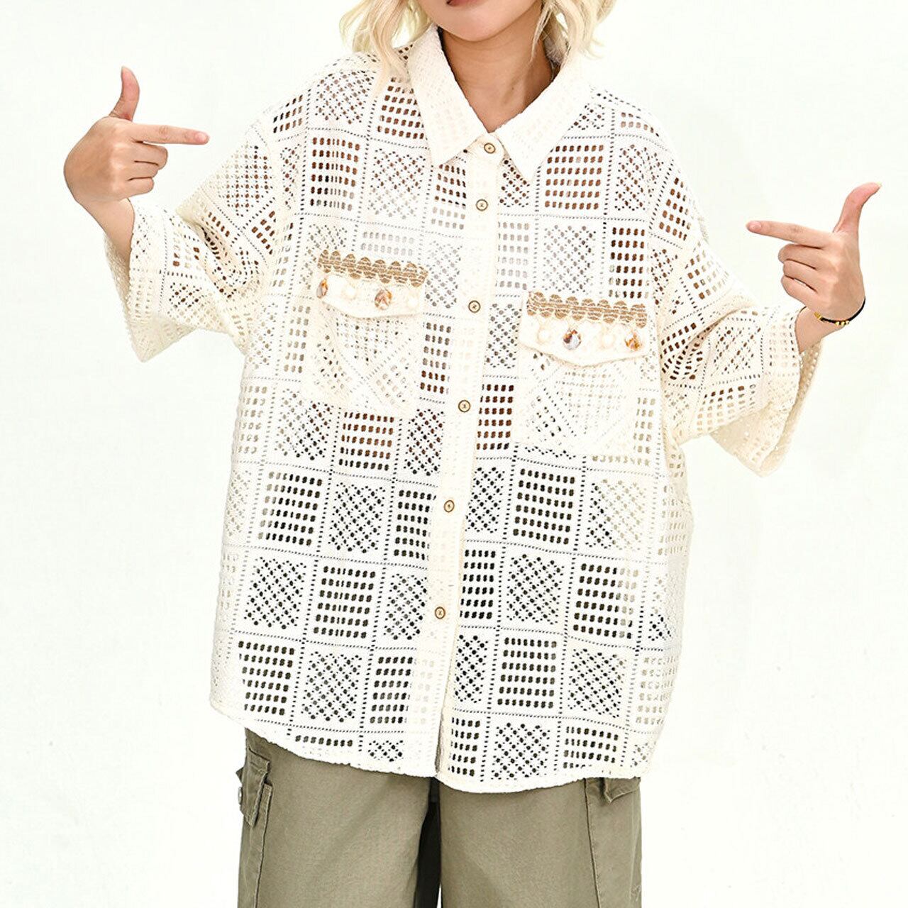 タンクトップやキャミソールとのレイヤードで、涼しげなスタイリングを楽しめます。
