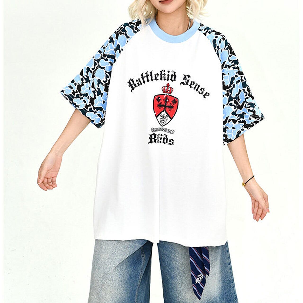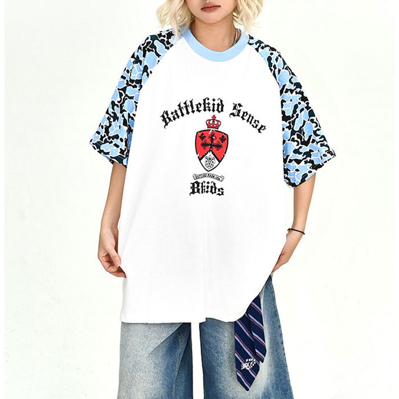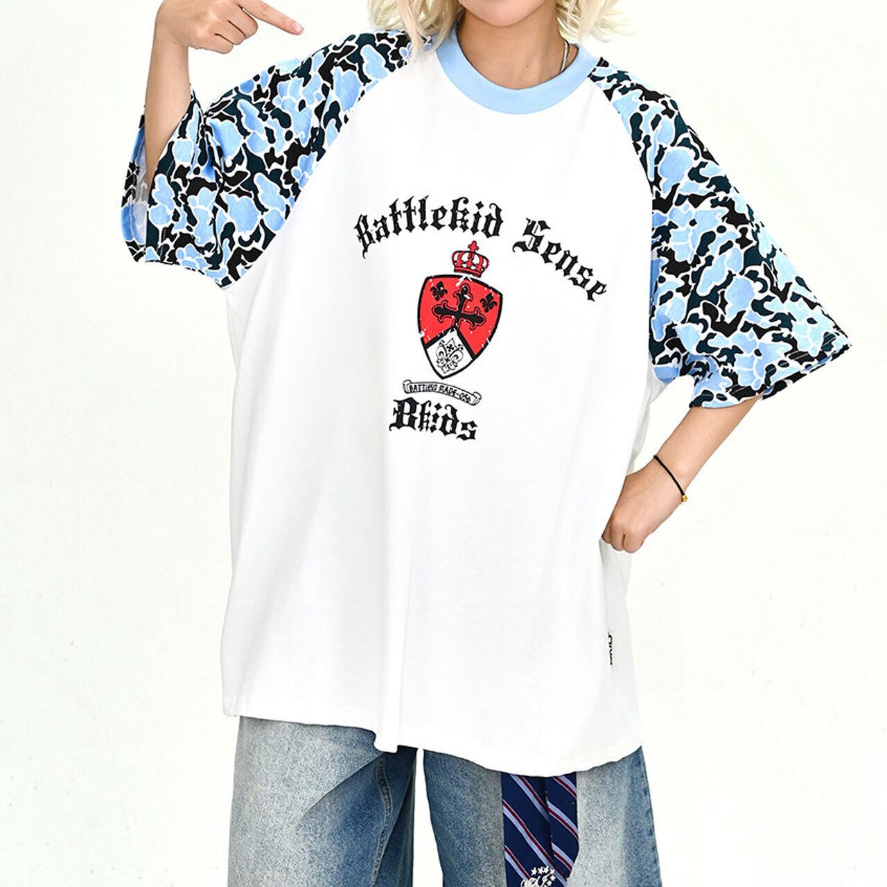 カモフラージュパネルゴシックエンブレムラグランTシャツ 2col R02183