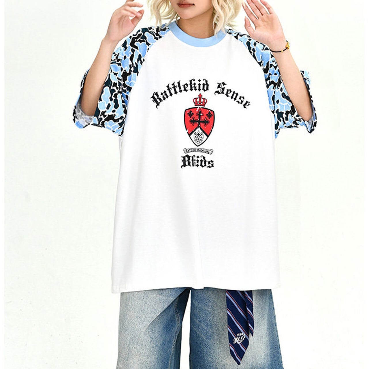 遊び心たっぷりのカモフラージュ柄のスリーブが、ストリートな雰囲気を加速させます。
