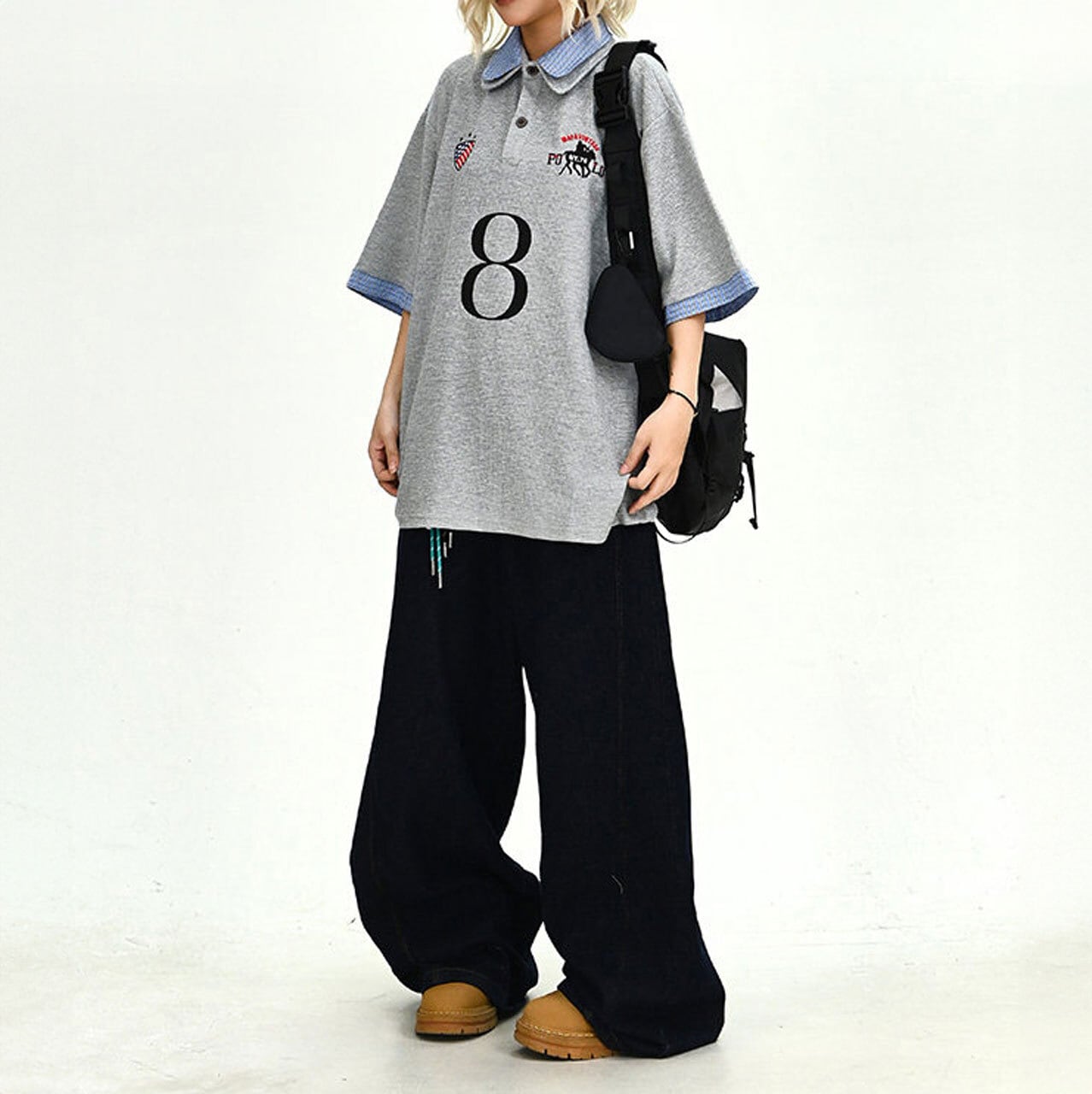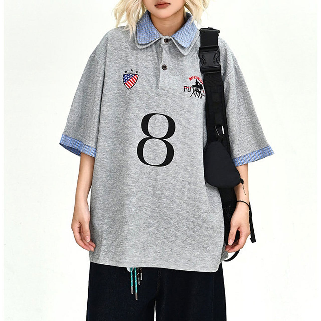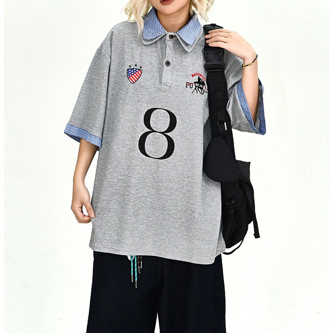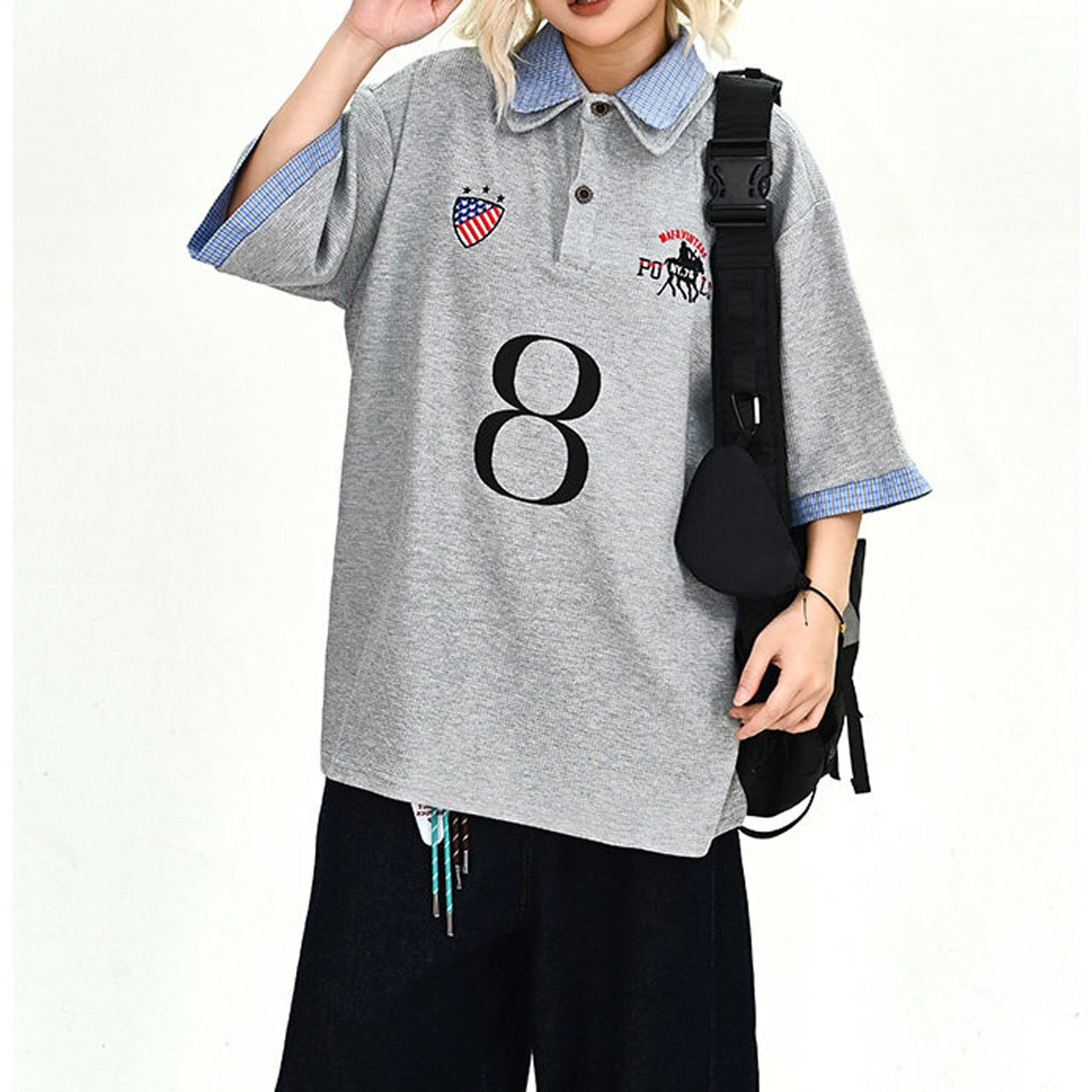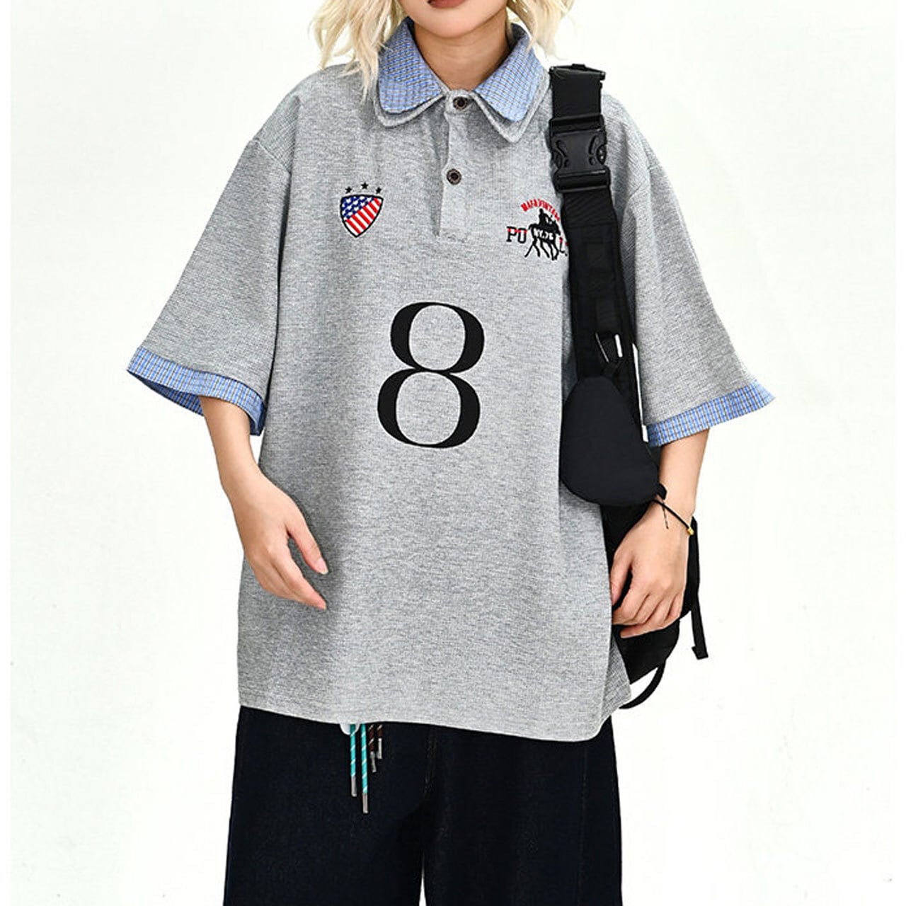 ナンバリングパッチワークデザインダブルカラーポロシャツ 1col R02189